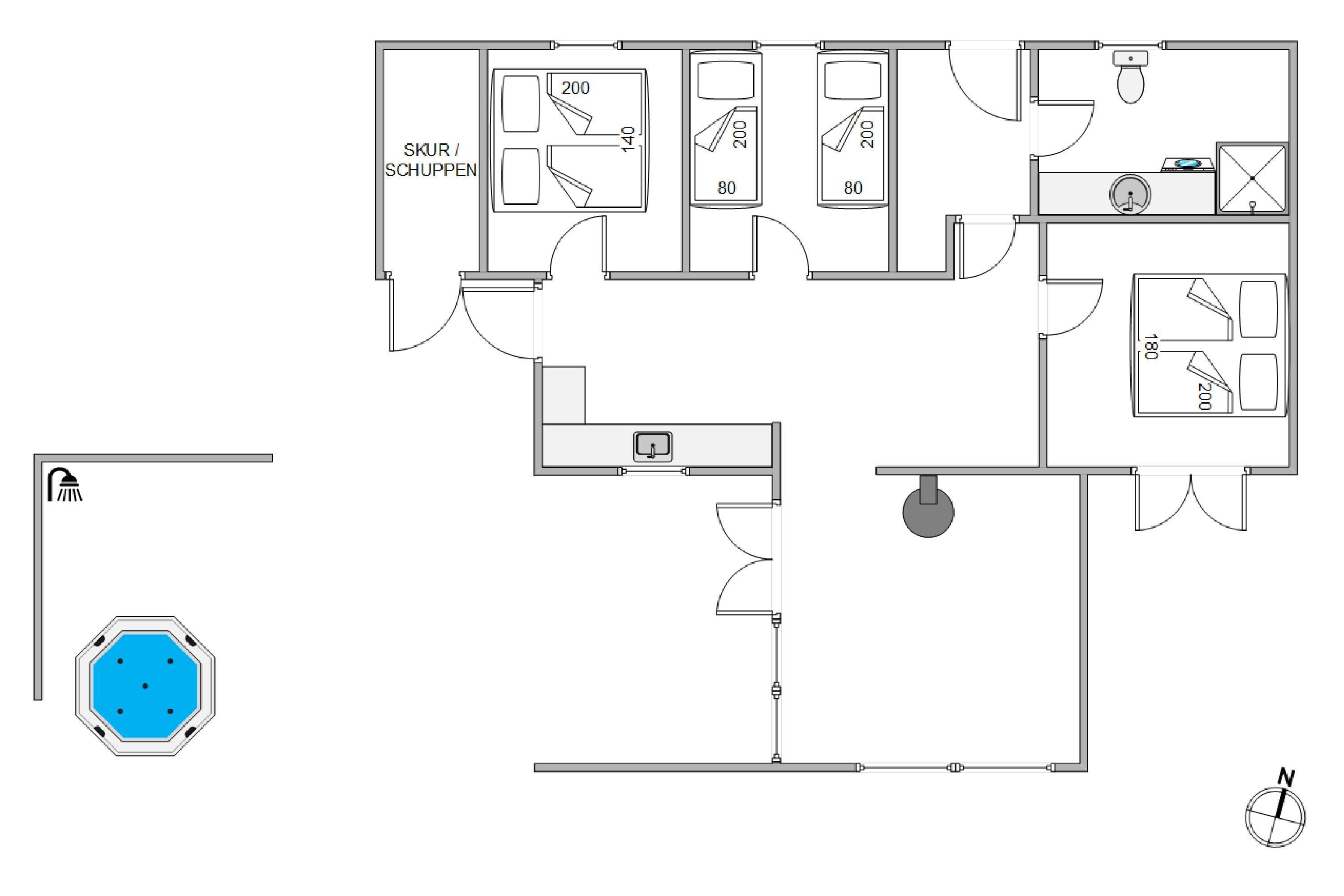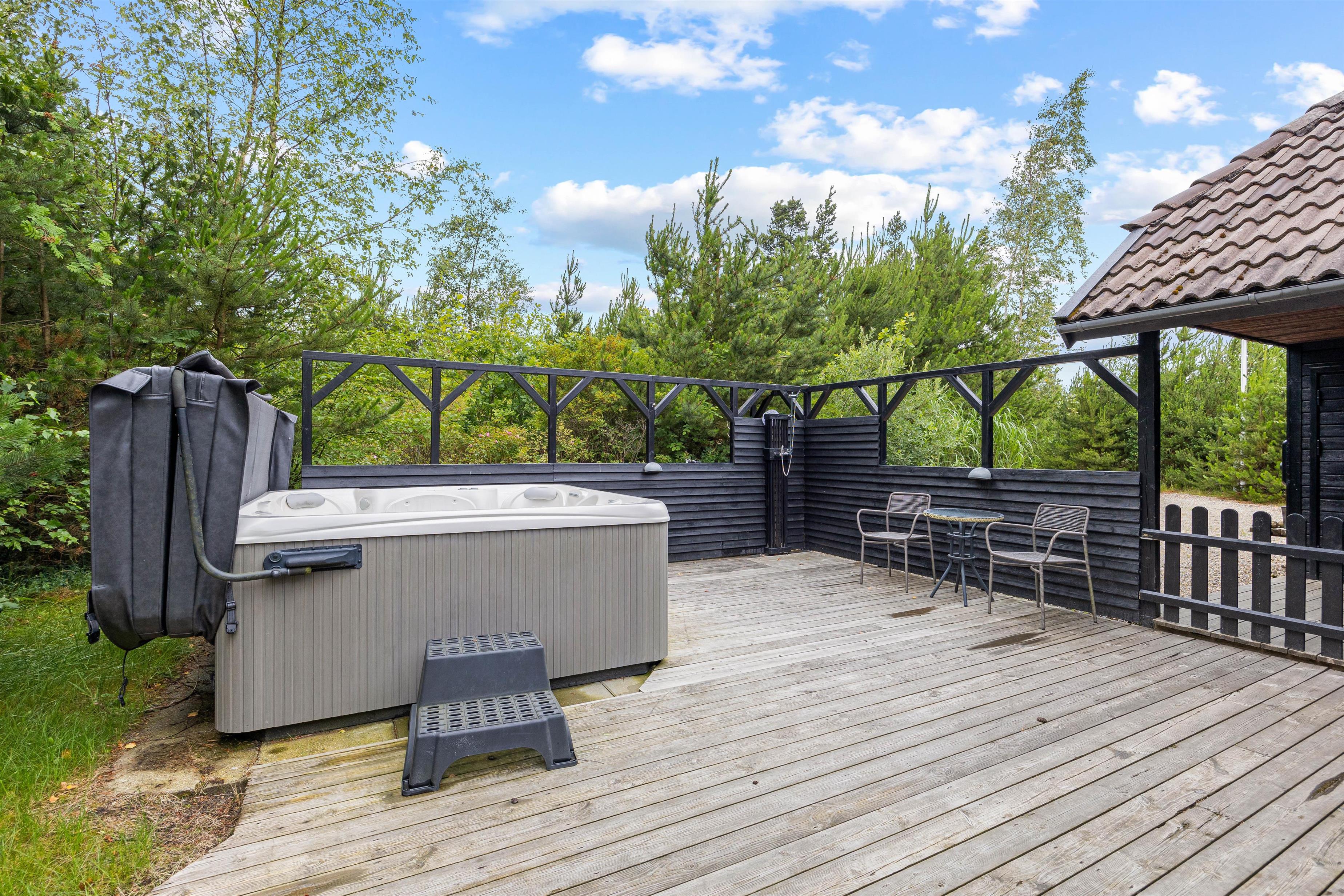 For ekstra luksus kan I nyde den udespa og udebruser, der er tilgængelig, hvilket giver jer mulighed for at slappe af i det fri efter en lang dag. Udebruser kan benyttes fra april til november.