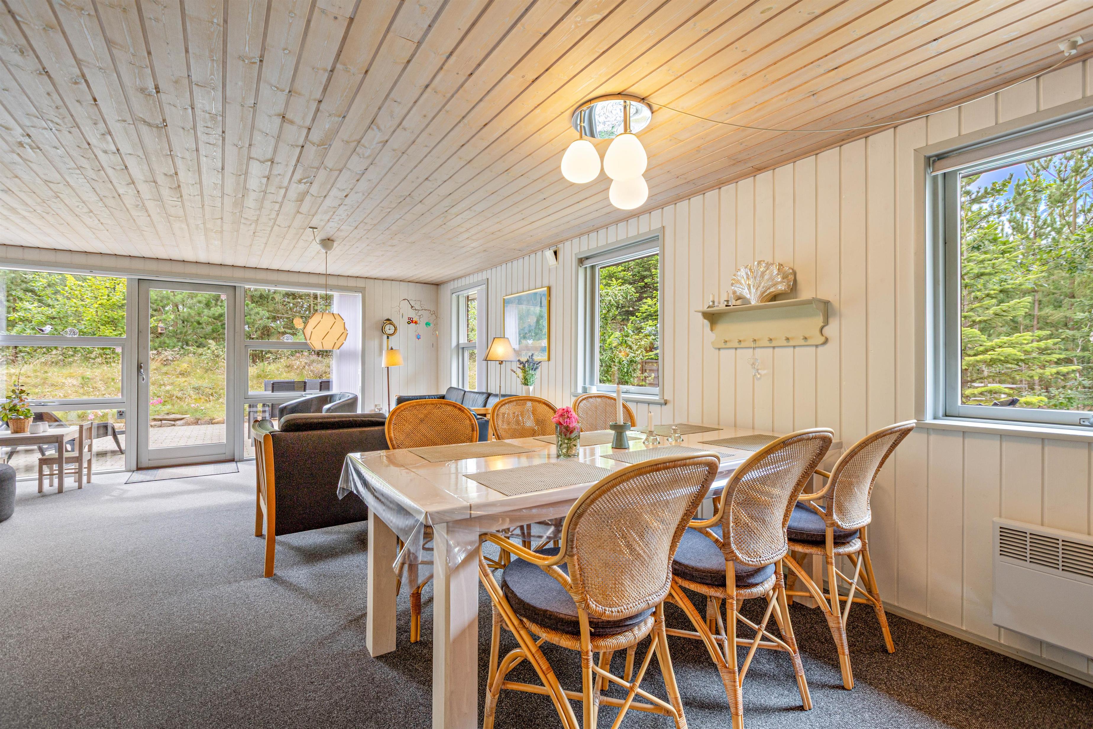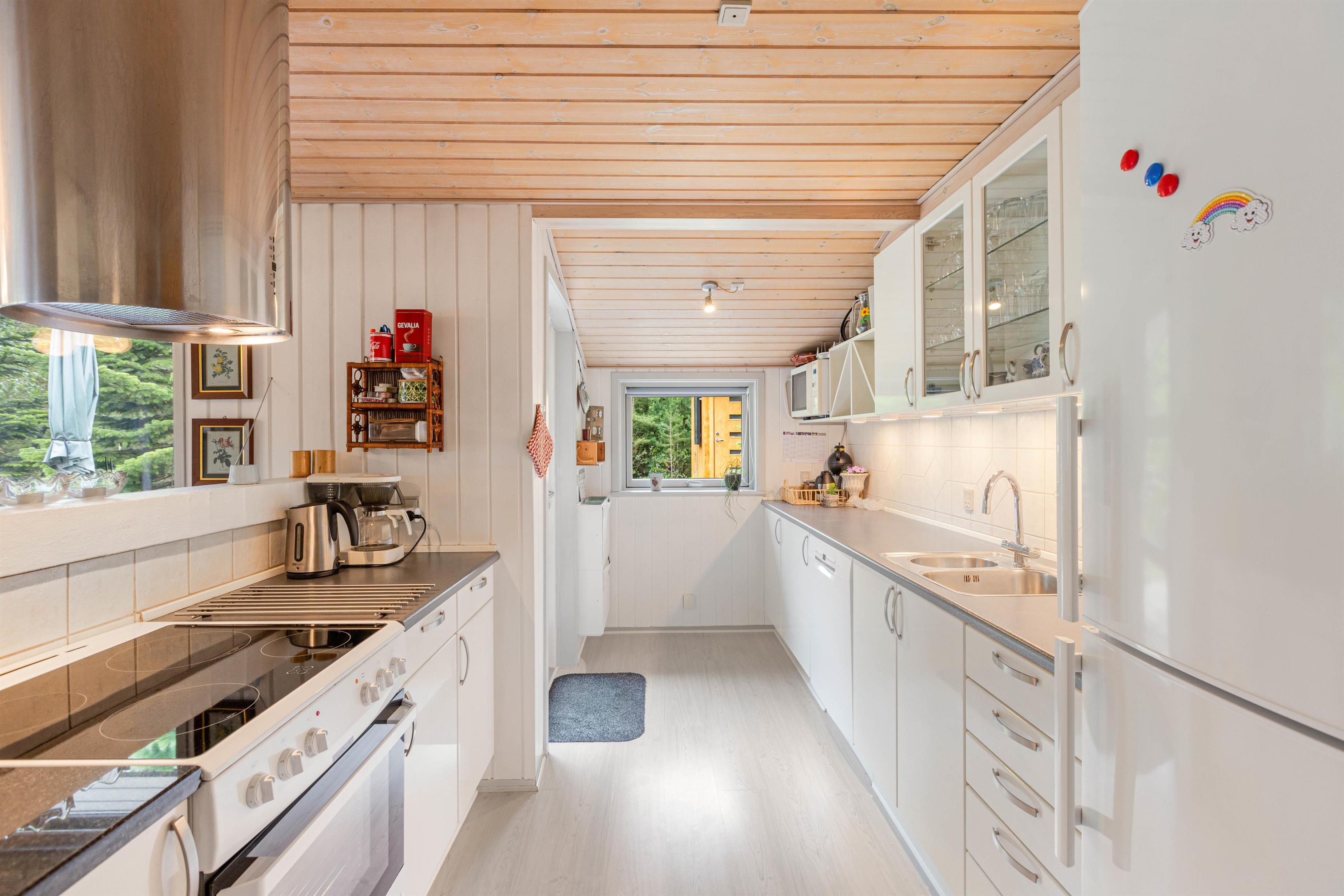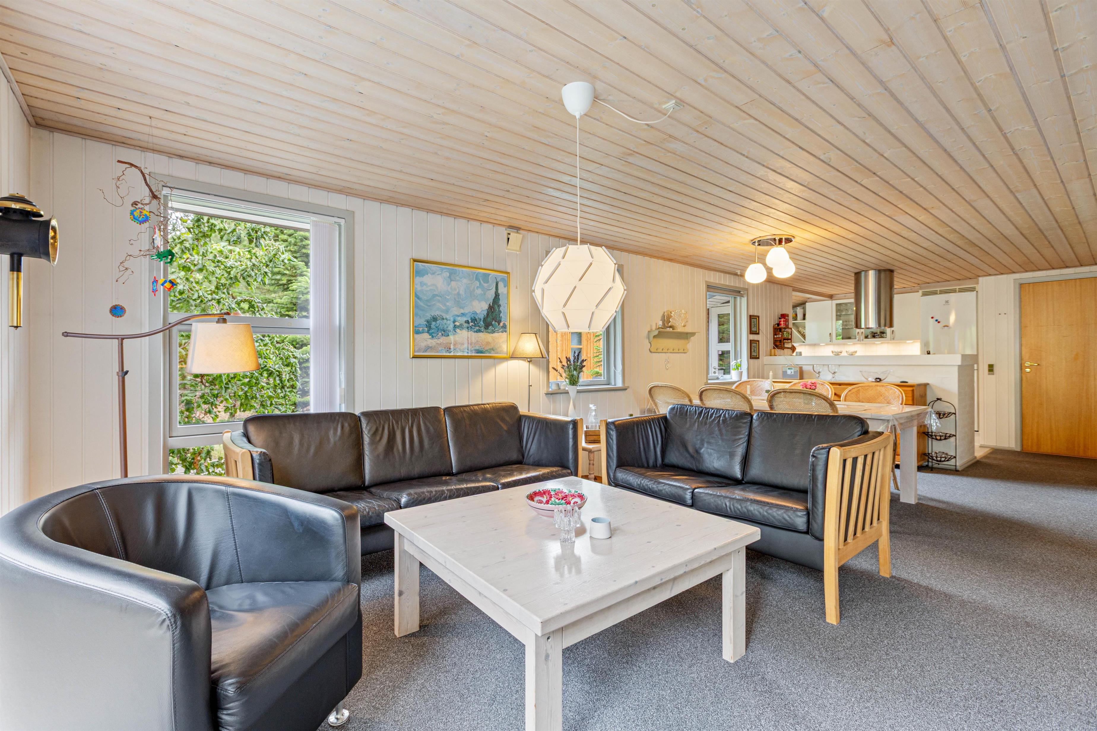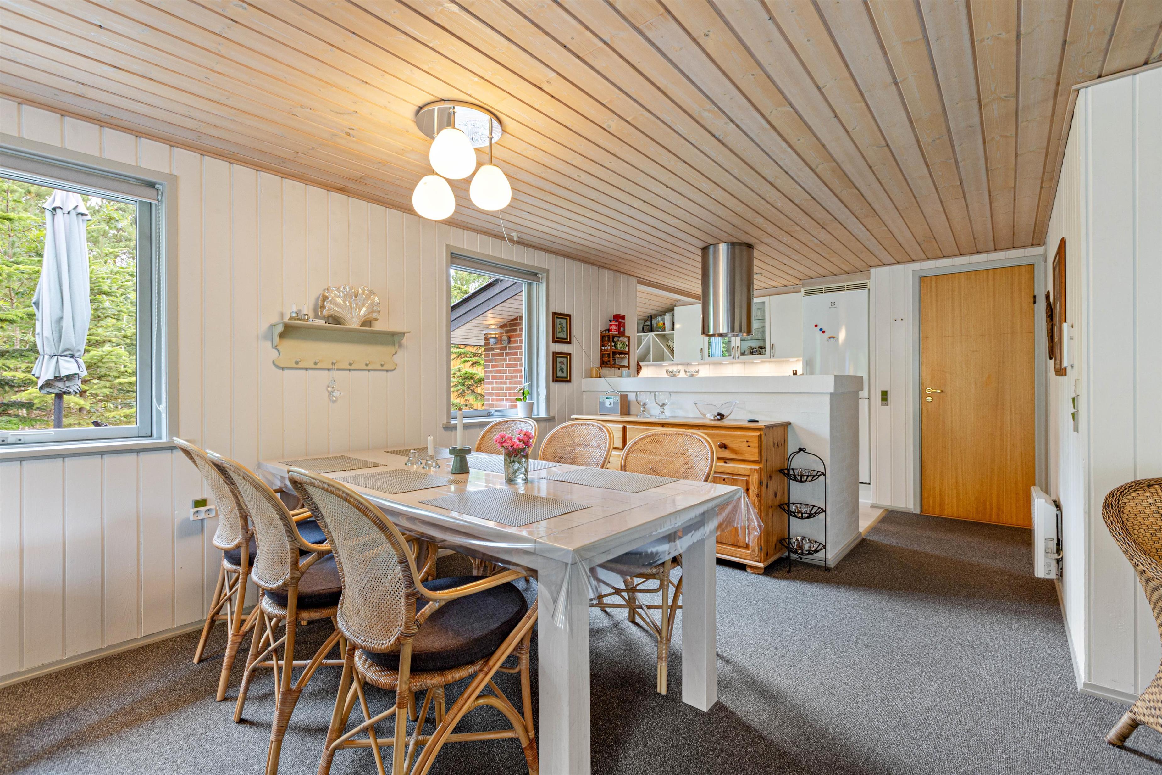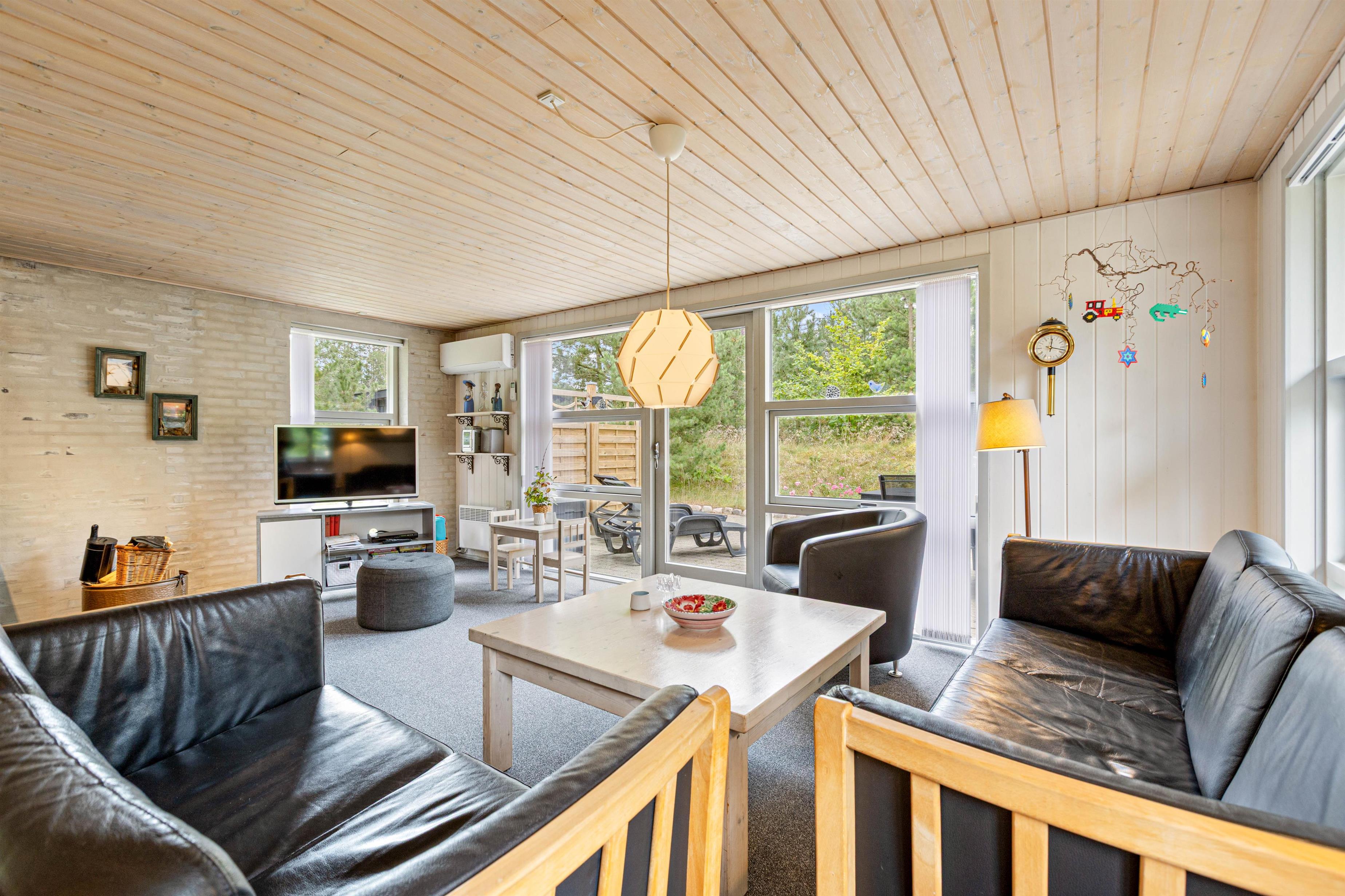 Sommerhuset på Peder Larsensvej 23 er både lyst og venligt indrettet og er udstyret med en dejlig stor og åben terrasse, hvor I har udsigt ud over det smukke skovlandskab i Houstrup. Her får I ikke kun alt, hvad ferien har brug for, men endnu mere til med en dejlig varm sauna.