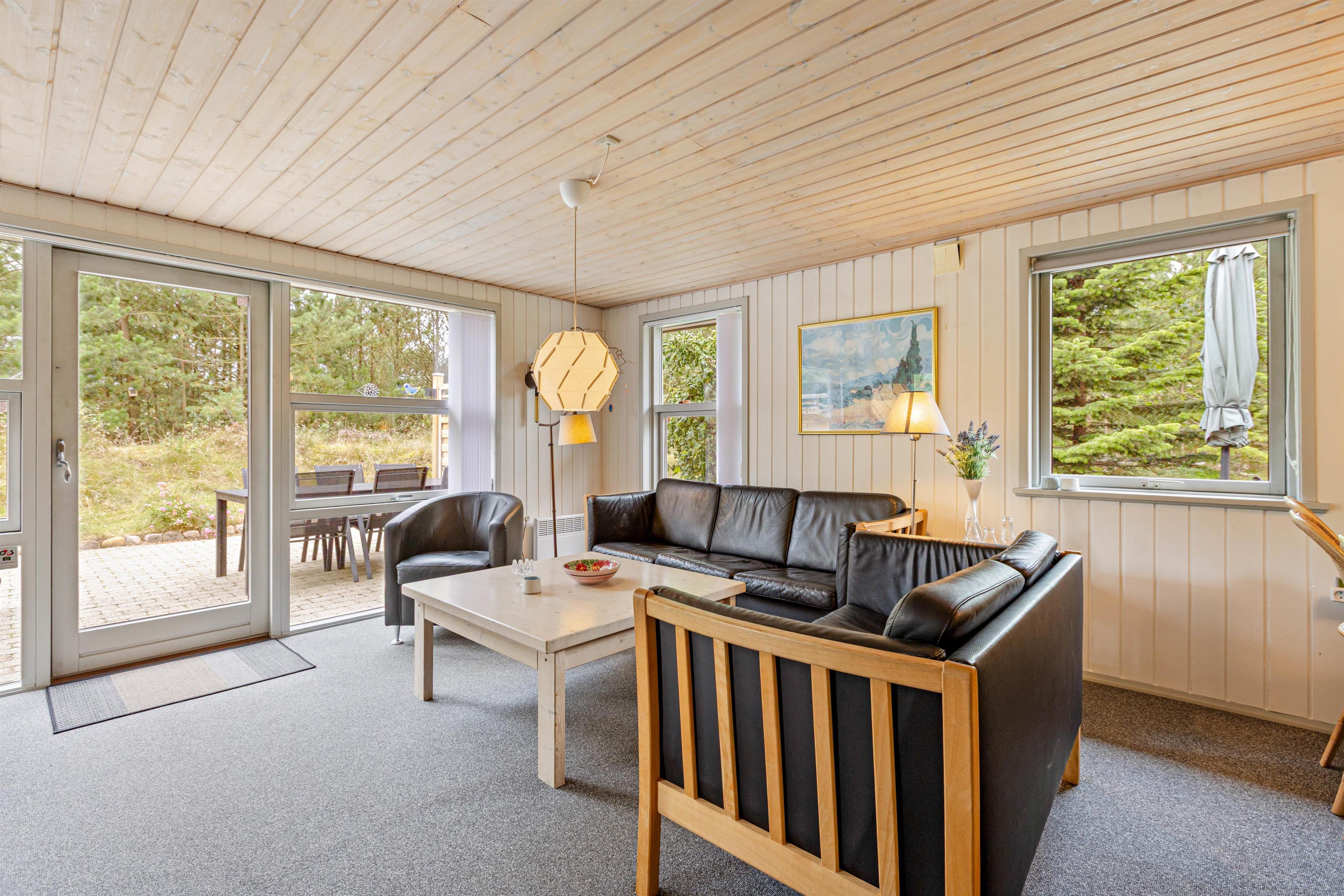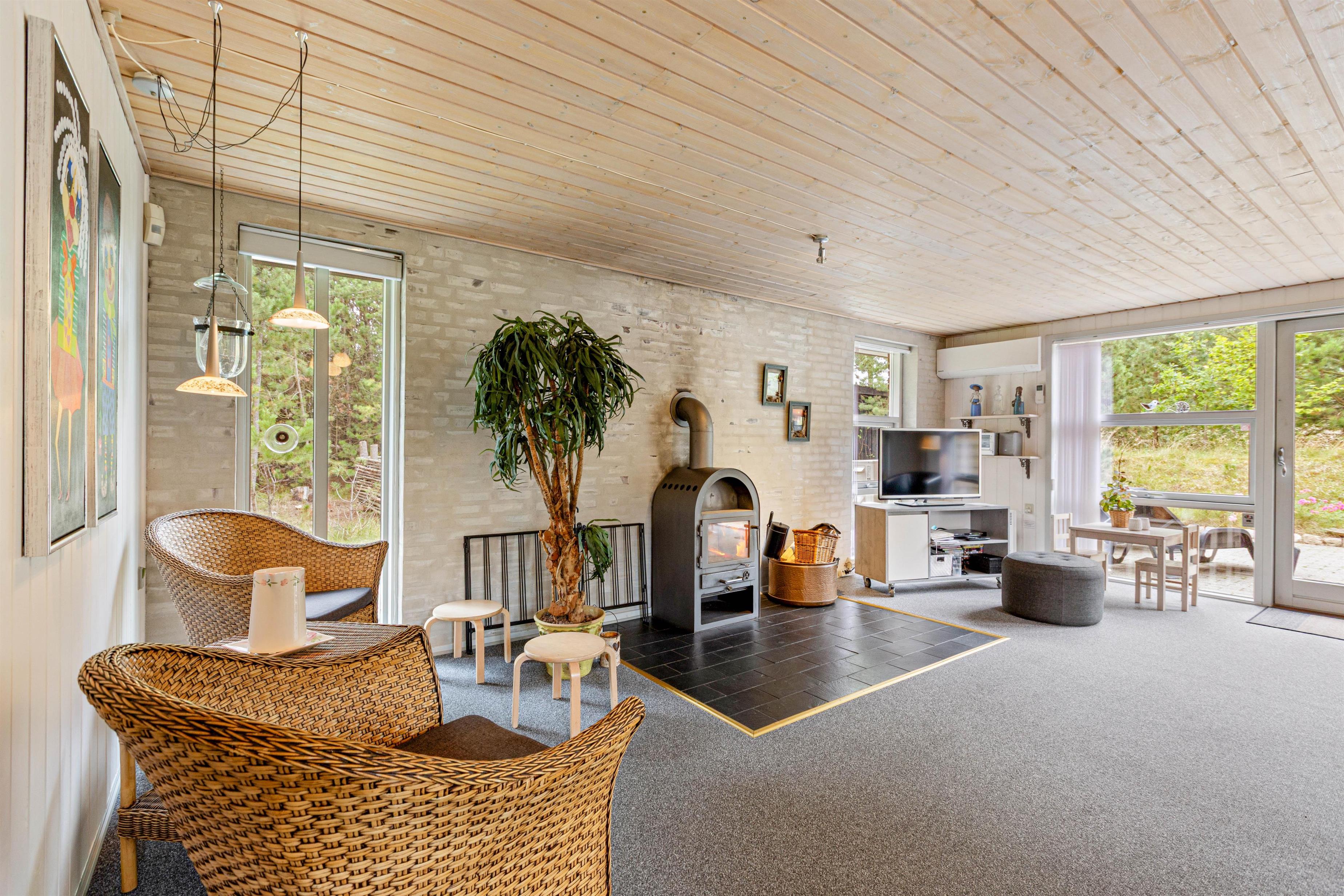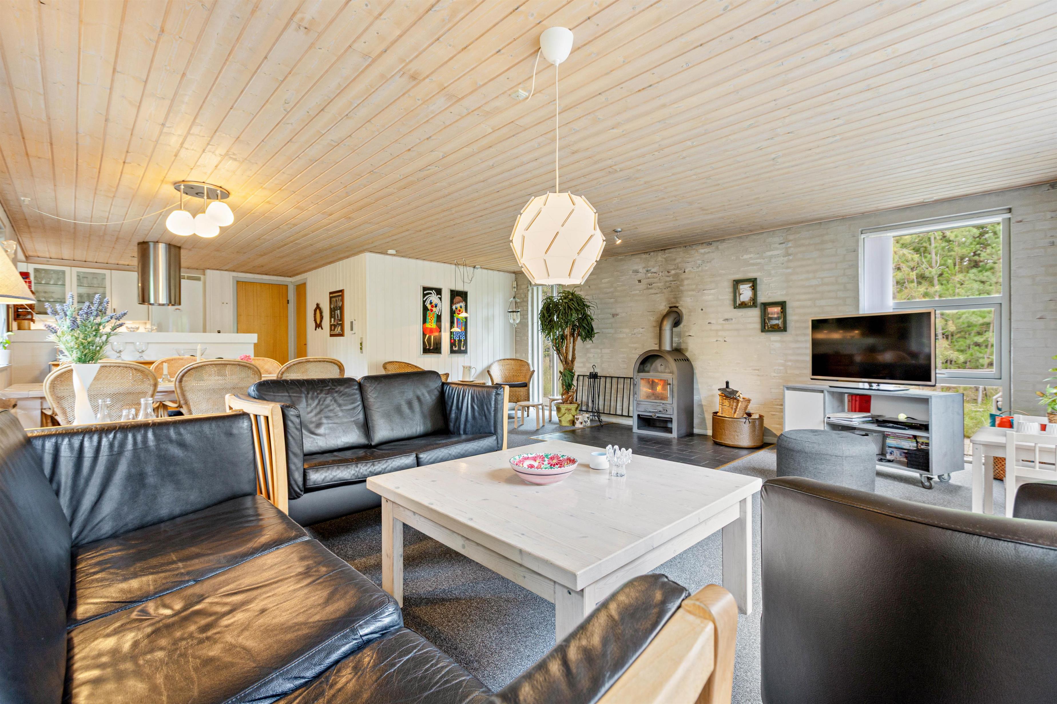 Det er ikke kun det drømmeagtige skovlandskab, som sørger for masser af hyggelig stemning, der taler for at bruge den næste ferie i dette sommerhus. Med brændeovnens knitren i baggrunden, kan I nyde et glas af jeres yndlingsvin på sofaen, og har I brug for lidt ekstra varme, står saunaen klar til at tage hånd om jer. Her kan I rigtig nyde feriefreden og slappe af, langt væk fra hverdagen.
