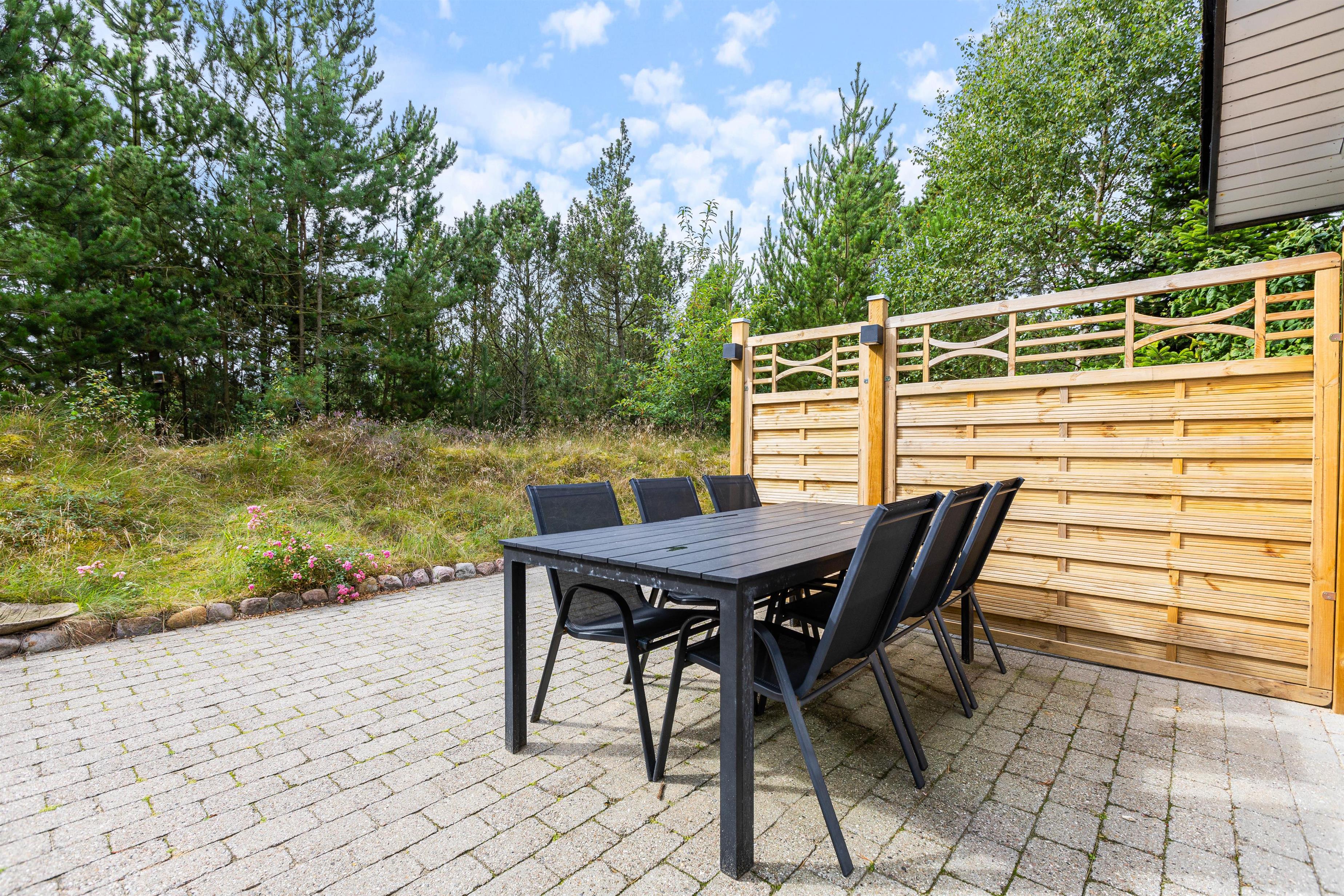 Om aftenen er den store terrasse det perfekte samlingspunkt for familien, og der kan tændes op i grillen og spises et lækkert feriemåltid rundt om havebordet i dejlig ro og fred.