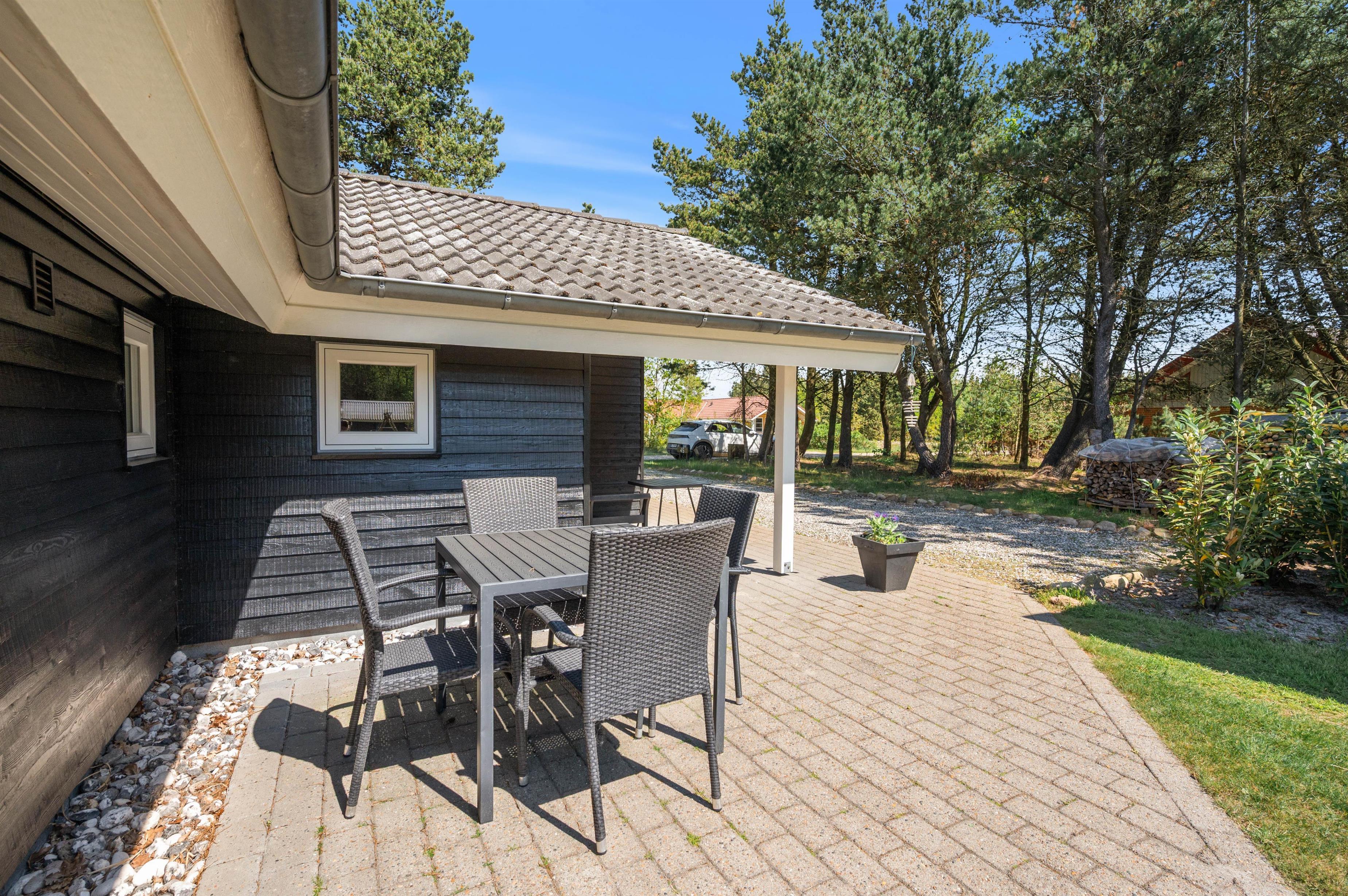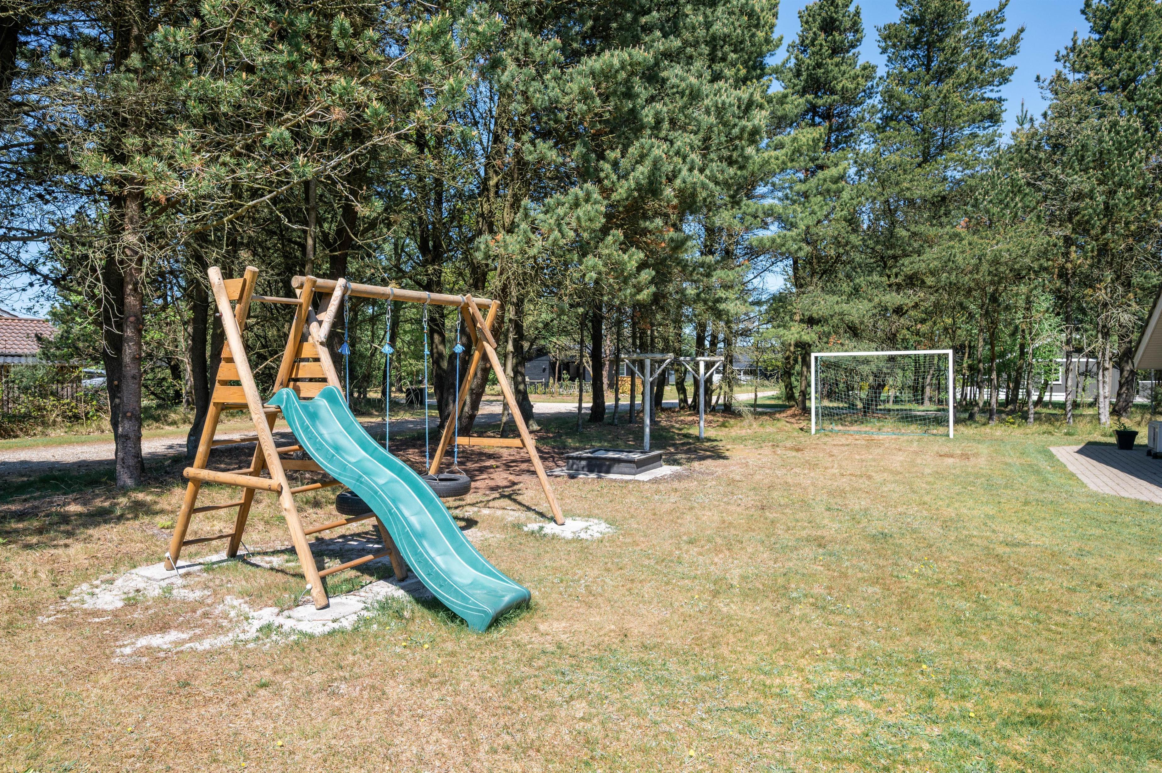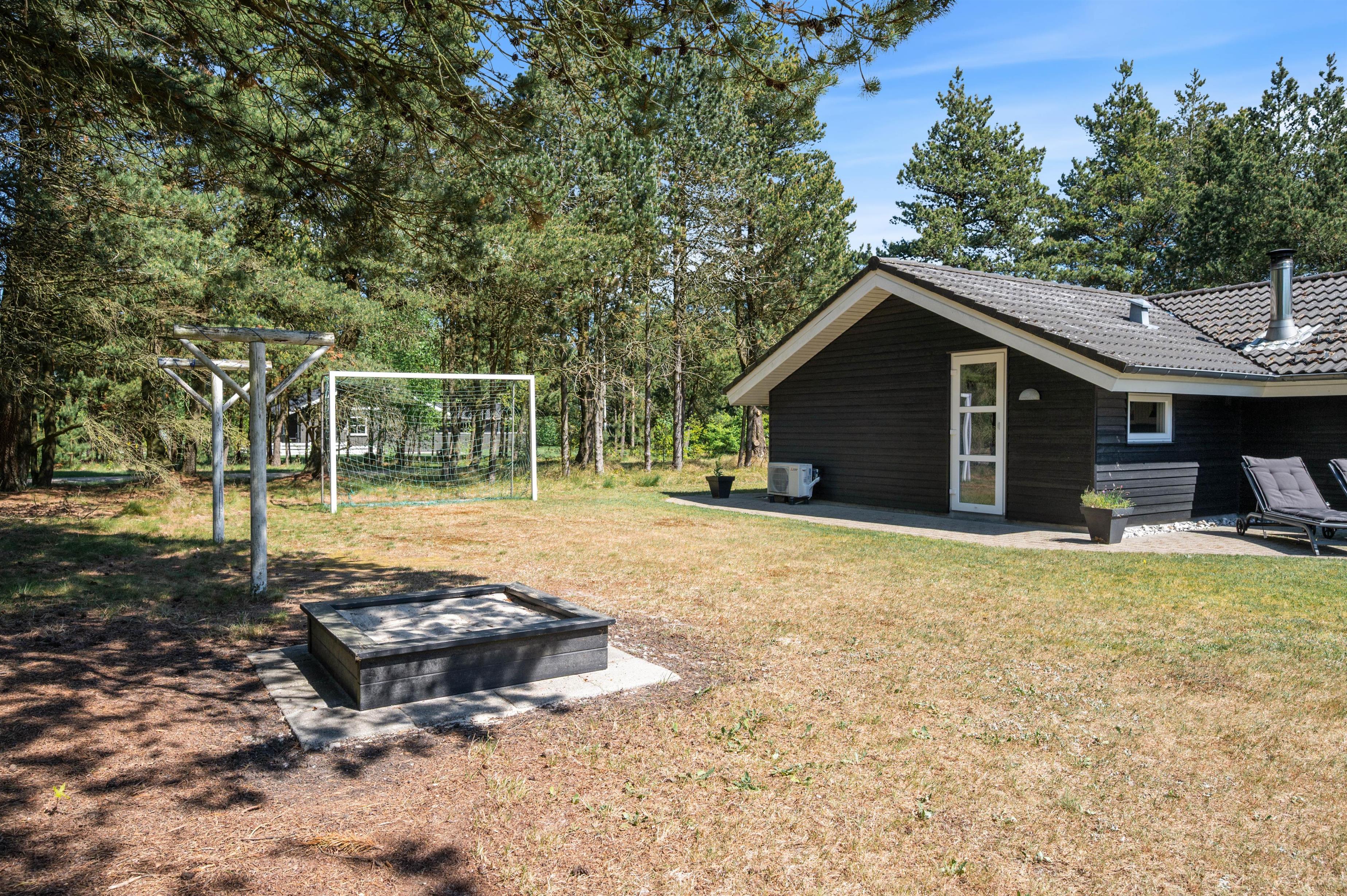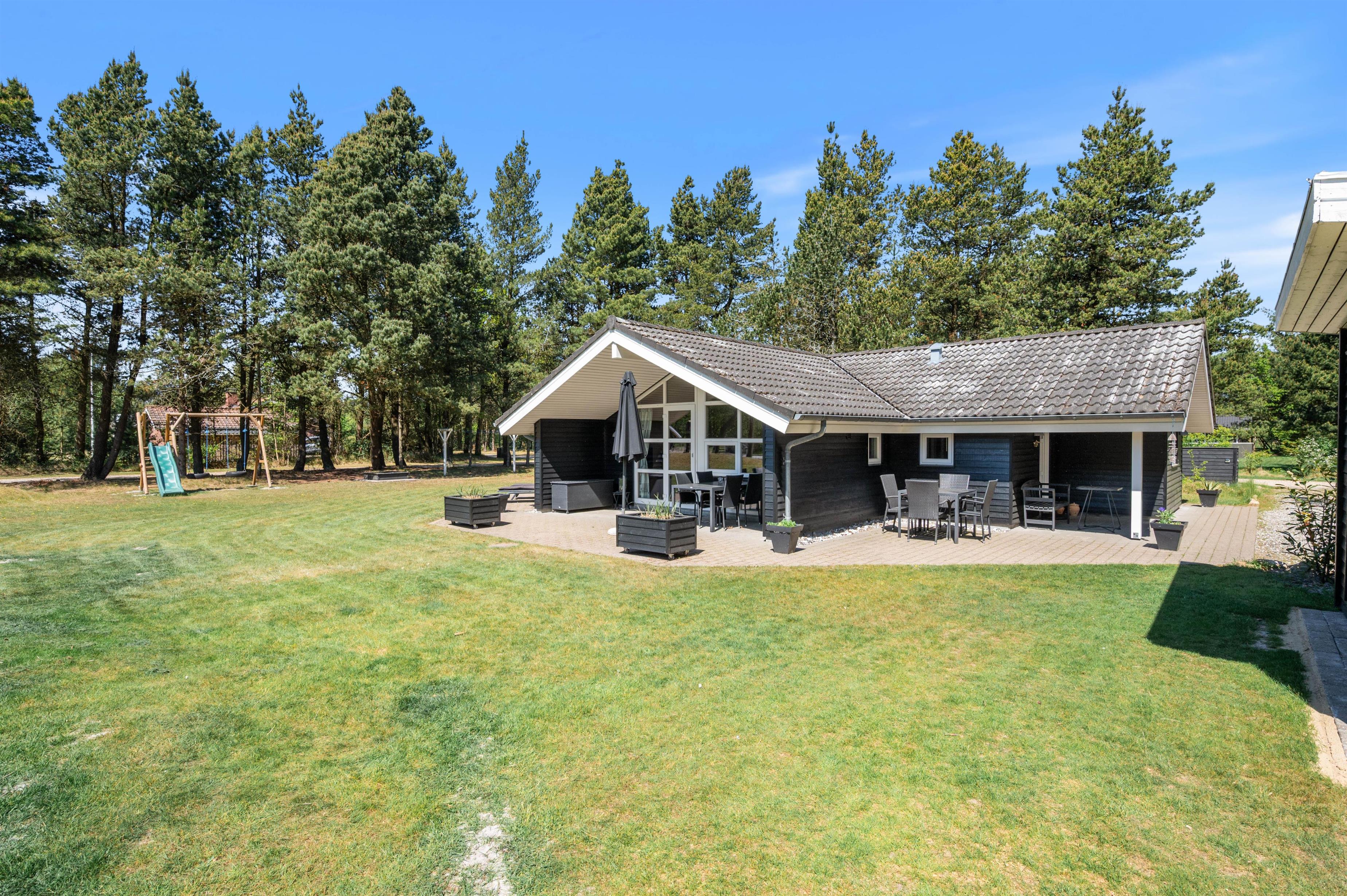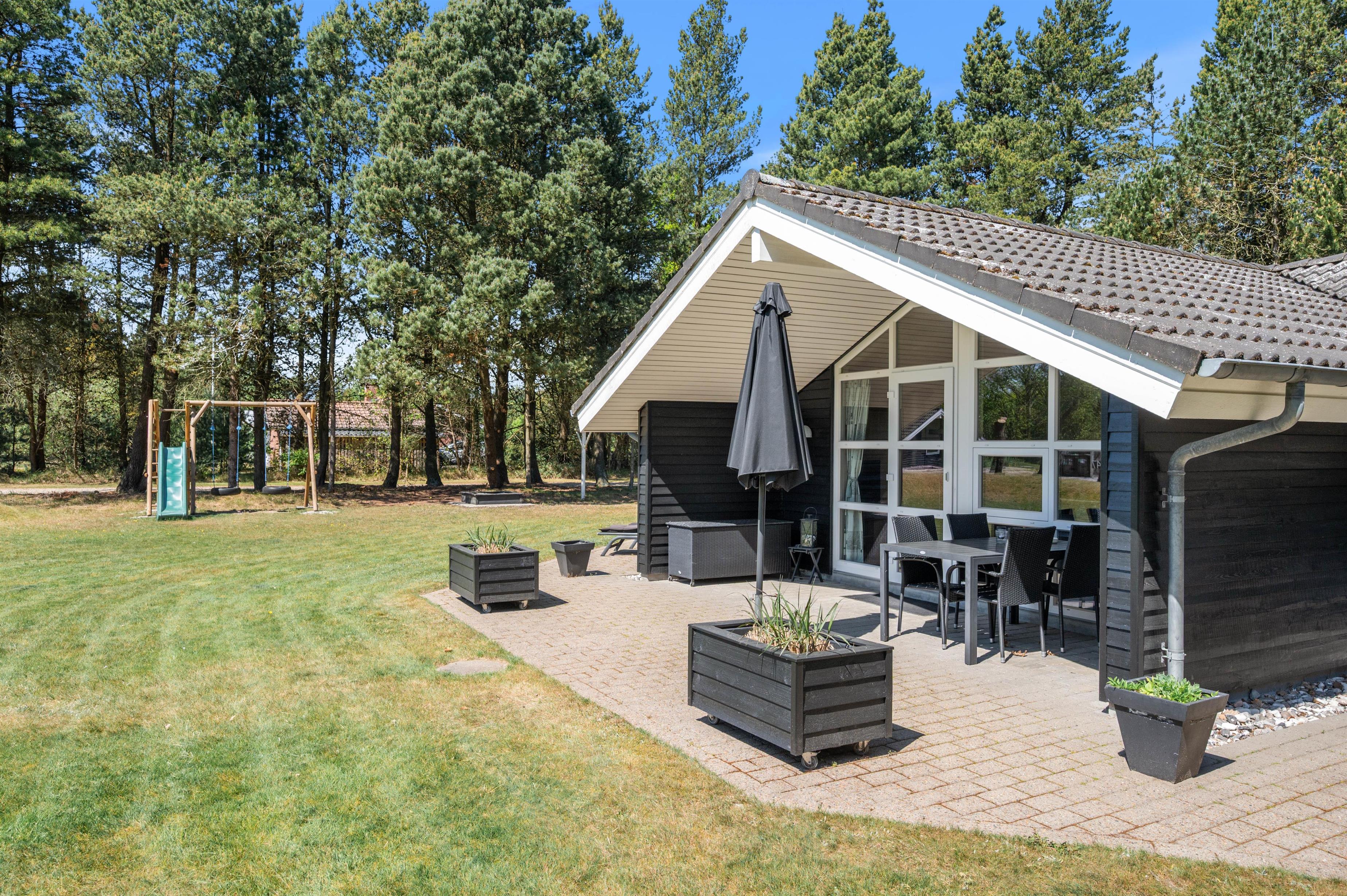 Fra stuen når I den store terrasse, hvor hver eneste solstråle kan udnyttes. Her finder I naturligvis også en grill, så I kan tilberede en lækker feriemiddag på de lune aftener og nyde aftensmaden udenfor. Til de yngste feriegæster er der sat både gyngestativ og sandkasse op, så de til hver en tid kan holde sig beskæftiget, mens I slikker sol i liggestolene.