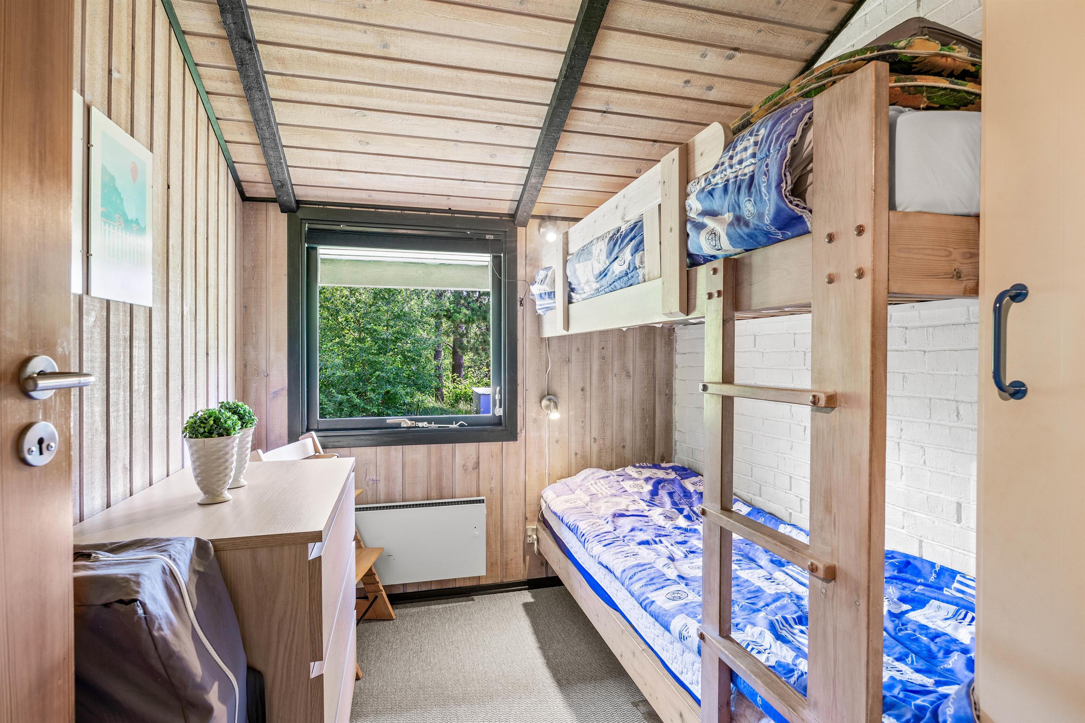 I Houstrups grønne skovområde ligger dette hyggelige træsommerhus og venter på jer. Den lyse og venlige indretning sørger for, at I falder godt til fra første feriedag, og den lukkede terrasse er perfekt til både børnene og hundene. Der er tilmed en sauna, så I rigtig kan nyde jeres getaway fra hverdagen.
