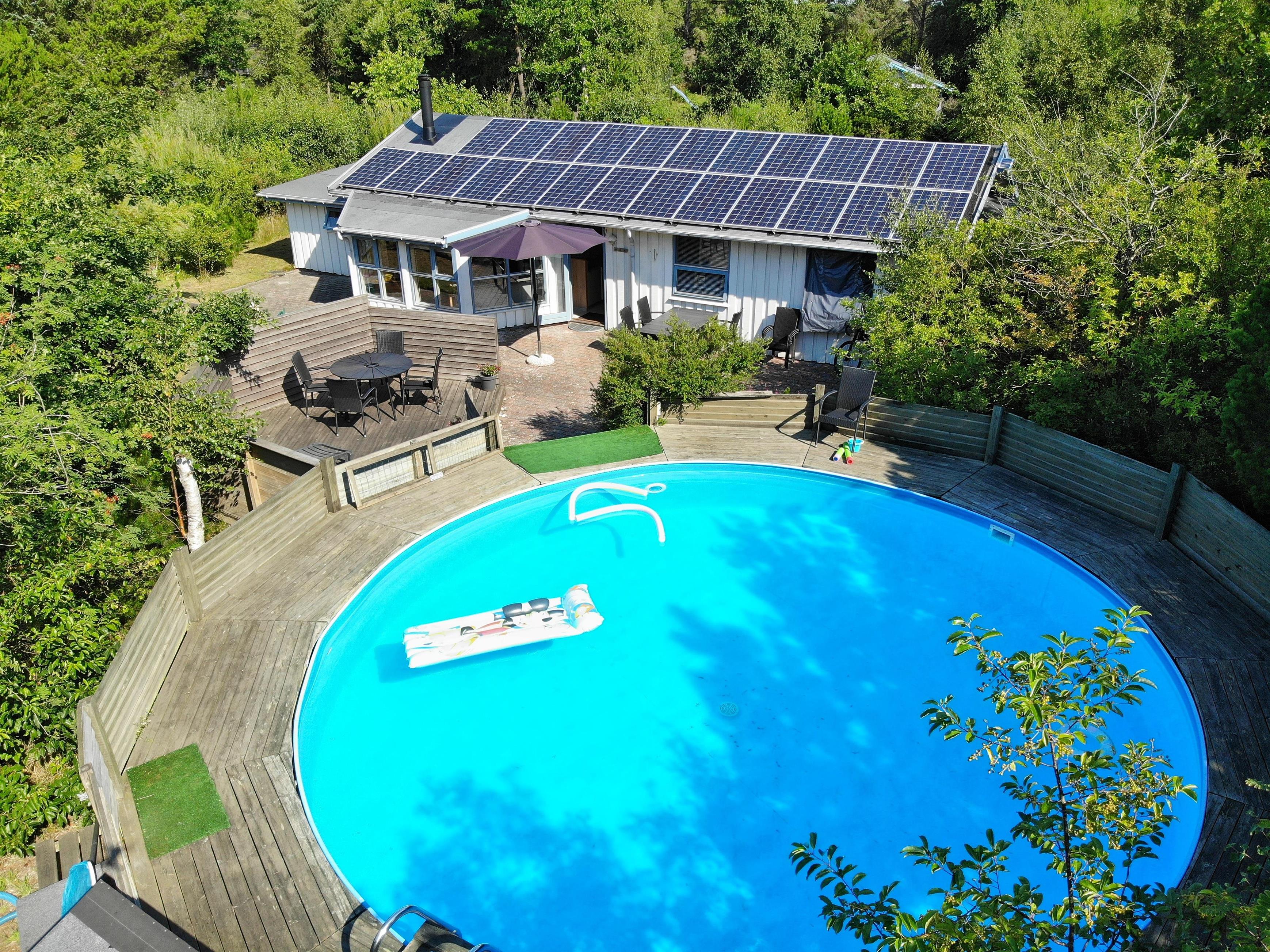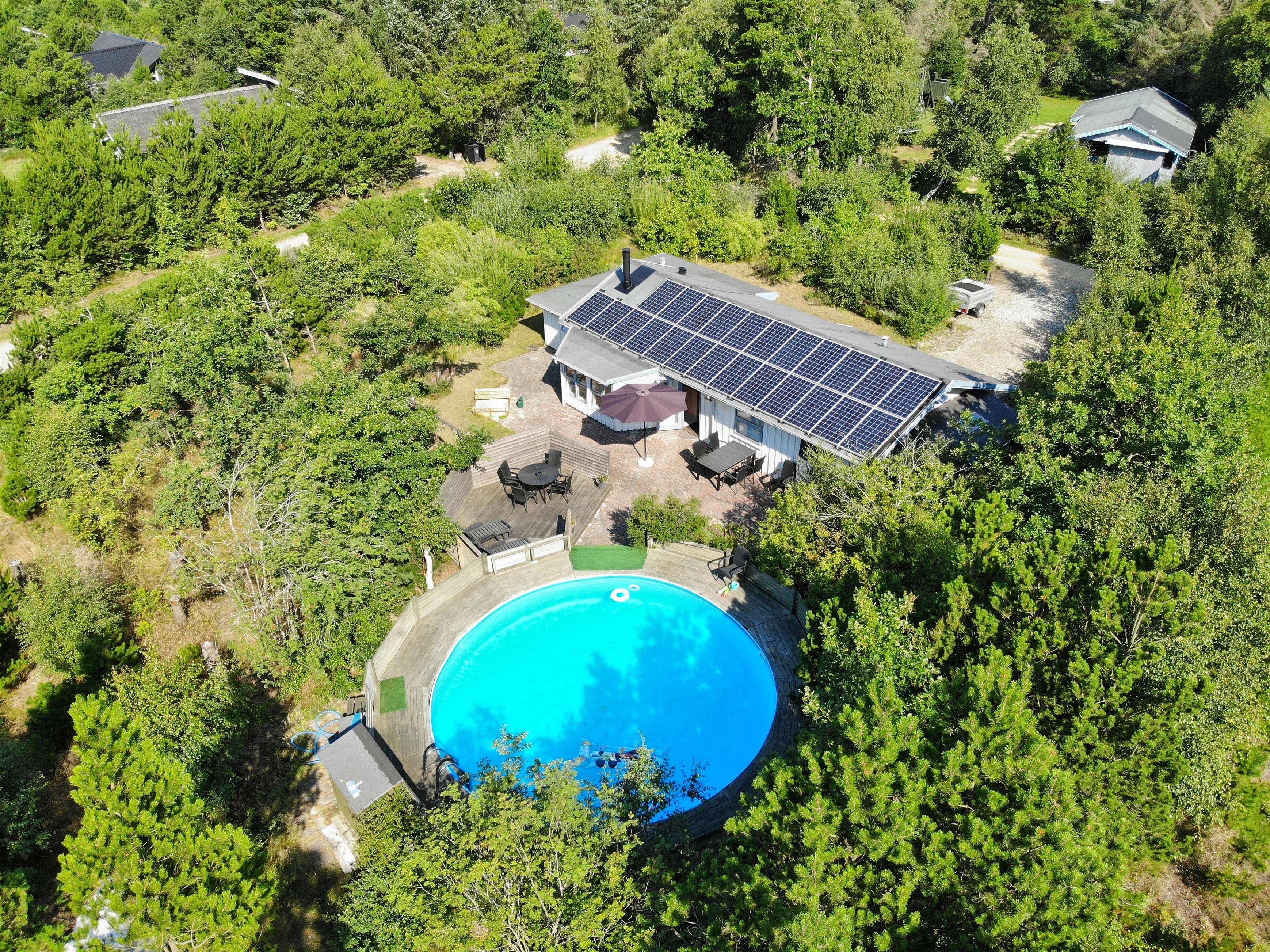 Omgivet af skovens træer, blandt brændestabler og stier, finder I dette hyggelige poolhus - med udendørs svømmebassin, som kan benyttes i hovedsæsonen (30.5.-29.8.2026). Sommerhuset ligger skønt med få minutters gang til indkøbsmulighed og få minutters kørsel fra stranden, og det har ikke kun plads til hele familien, men også familiens hund.