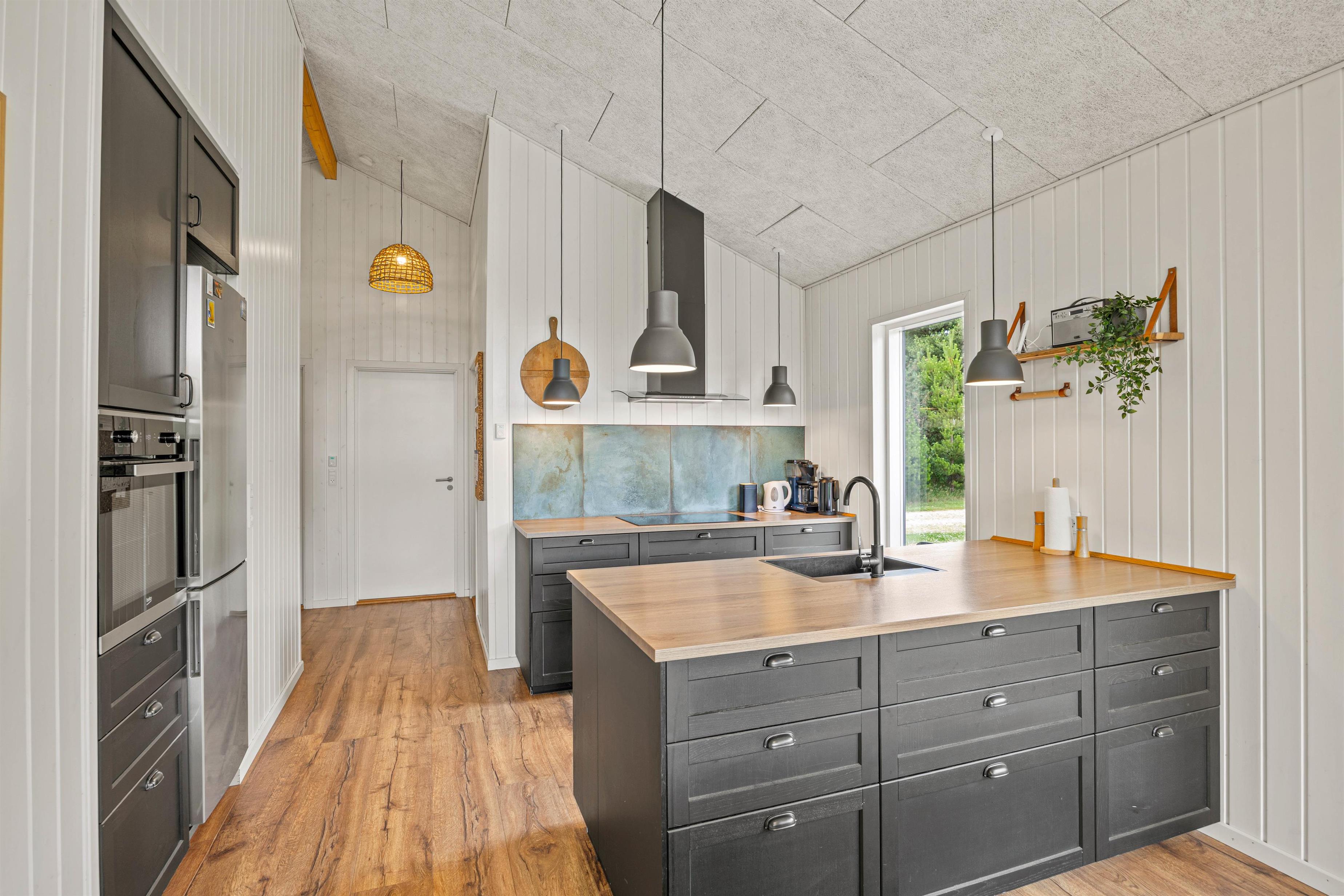 I det moderne køkken gør induktionskomfuret og opvaskemaskinen sit til, at køkkentjansen er både nem og sjov. Med brændeovn i fællesområdet er hyggestemningen garanteret hele året rundt! Om I er samlet omkring et sjovt selskabsspil ved spisebordet, leger på gulvet med de små eller hygger i den bekvemme sofa foran fjernsynet.