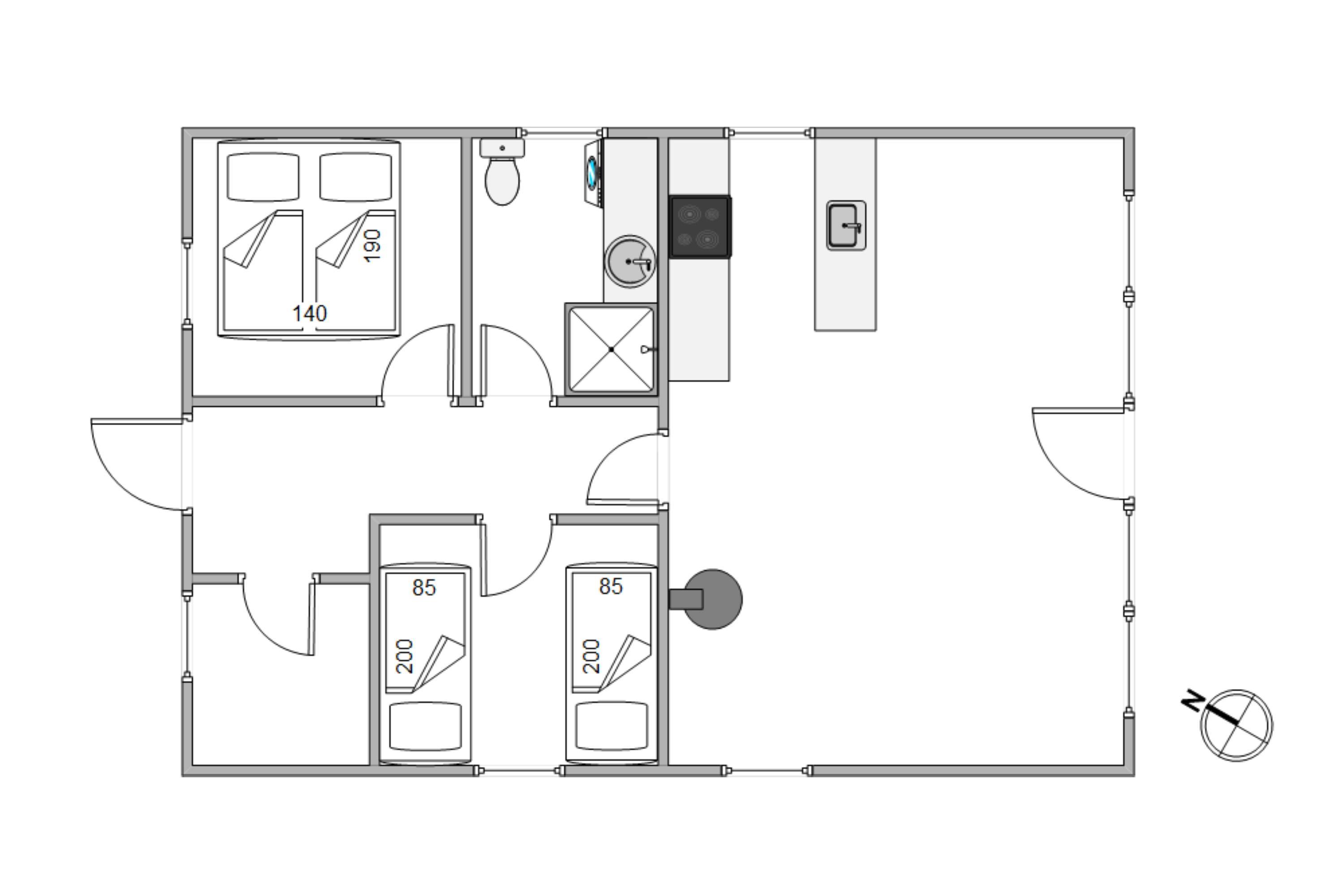 Huset er også indrettet med en brændeovn, som sørger for god temperatur på de koldere dage.