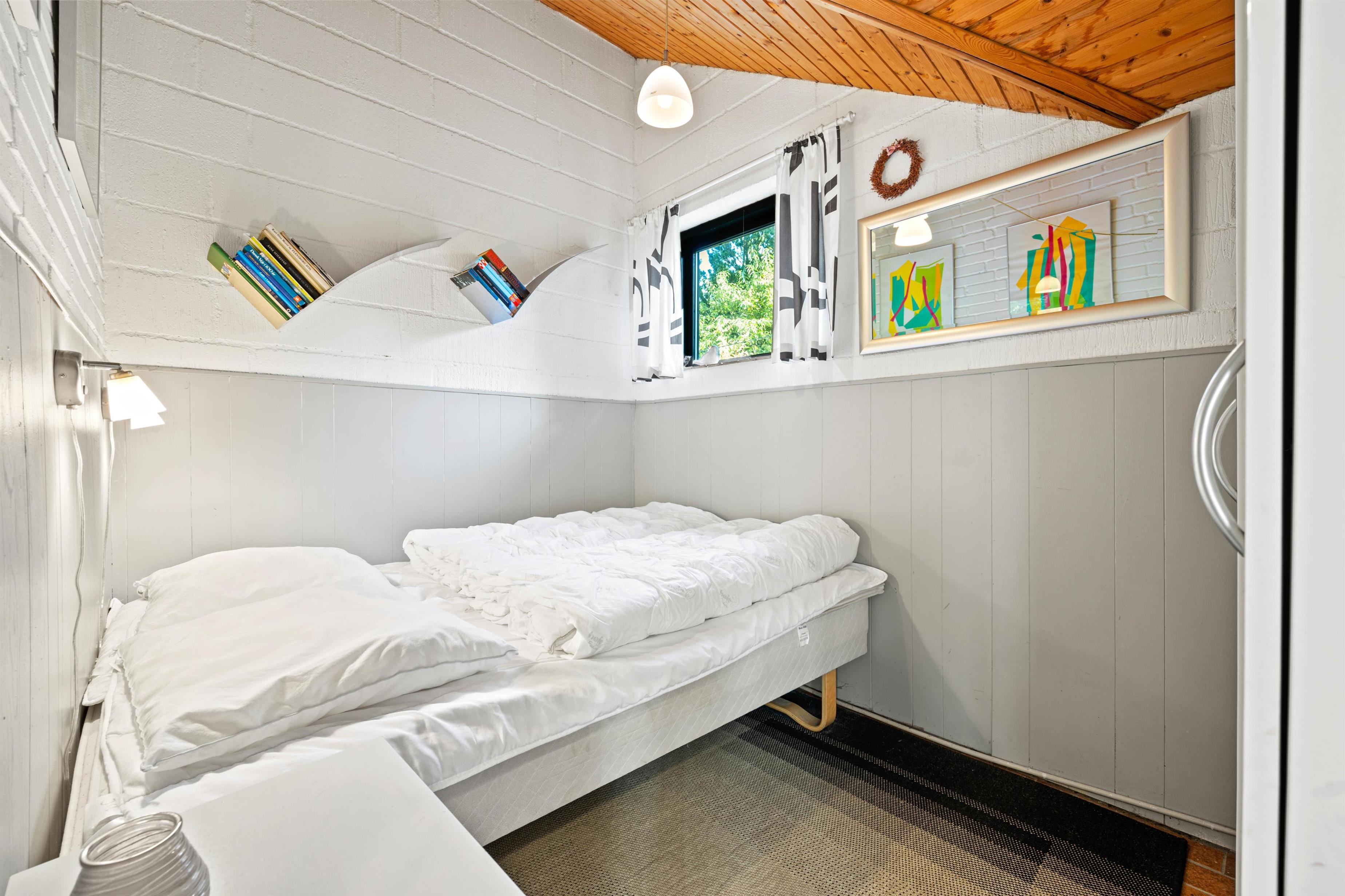 Feriehuset er for familien, der gerne vil have lidt fred og ro, for udover de 2 værelser inde i huset, findes der et lille anneks ved siden af. I annekset er der 2 sovepladser i dobbeltsengen, som måler 140x200. Mellem de 2 soverum i hovedhuset findes desuden badeværelset, hvor I har det nødvendige.