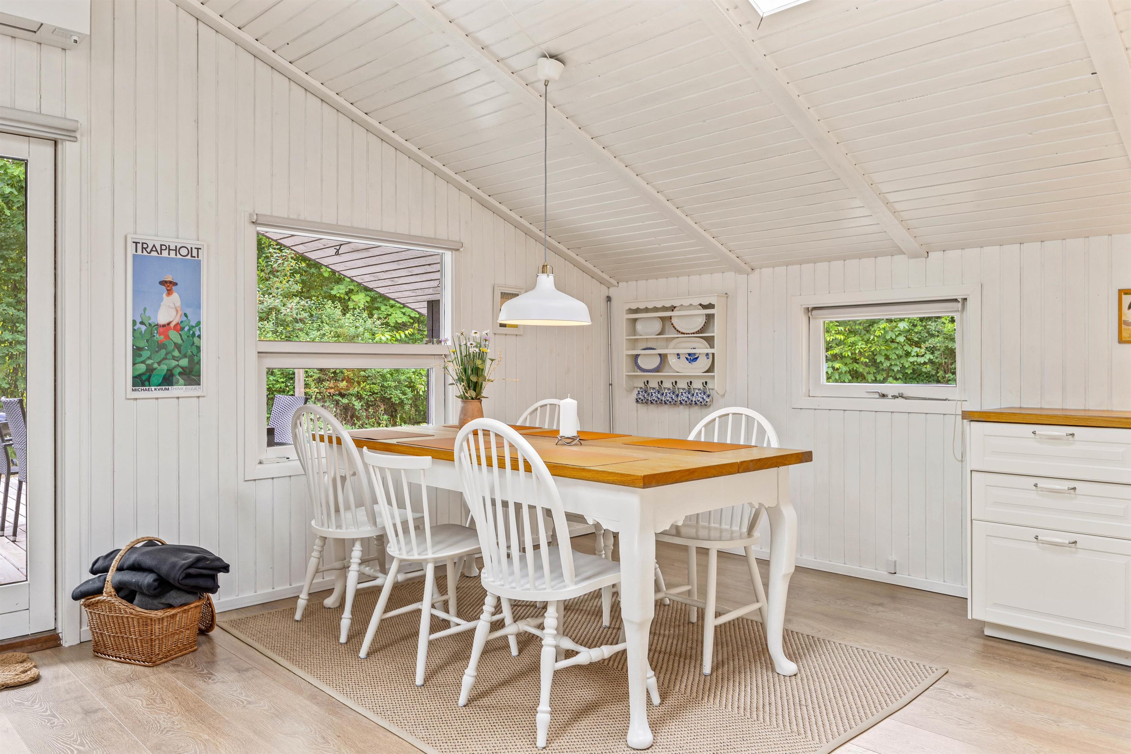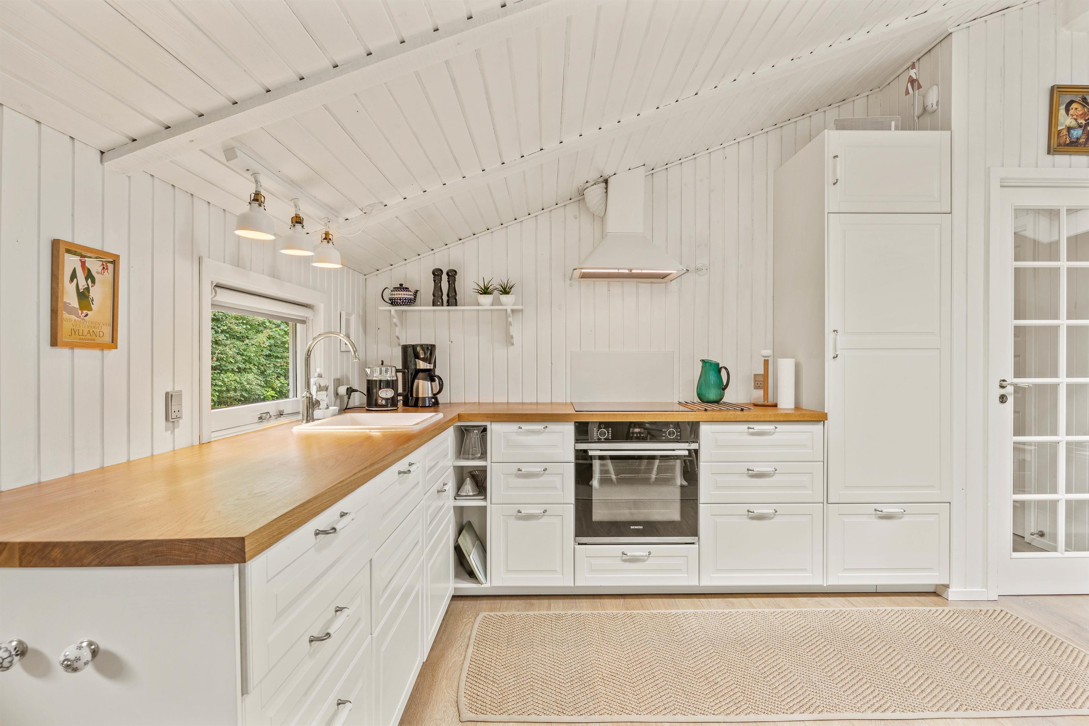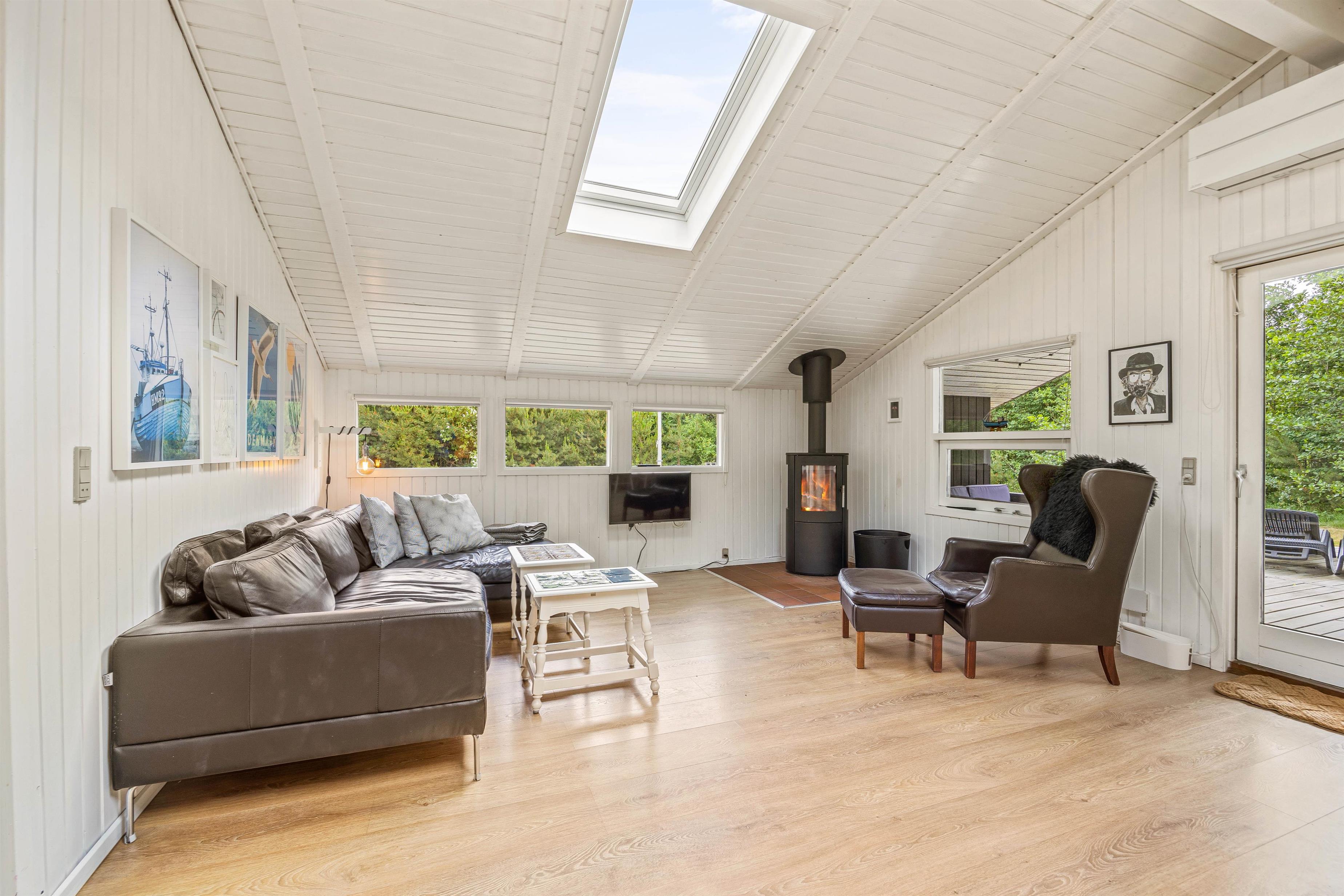 Dette lækre sommerhus er i 2022 blevet moderniseret og er perfekt til familieferien. Her er virkelig tænkt over tingene, så I hurtigt vil kunne føle jer hjemme uden at gå ned på mange af de vante bekvemmeligheder. Atmosfæren og stemningen er utrolig skøn med de lyse farver, loft til kip og mange vinduer. Ovenlysvinduerne giver et godt lysindfald, og fra de mange vinduer har I kig til haven. Tre gode og rummelige soveværelser, alle med dobbeltsenge, er klar til at give jer en afslappende og fredfyldt søvn.