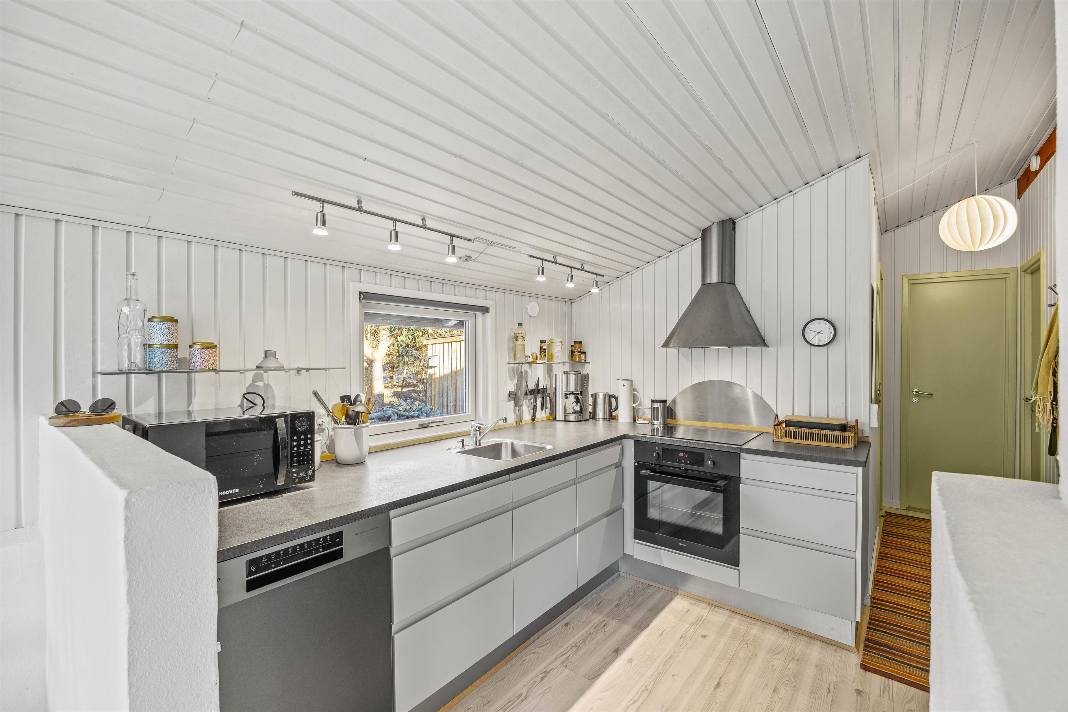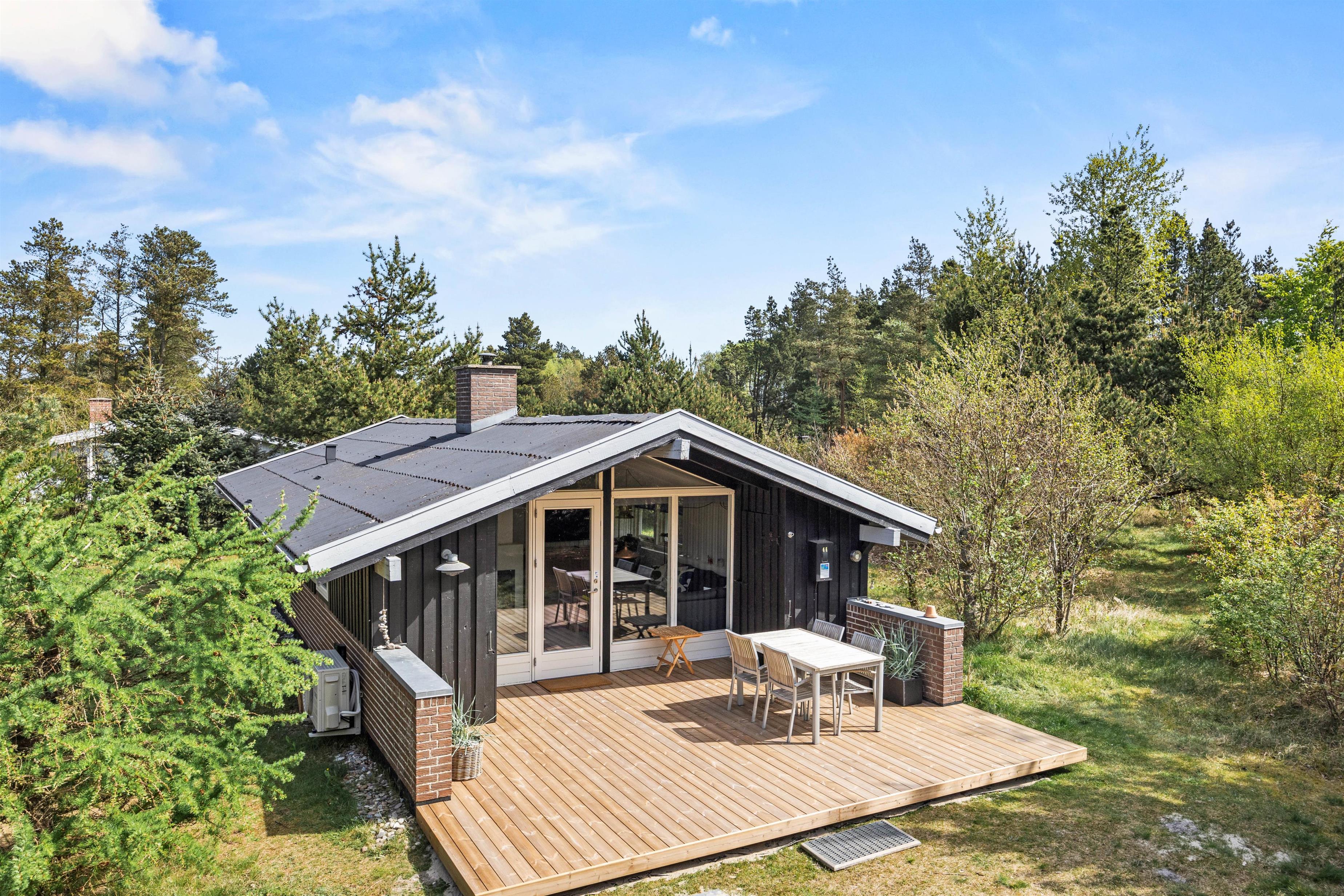 Fra stuen har I direkte adgang til den delvist overdækkede terrasse, hvor alt er klar til en hyggelig aften med grill og spisning under åben himmel. Her kan I nyde udsigten over den imponerende naturgrund på 1977 m2, der tilbyder masser af plads til leg og aktiviteter for både børn og hund. Sommerhuset er også udstyret med et praktisk skur til opbevaring af diverse genstande. Hvis I ankommer med en el-bil, er der ingen grund til bekymring, da opladning kan ske direkte ved huset. Mens I nyder stemningen ved brændeovnen indendørs, kan bilen lade op, så I er klar til næste dags eventyr langs de smukke kyststrækninger.