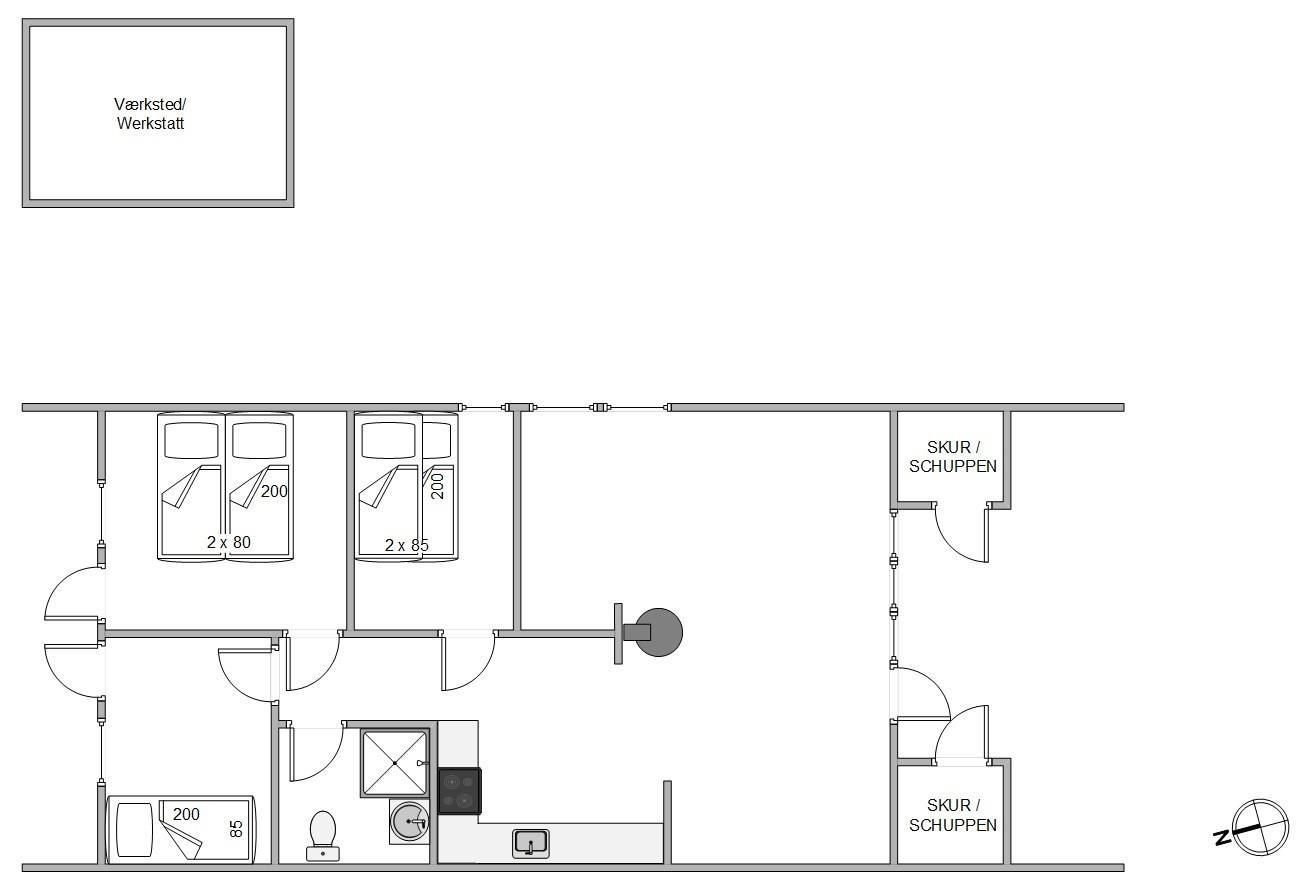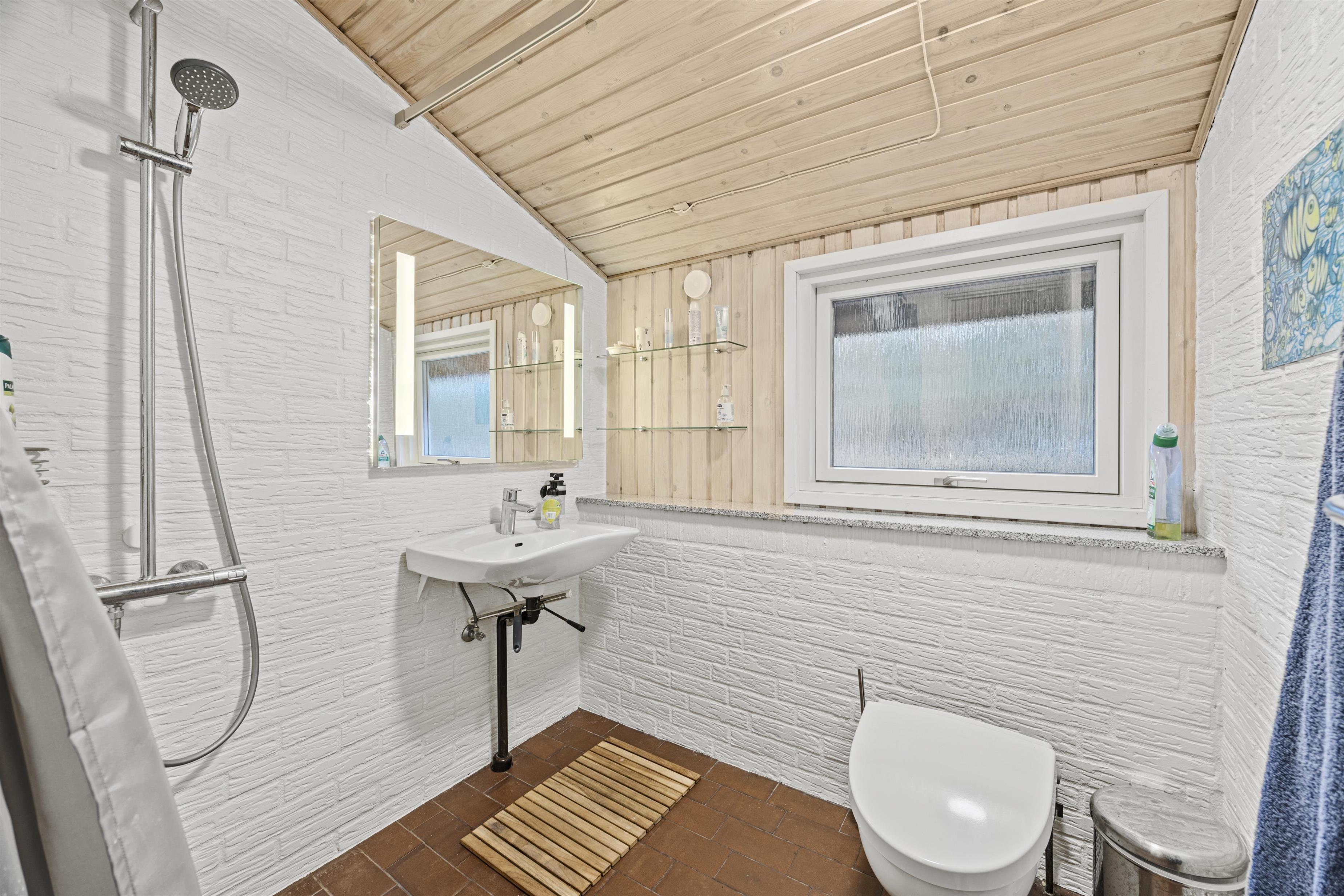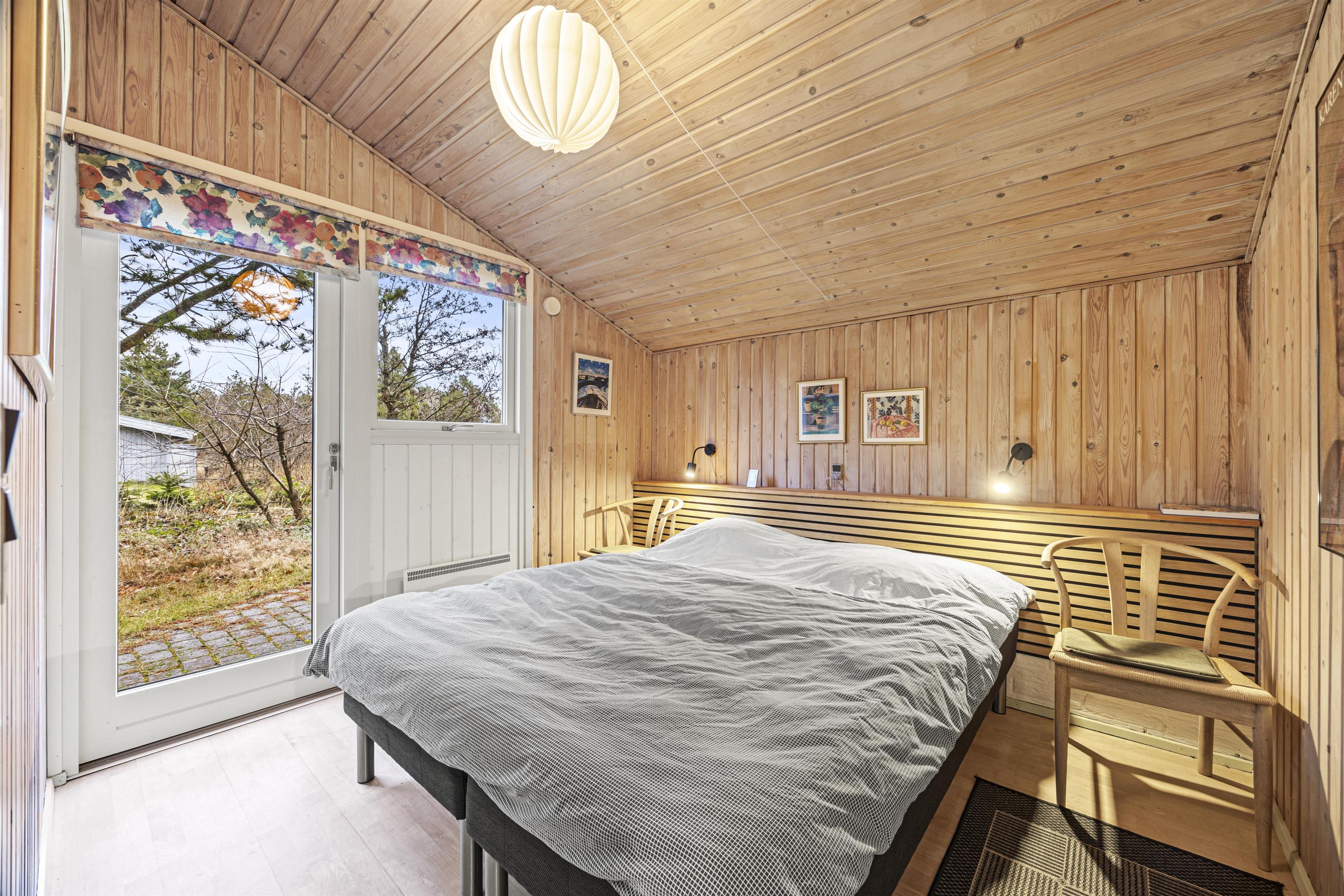 Sommerhuset har 3 soveværelser, der gør det perfekt til børnefamilien. Ét af værelserne er indrettet med en dobbeltseng, det andet har en køjeseng, og det sidste byder på en enkeltseng. Derudover er der et badeværelse med gulvvarme, som sikrer en behagelig start på dagen, selv på de kølige morgener.