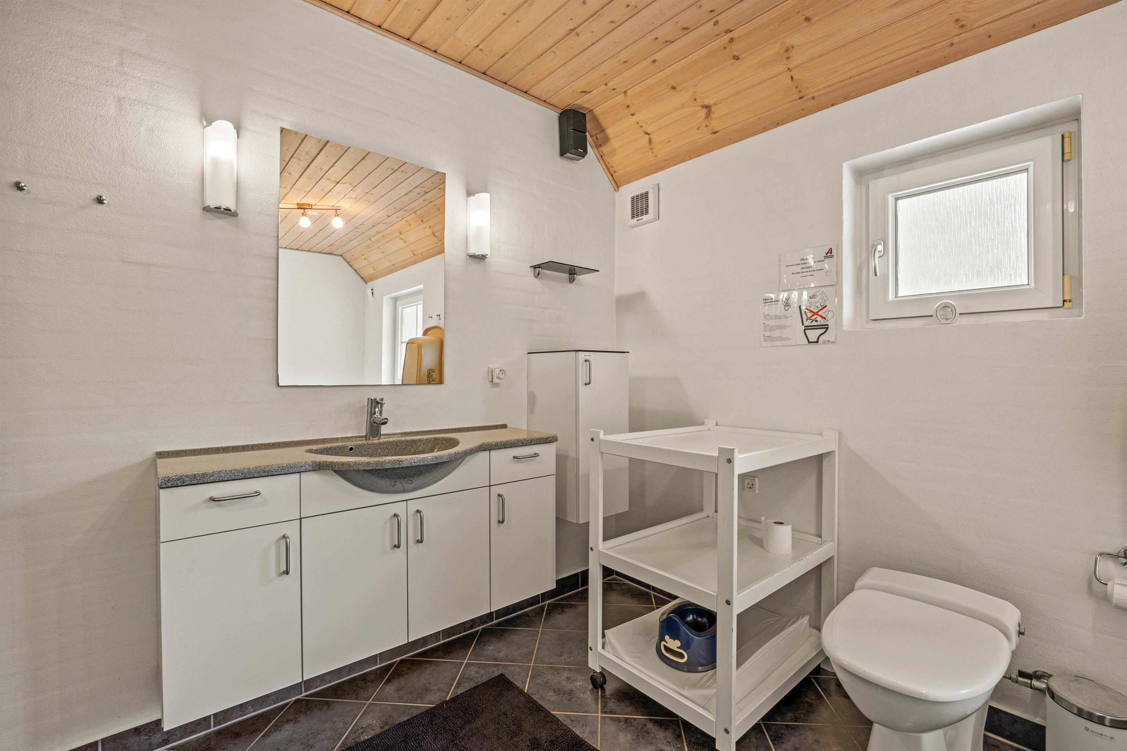 I det større badeværelse med dagslys finder I desuden spabadet og saunaen, som indbyder til afslappende wellnessaftener – her kan I virkelig lægge hverdagens stress bag jer. Soveværelserne er fordelt på 3 værelser med dobbeltsenge og 1 værelse med 2 enkeltsenge, så alle har mulighed for at trække sig tilbage og slappe af.