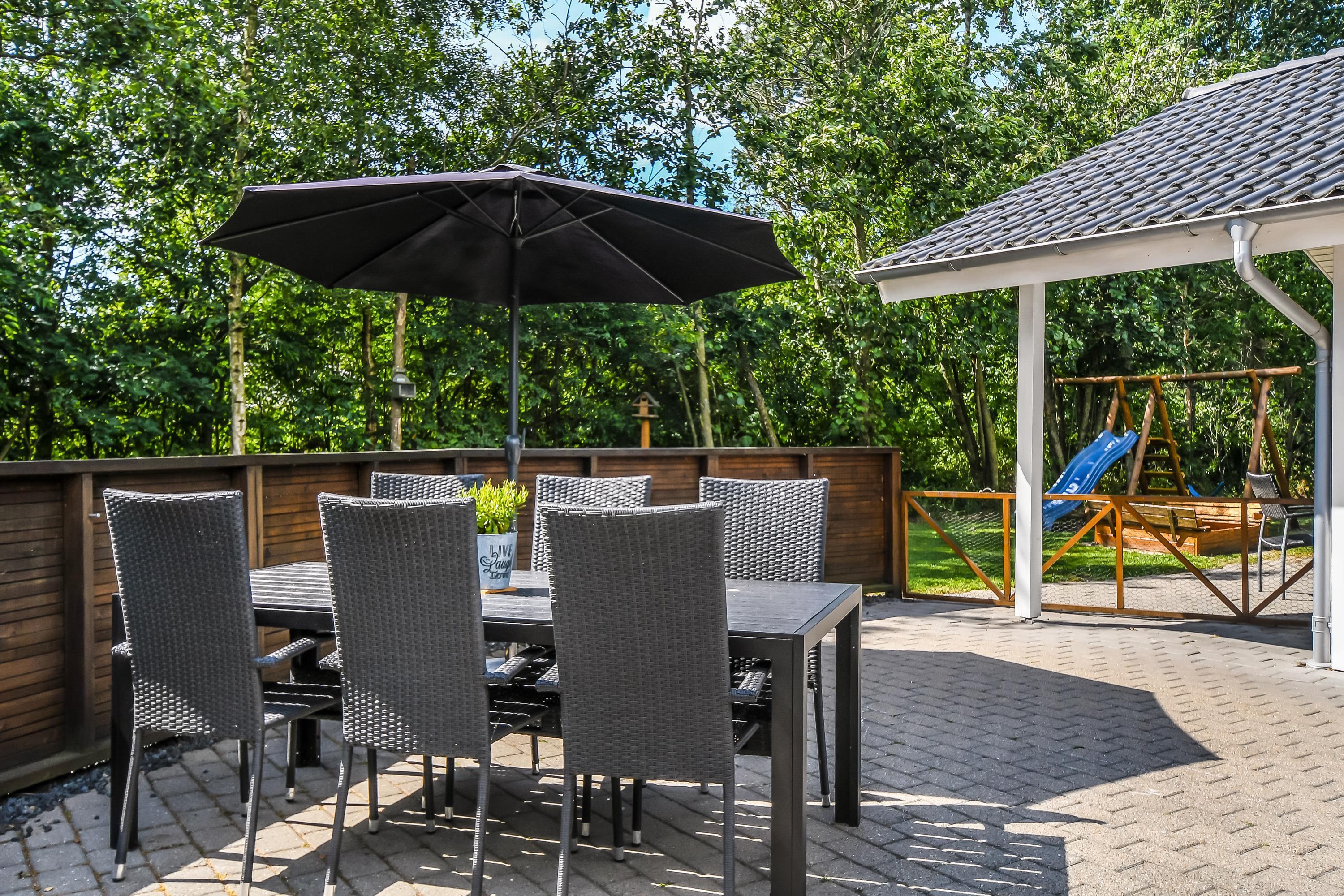 Så snart solen står op, er det tid til at indtage terrassen. Her er der både liggestole og havemøbler, så I kan slappe af i varmen, spise frokost i solen og holde en hyggelig grillaften sammen. Terrassen kan desuden lukkes af, så hundene og børnene kan lege dagen lang, uden I behøver at holde øje med dem.
