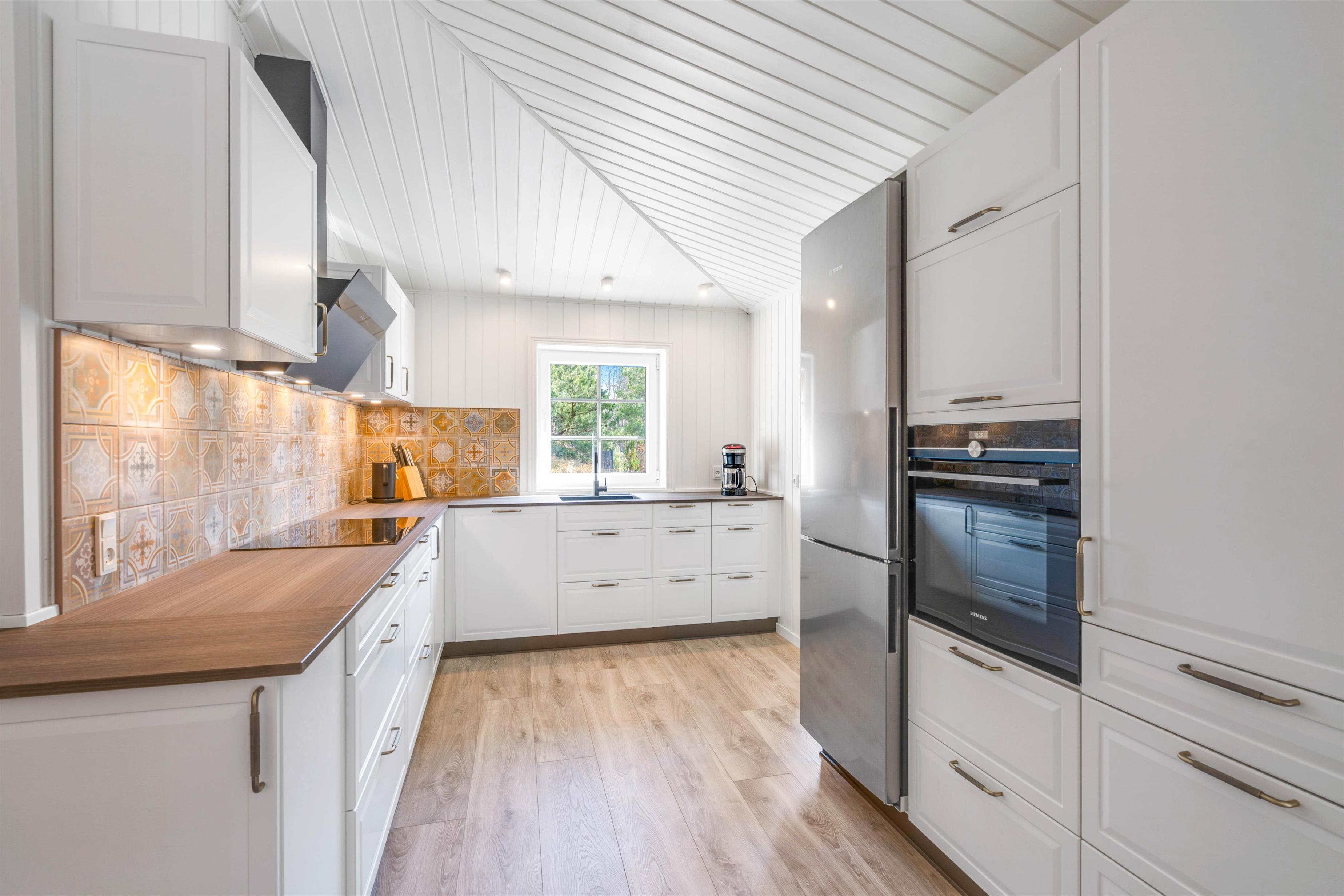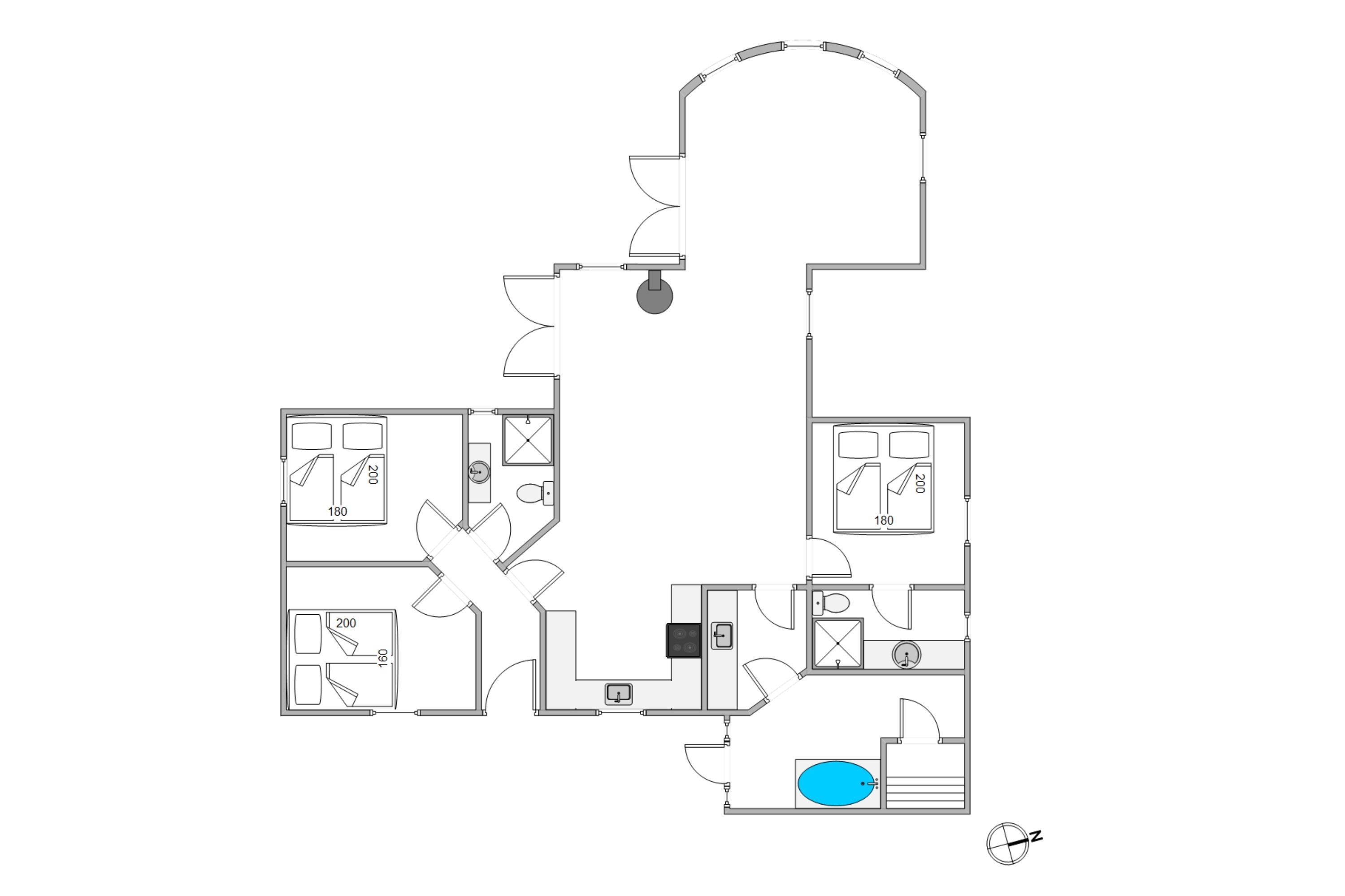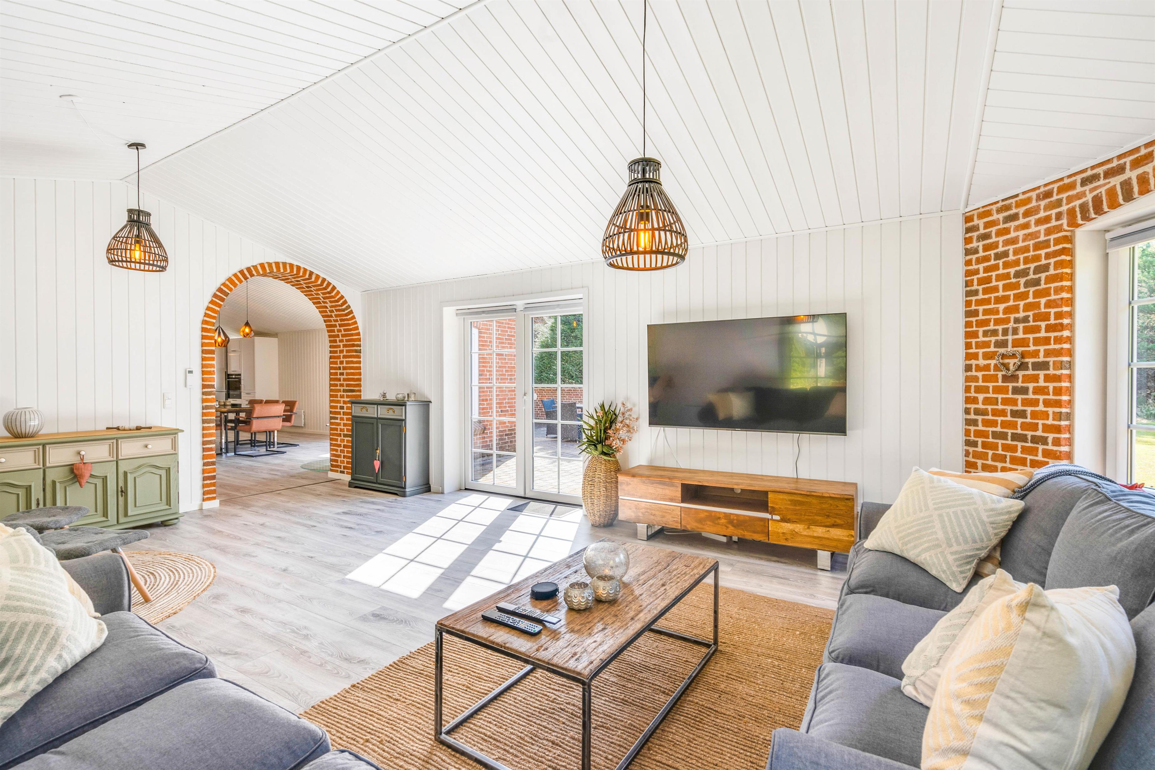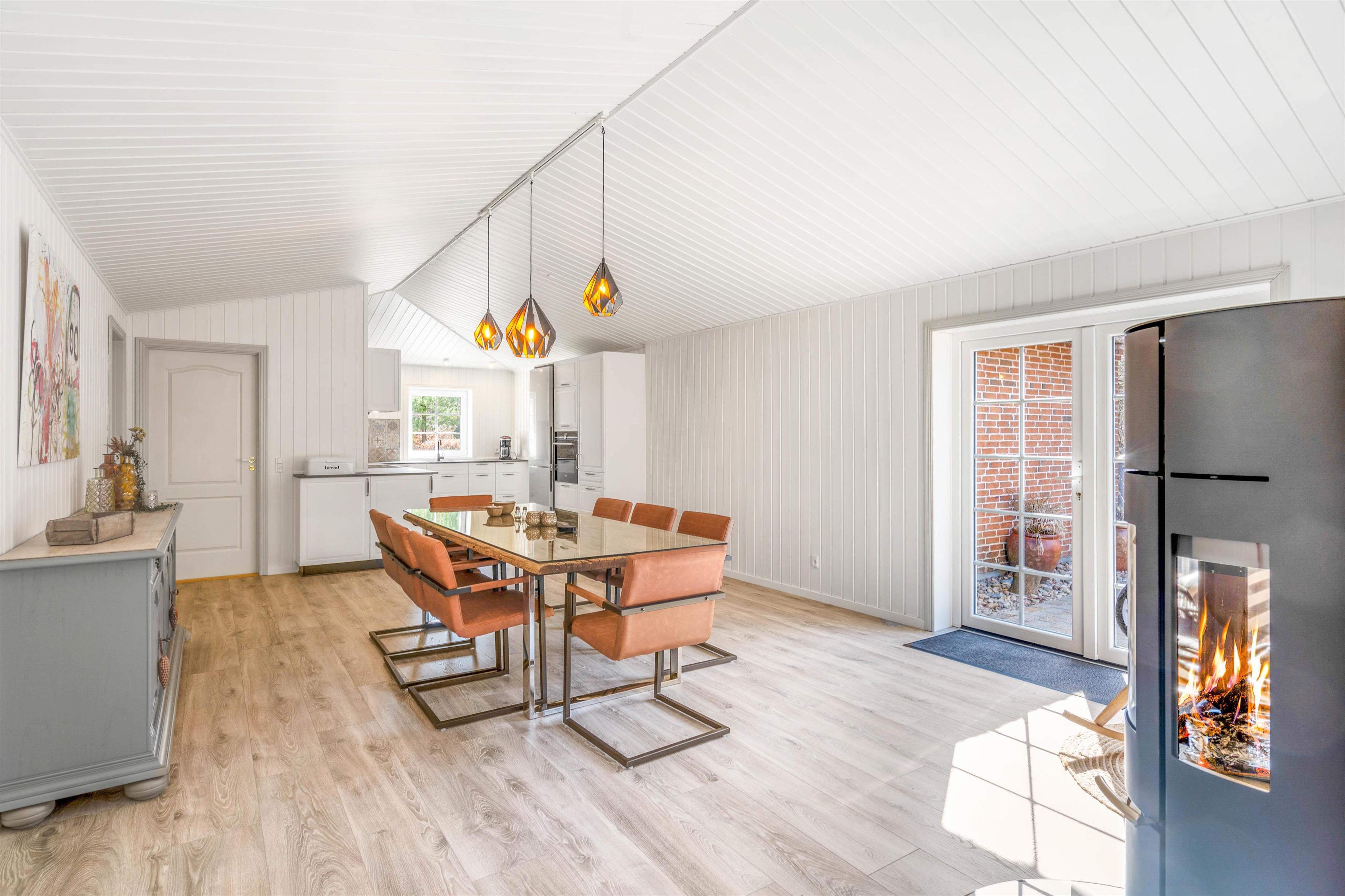Feriehuset er på hele 165m², har 3 store lyse soverum, 2 gode badeværelser, en lille wellness oase hvor I kan forkæle jer med en tur i den boblende spa eller en tur i den varme sauna. Det store rummelige køkken, har alt det I skal bruge for at tilberede jeres næste middag og ligger i åben forbindelse til spisestuen, som går videre ind i stuen. Den hyggelige stue kommer til at danne rammen for mange hyggelige familieaftener med spil og film, og på de kølige dage vil brændeovnens knitrende flammer i baggrunden sprede varme og fredfyldt feriestemning. Her bliver nærvær og samvær sat i fokus.