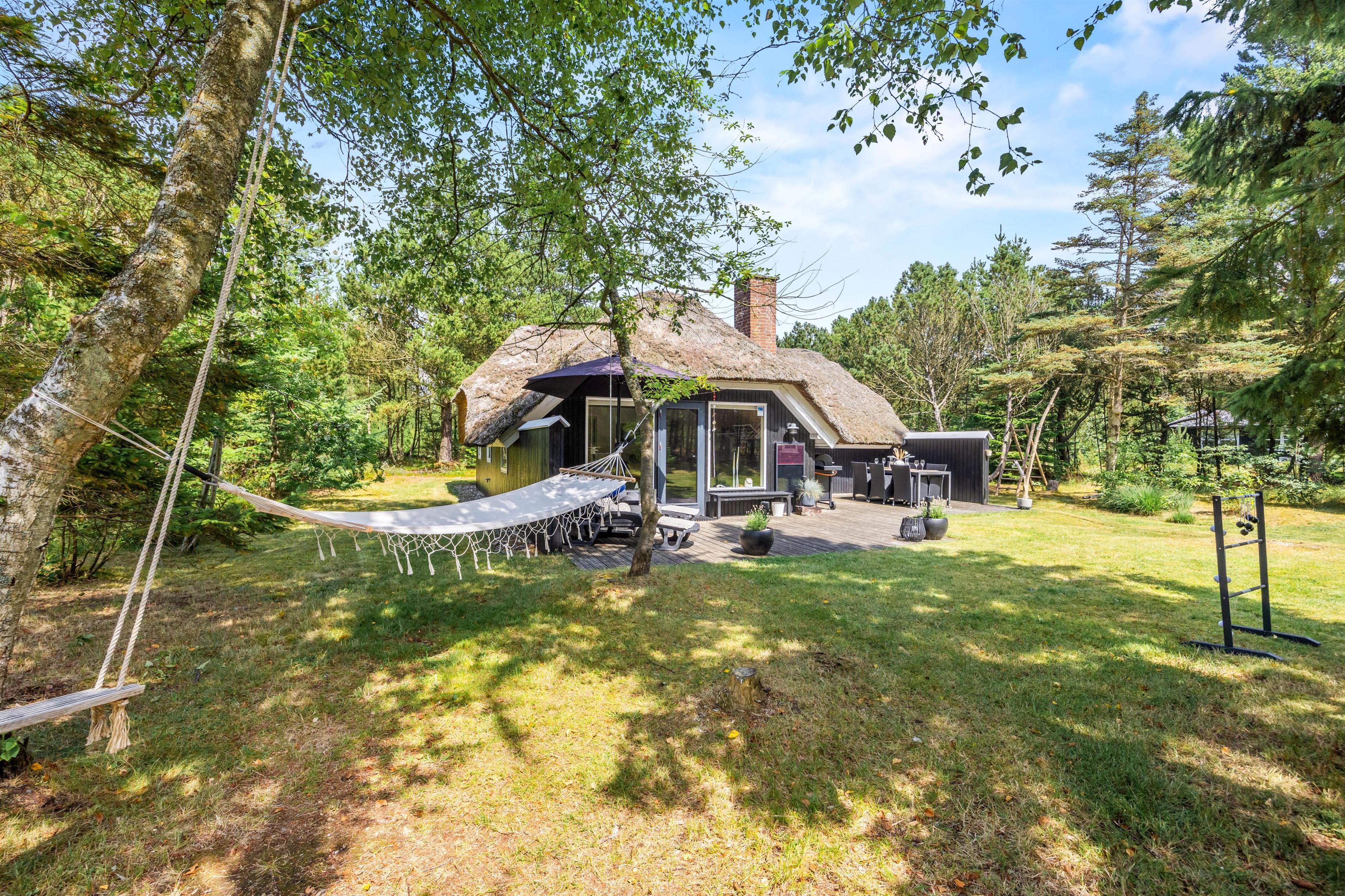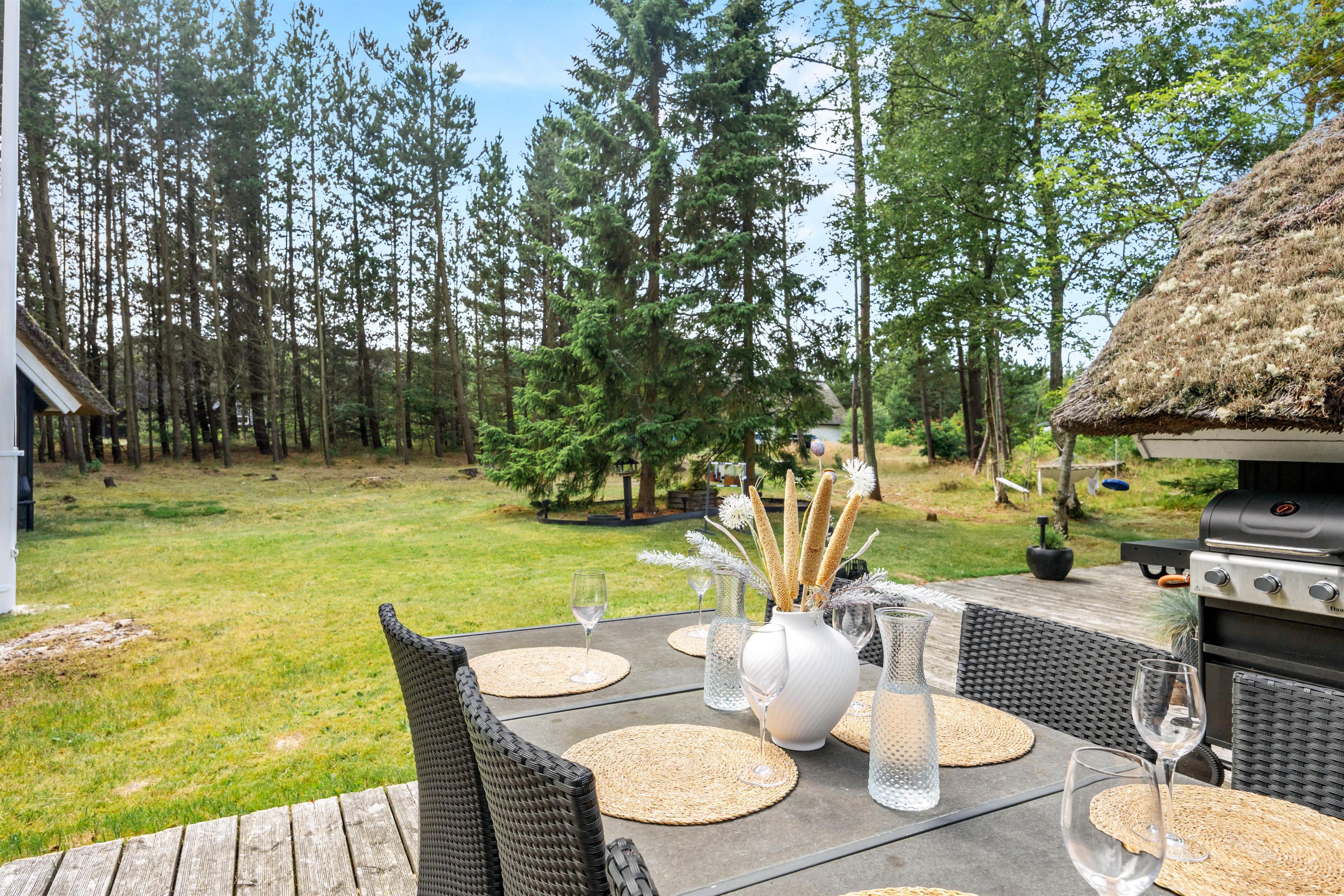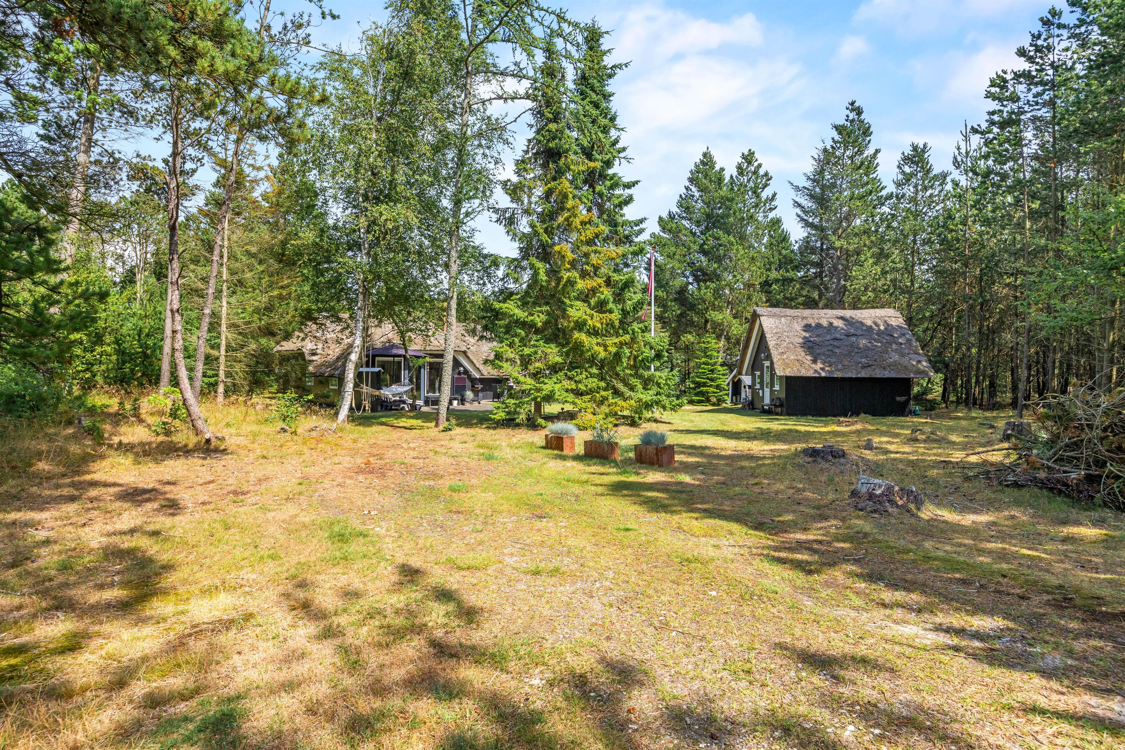 Udearealet omkring sommerhuset er en indbydende forlængelse af jeres opholdssted, der rummer mulighed for både afslapning og aktiviteter. På den rummelige naturgrund på 2075 kvadratmeter kan I nyde den friske luft og de naturskønne omgivelser. Her finder I også en grill, perfekt til at tilberede lækre måltider under åben himmel, mens I nyder skønne sommeraftener.
