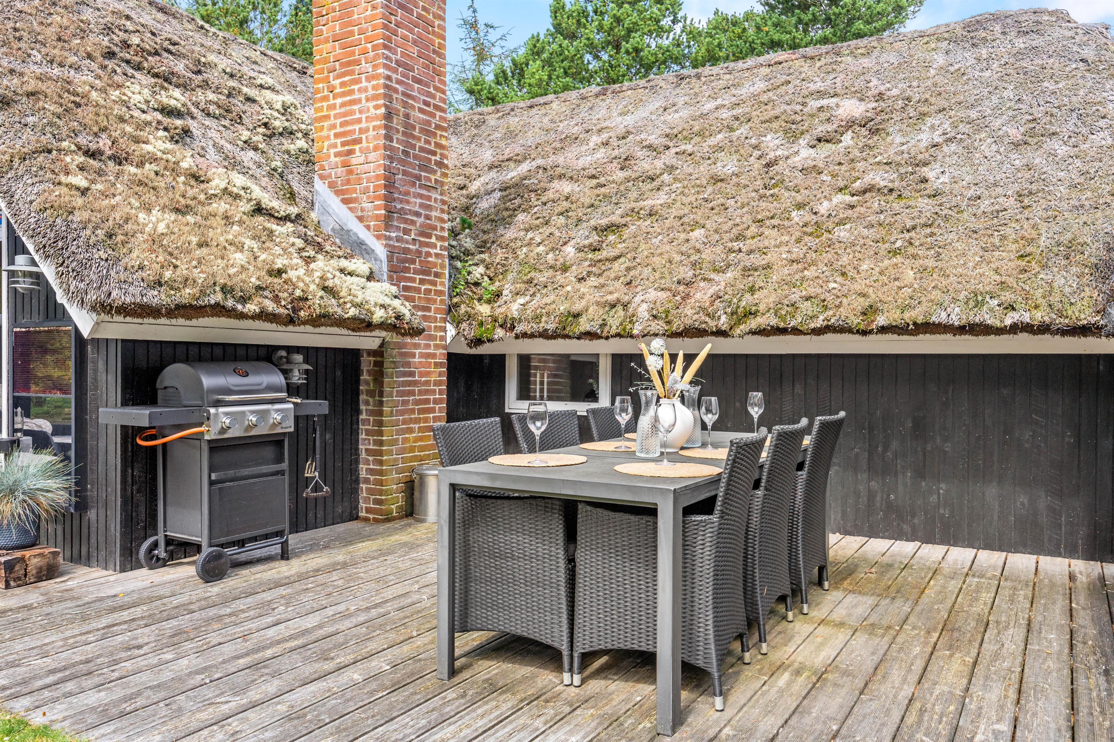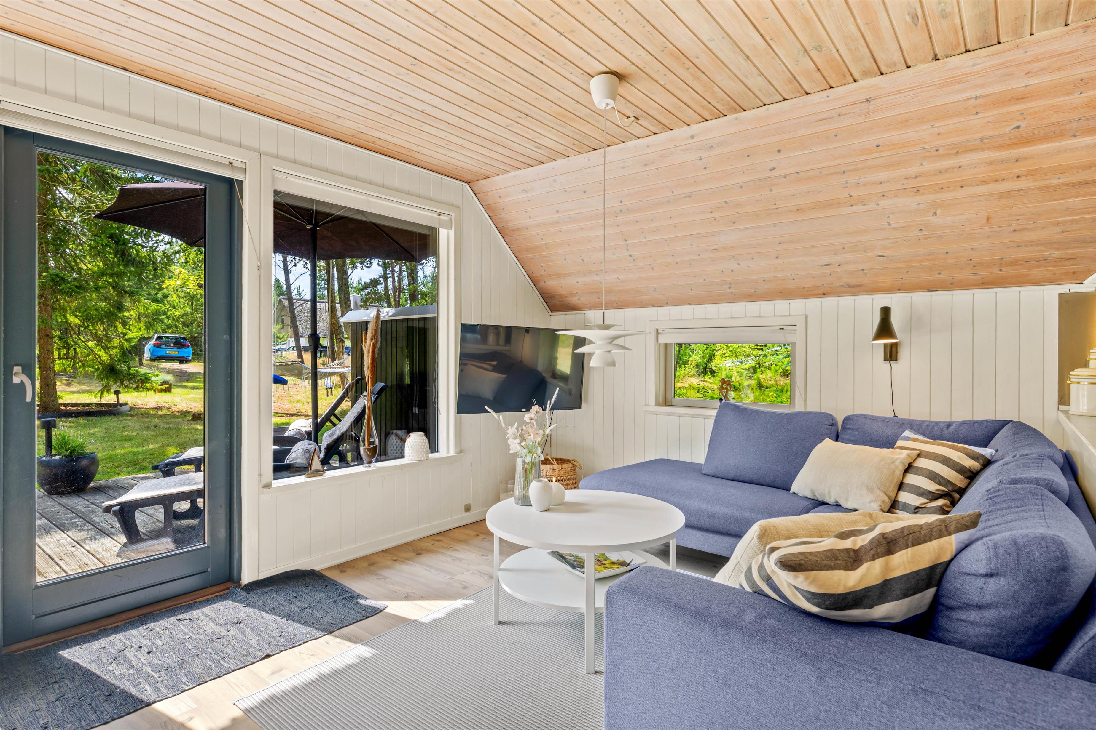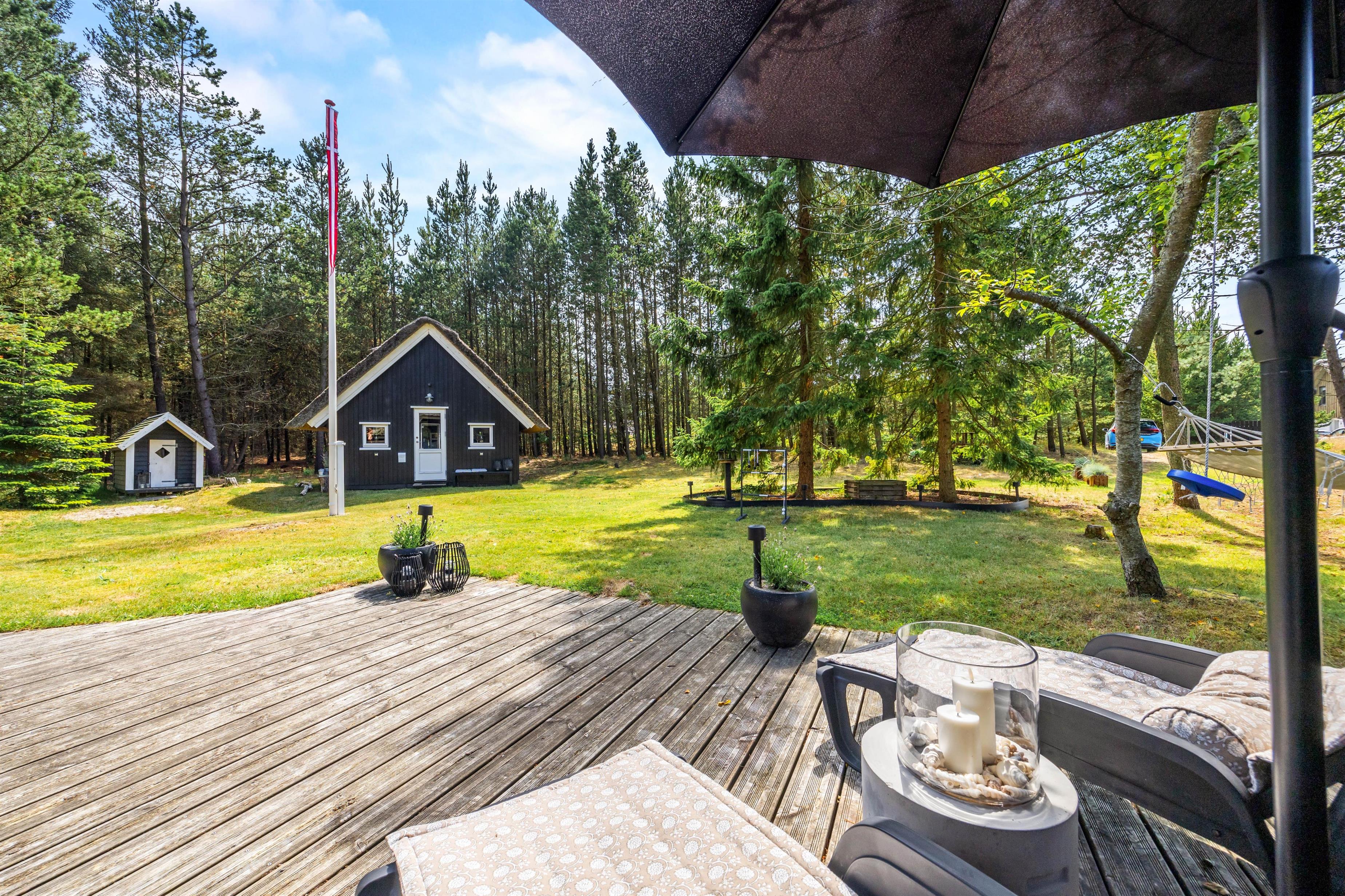 Udearealet omkring sommerhuset er en indbydende forlængelse af jeres opholdssted, der rummer mulighed for både afslapning og aktiviteter. På den rummelige naturgrund på 2075 kvadratmeter kan I nyde den friske luft og de naturskønne omgivelser. Her finder I også en grill, perfekt til at tilberede lækre måltider under åben himmel, mens I nyder skønne sommeraftener.