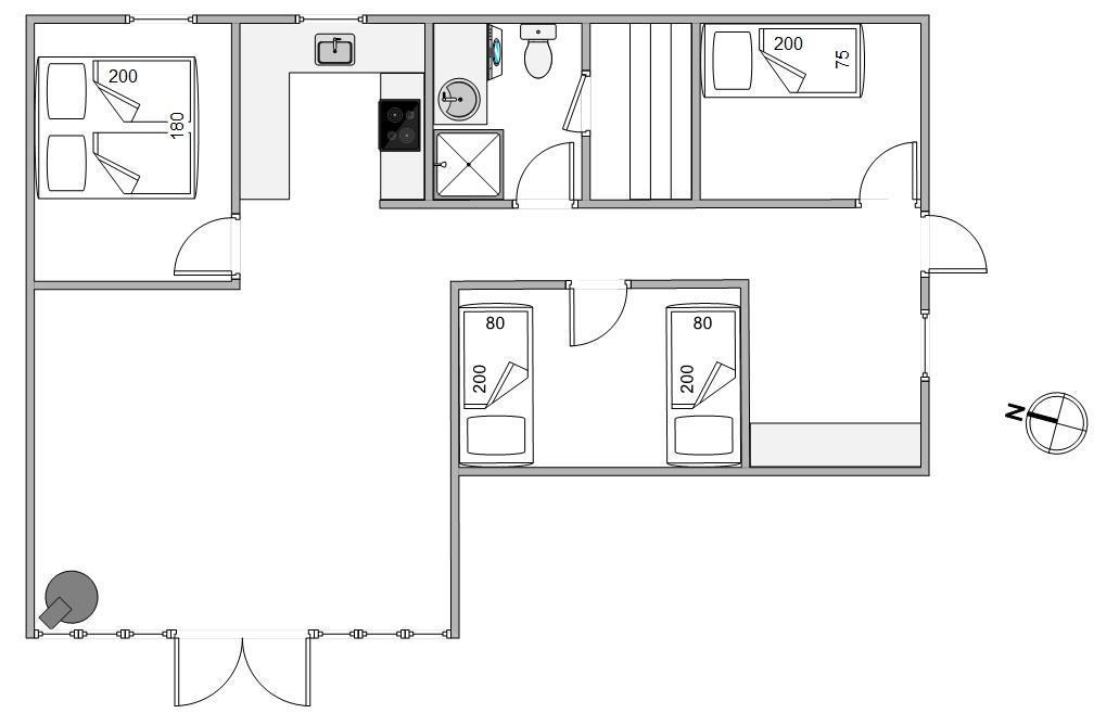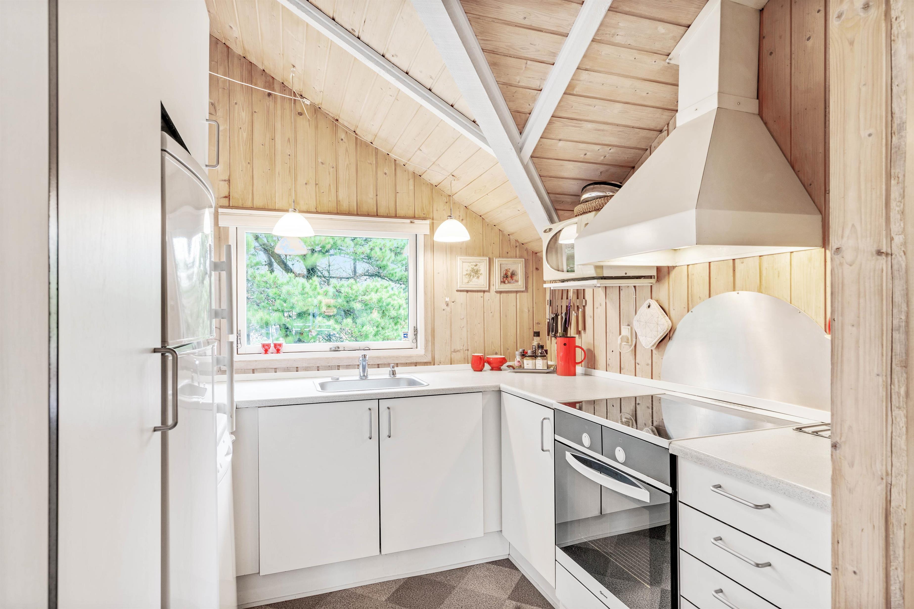 Sommerhuset er indrettet til 5 personer fordelt på 3 soverum - to soverum er med dobbeltseng og et med 2 enkeltsenge. Således egner sommerhuset sig ikke kun til familieferien, men også til ferie med et vennepar. De lyse trævægge og de bekvemme møbler sørger for den rette stemning. Her er et sommerhus, hvor I virkelig kan hygge jer og slappe af.