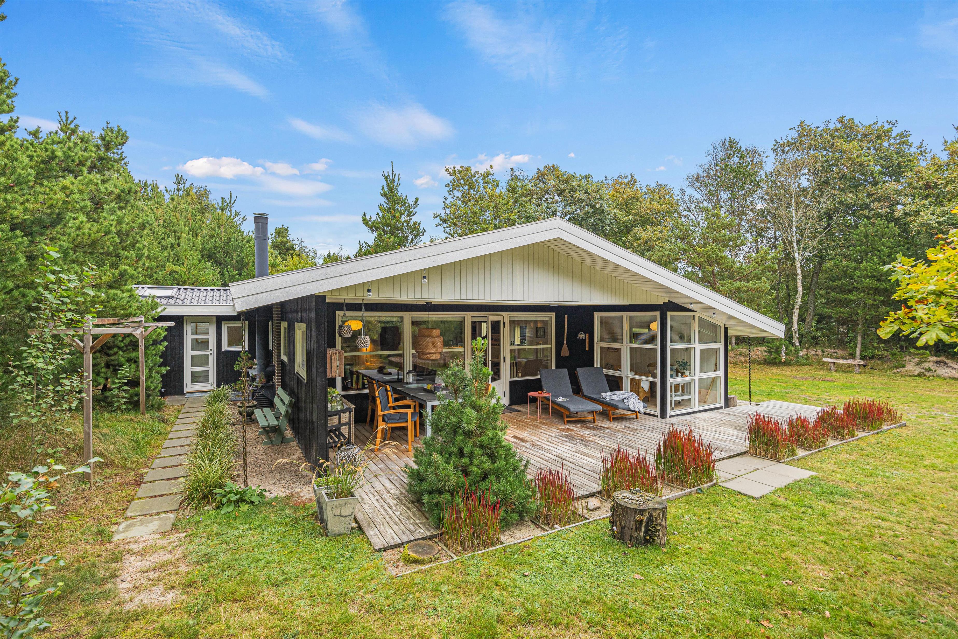 I dette hyggelige feriehus på Sdr. Skovvej 24, midt i vestkystens smukke natur, kan I holde en helt uforglemmelig familieferie. Huset rummer plads til 6 personer og er perfekt til den lille familie eller en romantisk kæresteferie. Beliggenheden er både fredelig og naturskøn, og grunden er omgivet af høje træer.