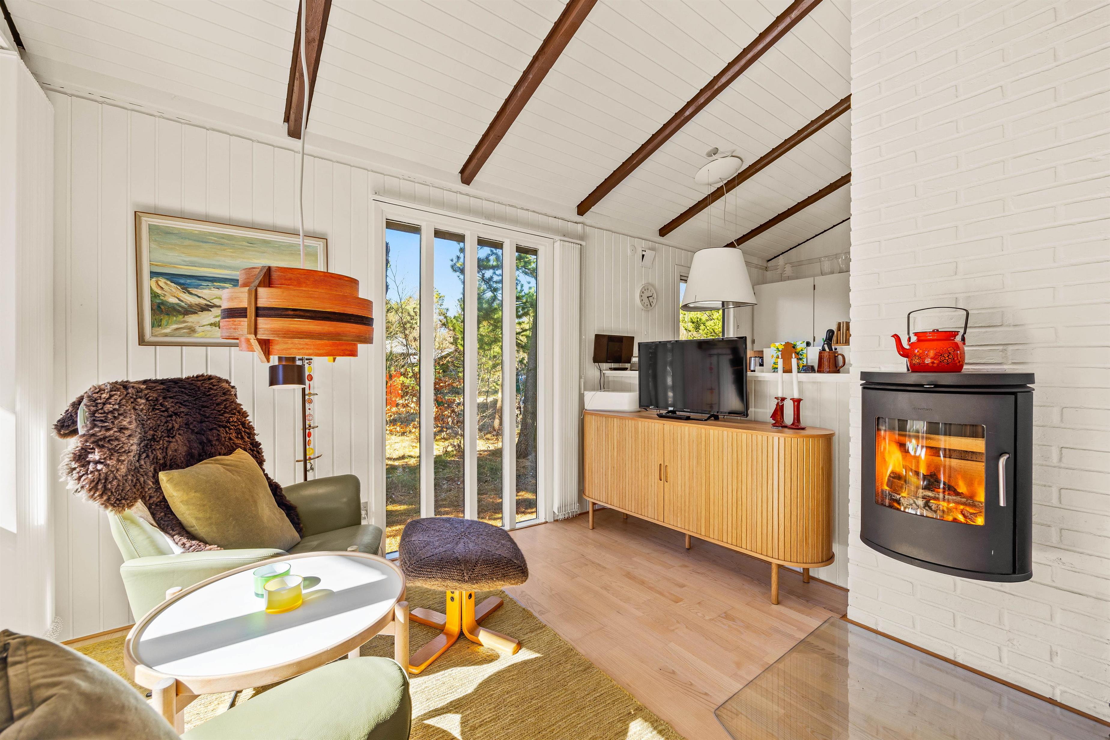 I sommerhusets hjerte, stuen, finder du den stemningsfulde brændeovn, der bidrager med både varme og en hyggelig atmosfære, perfekt til afslappende aftener efter en dag med aktiviteter. Den funktionelle opvaskemaskine gør det nemt at klare opvasken hurtigt, så du kan bruge din tid på det, der virkelig betyder noget. Derudover finder I også 1 badeværelset, som byder på både stil og funktionalitet, så du har alt, hvad du behøver for at føle dig hjemme og veltilpas under dit ophold.