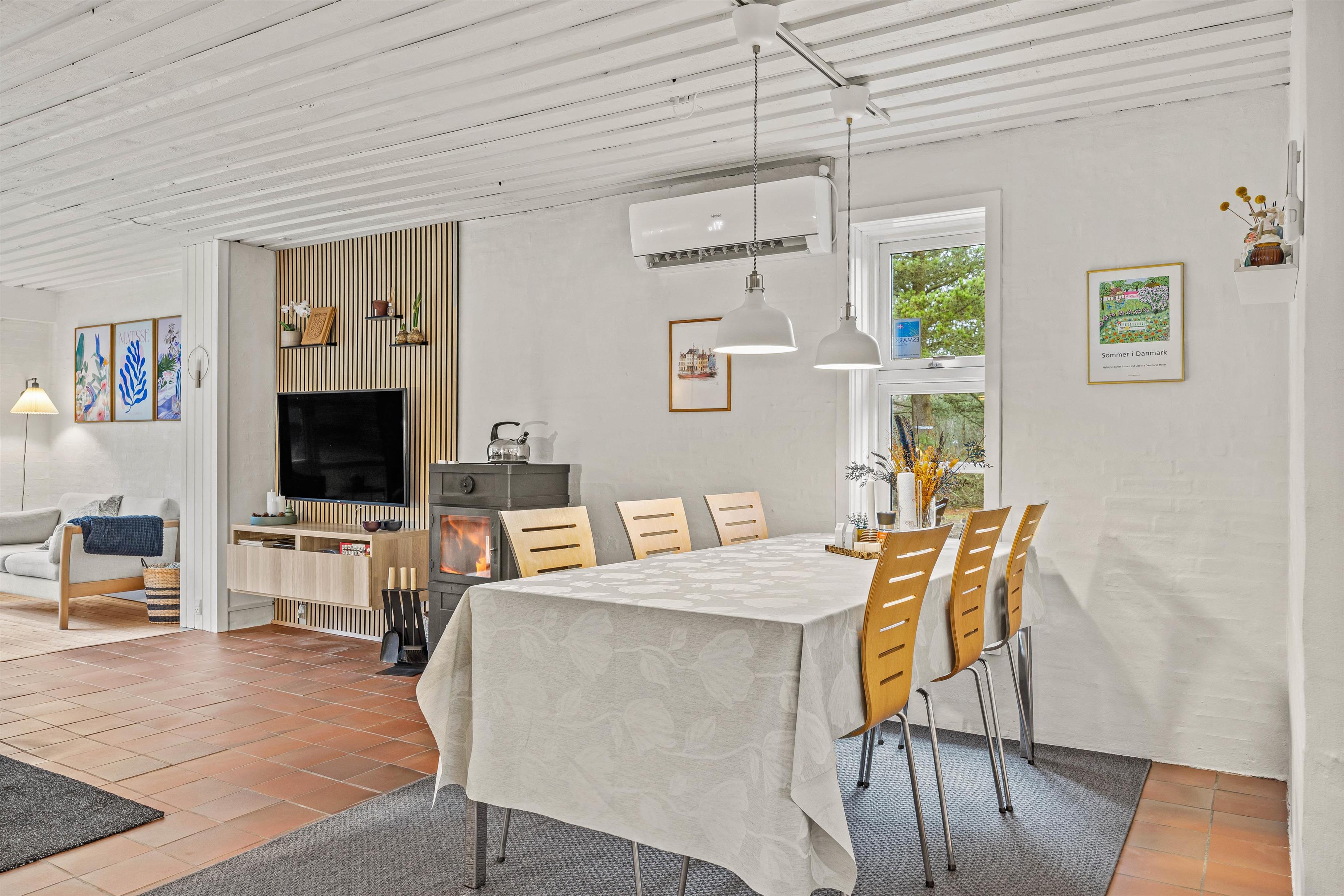 Sommerhuset rummer også et skønt alrum, hvor køkken, stue og spiseplads er forenet. Alrummet udgør det helt store samlingspunkt for jer på ferien, hvor I kan tilbringe masser af tid sammen med blandt andet madlavning, spil og film. I alrummet har I også en brændeovn, der ikke bare sørger for god varme, men den sørger også for at fuldende den hyggelige feriestemning.