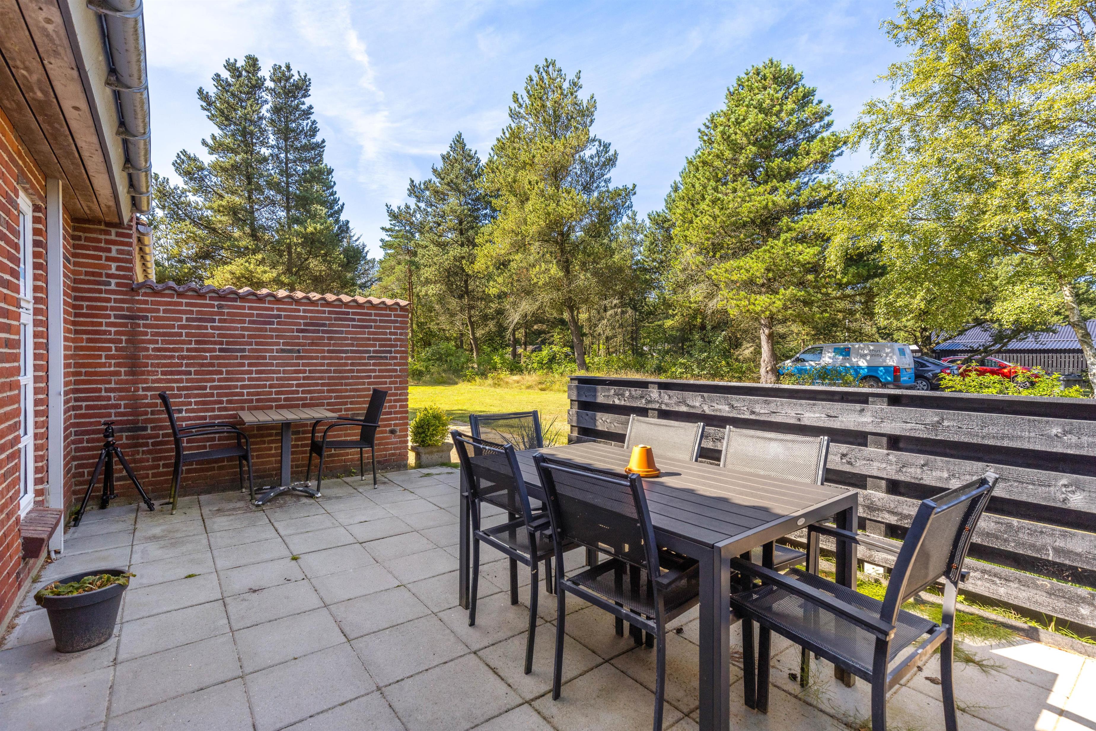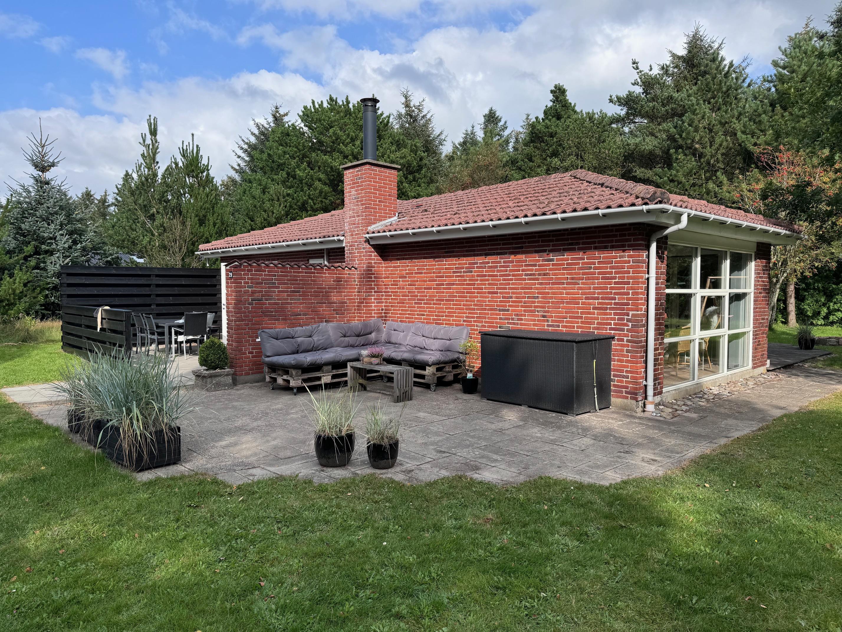 Mens der er gang i legen blandt børnene, kan I andre slappe af på terrassen. Sommerhusets terrasse er åben og delvist afskærmet, og her har I både havemøbler og liggestole, I kan finde jer godt til rette i. Find en god plads i solen, læn jer tilbage og nyd ferien med lyden af fuglefløjt, vinden i træerne og børnenes leg i baggrunden.