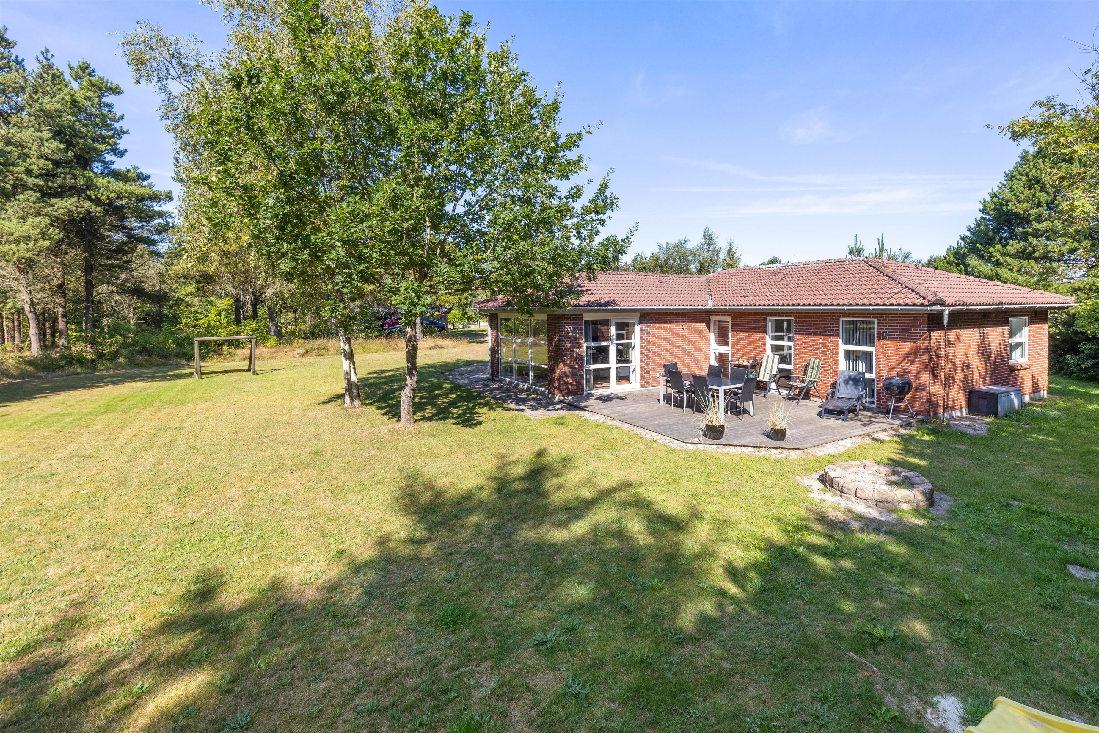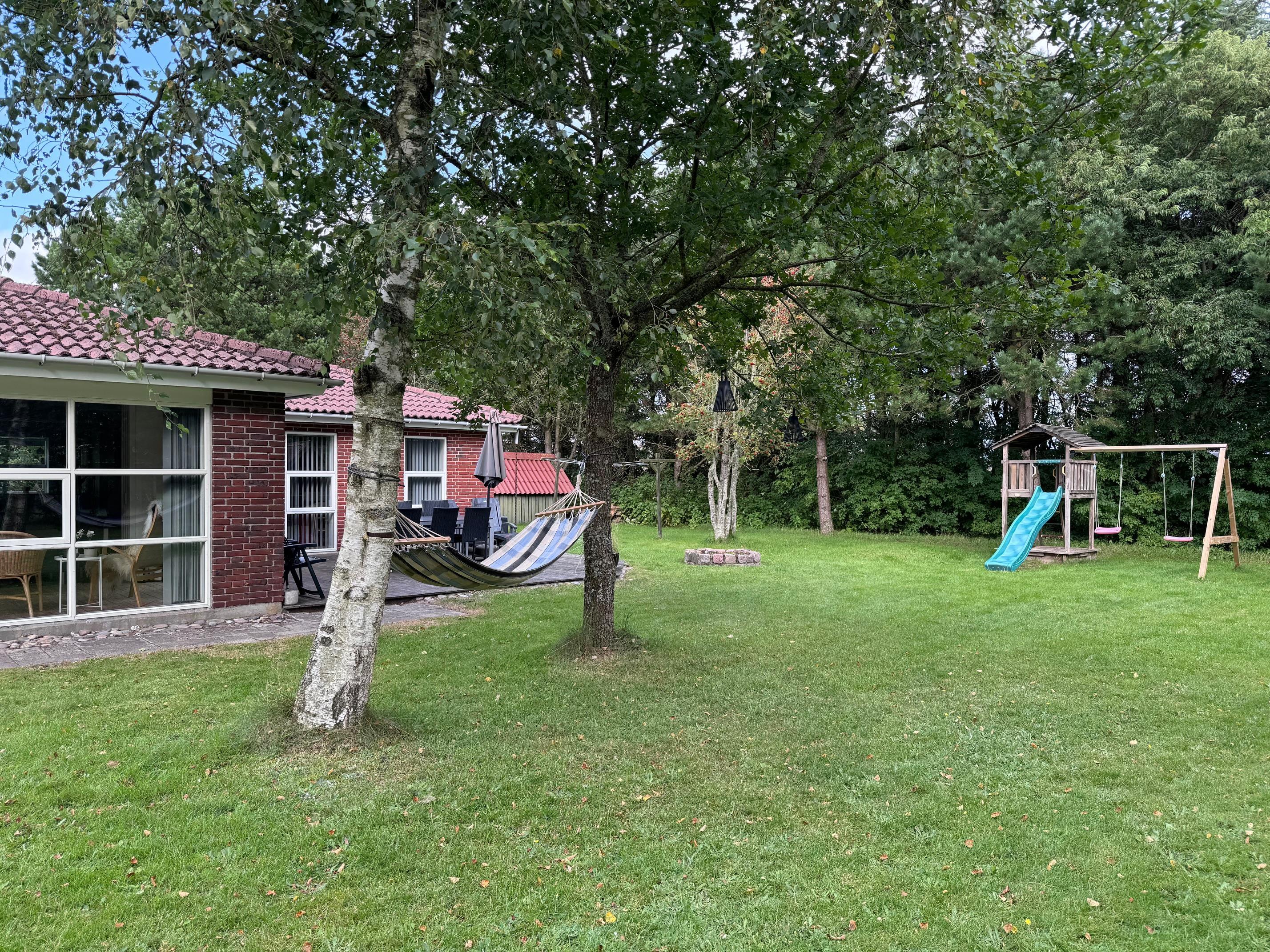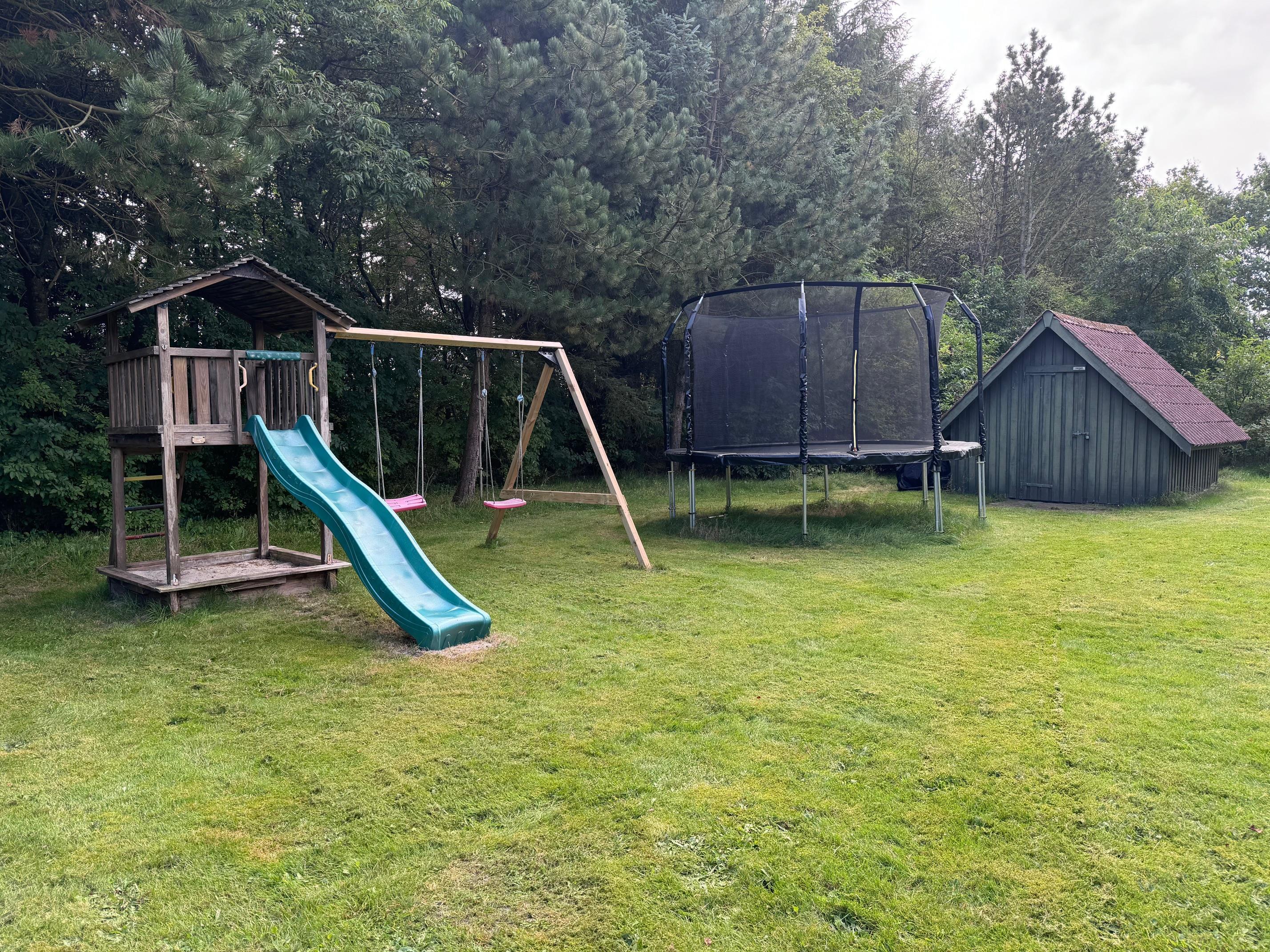 Sommerhusets grund er mere end 1.400 kvadratmeter stor, og her er der masser af plads til sjov og leg for store, små og firbenede. Til familiens mindste er der både gynge, legehus og sandkasse, som de uden tvivl vil få stor glæde af på ferien.