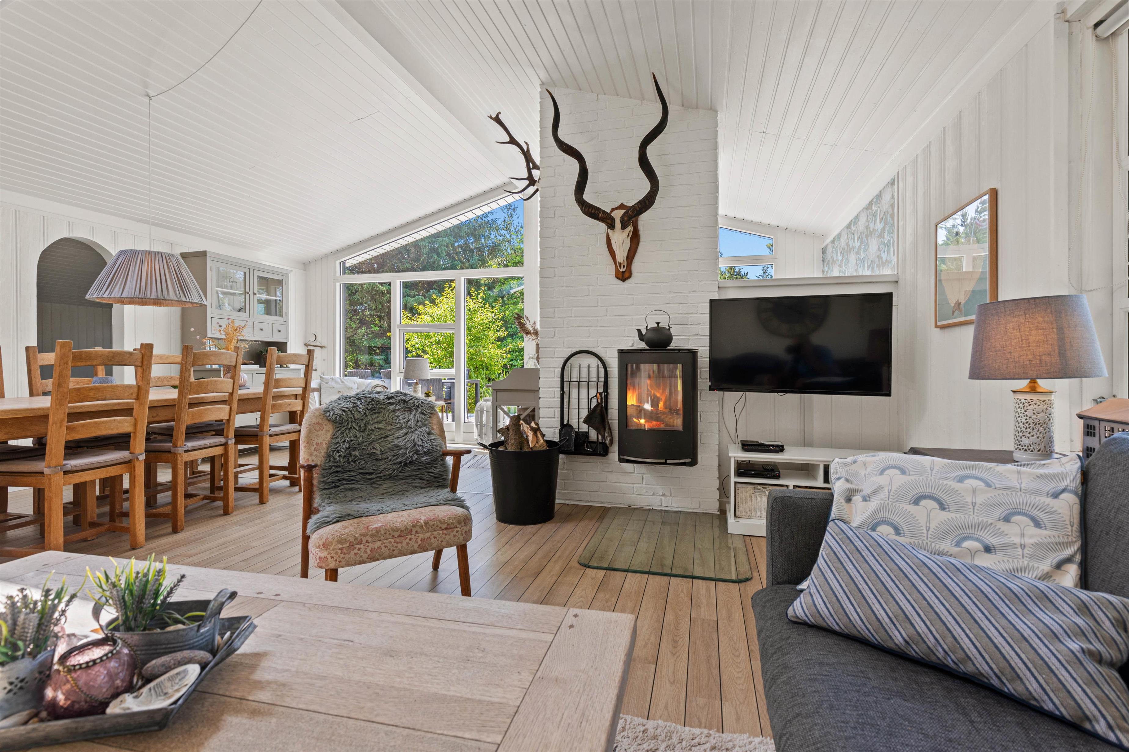 Det karakteristiske træsommerhus er både lyst og moderne indrettet og råder over alt, hvad I får brug for i løbet af ferien. Det veludstyrede køkken, de store vinduespartier, som fylder huset med lys, og brændeovnen, der spreder varme og hyggelig stemning på de kolde feriedage.