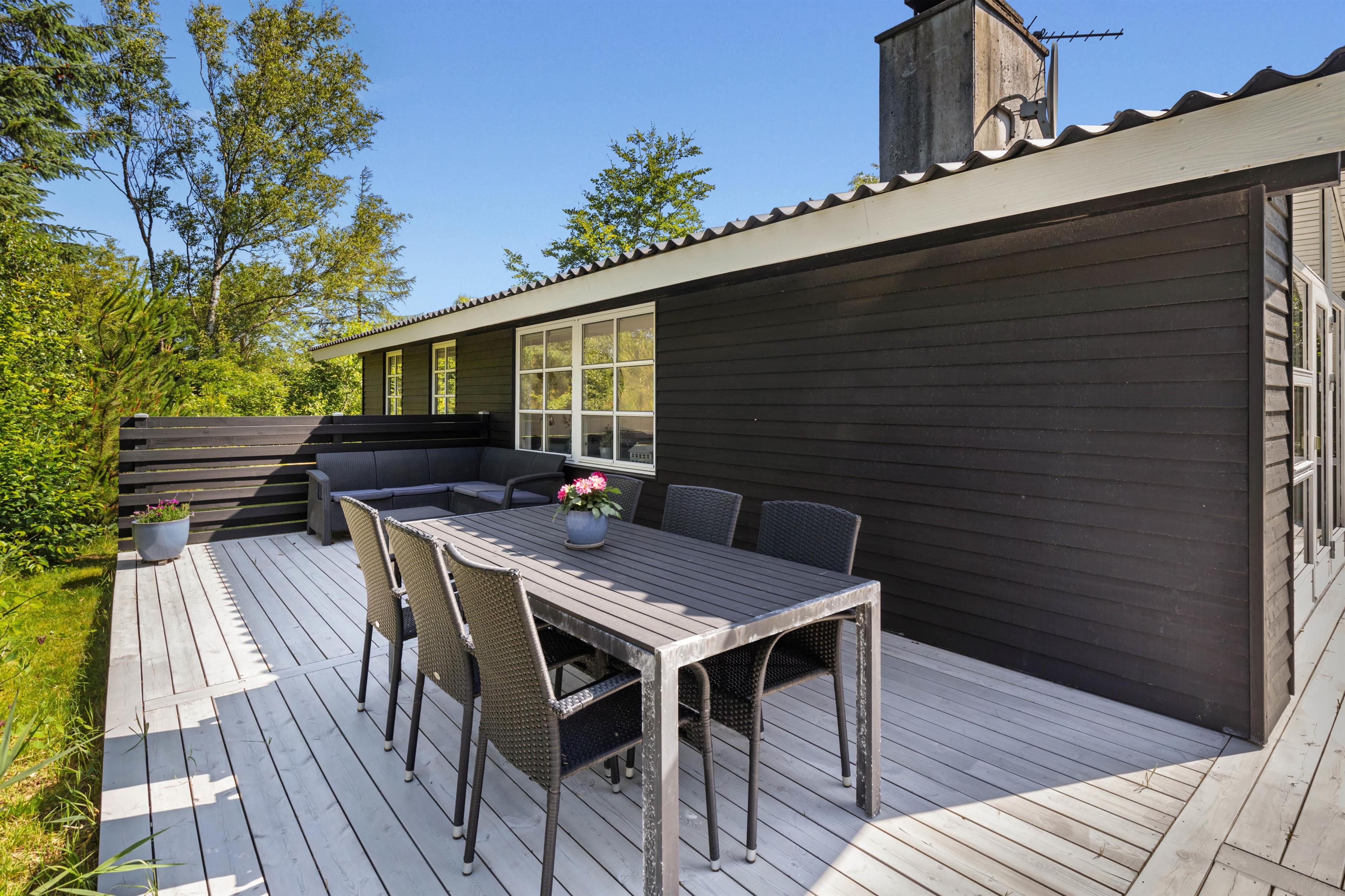 Foran huset finder I hele to terrasser, hvor der er god plads til at nyde den friskbryggede morgenkaffe eller holde en lækker grillaften sammen med hele familien. I kan også nyde de varme solskinsdage i fulde drag fra liggestolene.