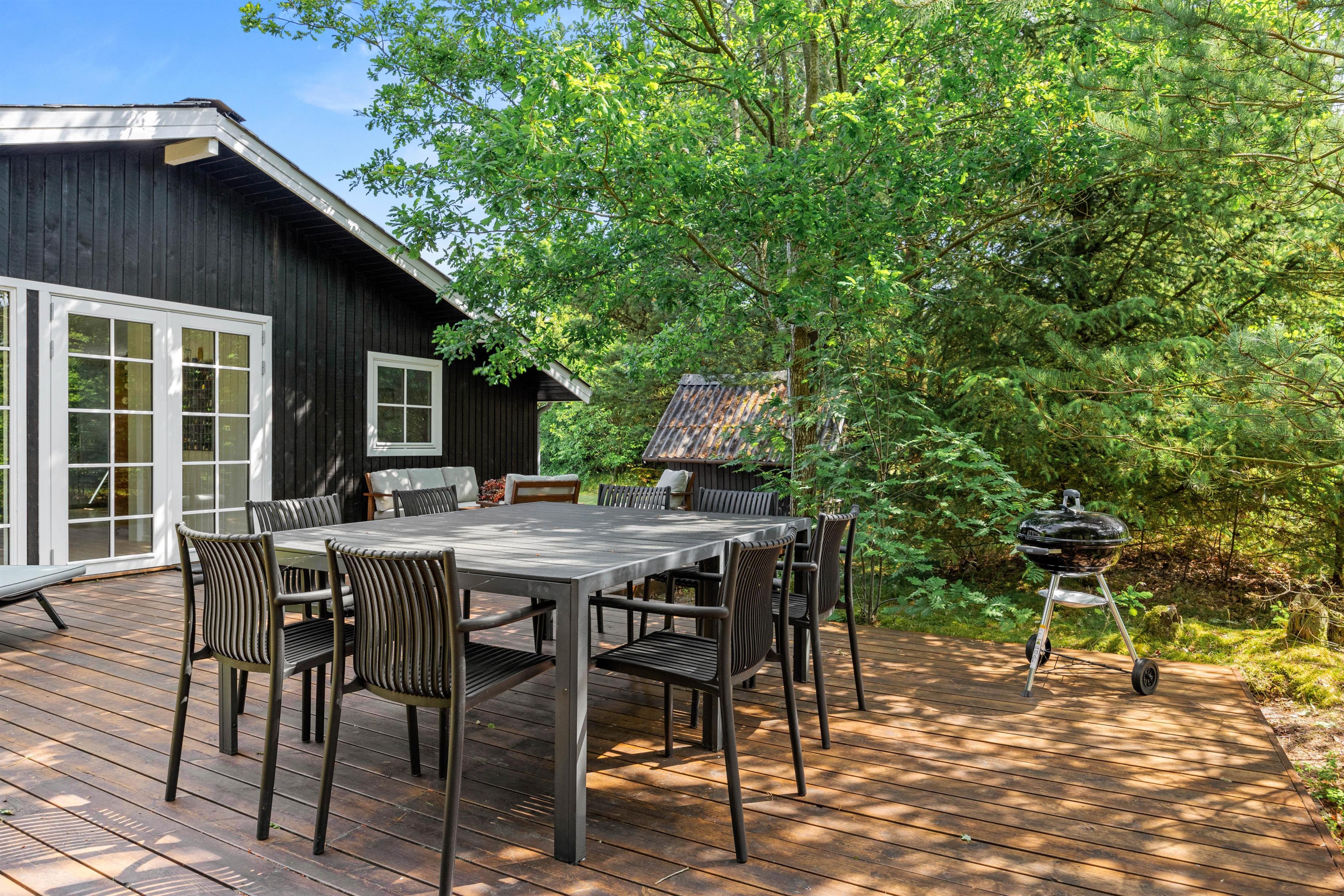Har I brug for lidt ro eller en time for jer selv med en god bog, er husets udestue indbydende. Her står kurvefletstole samt bord til fri benyttelse. Med dette skønne sommerhus i Houstrup kommer hyggen i centrum.