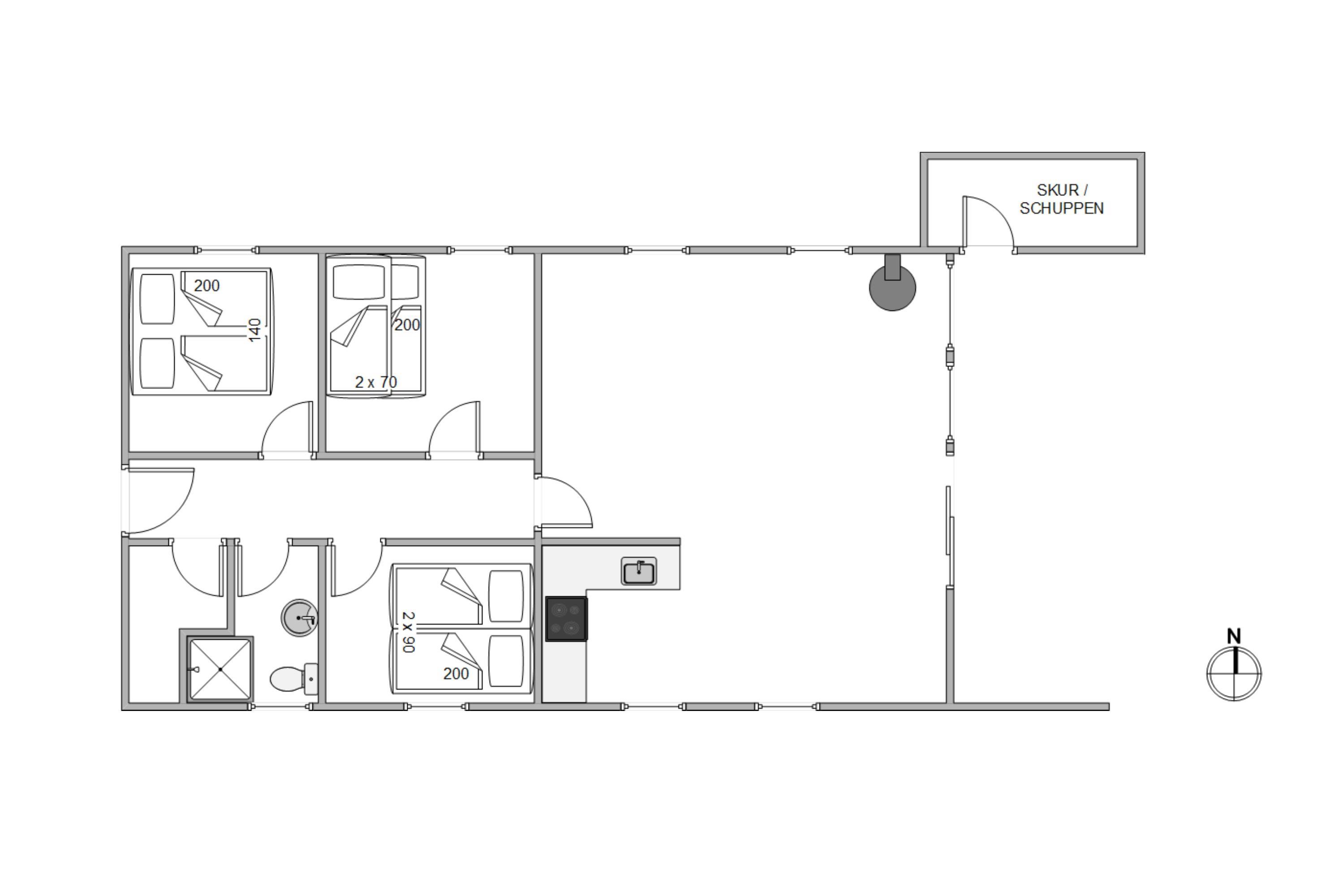 For god nattesøvn kan I fordele jer på 3 soverum – børnene vil nok sige dips på køjesengen og elske denne klassiske feriehusdetalje, imens de voksne sikkert foretrækker de 2 soveværelser med dobbeltsengene, hvor det største har eget fjernsyn.