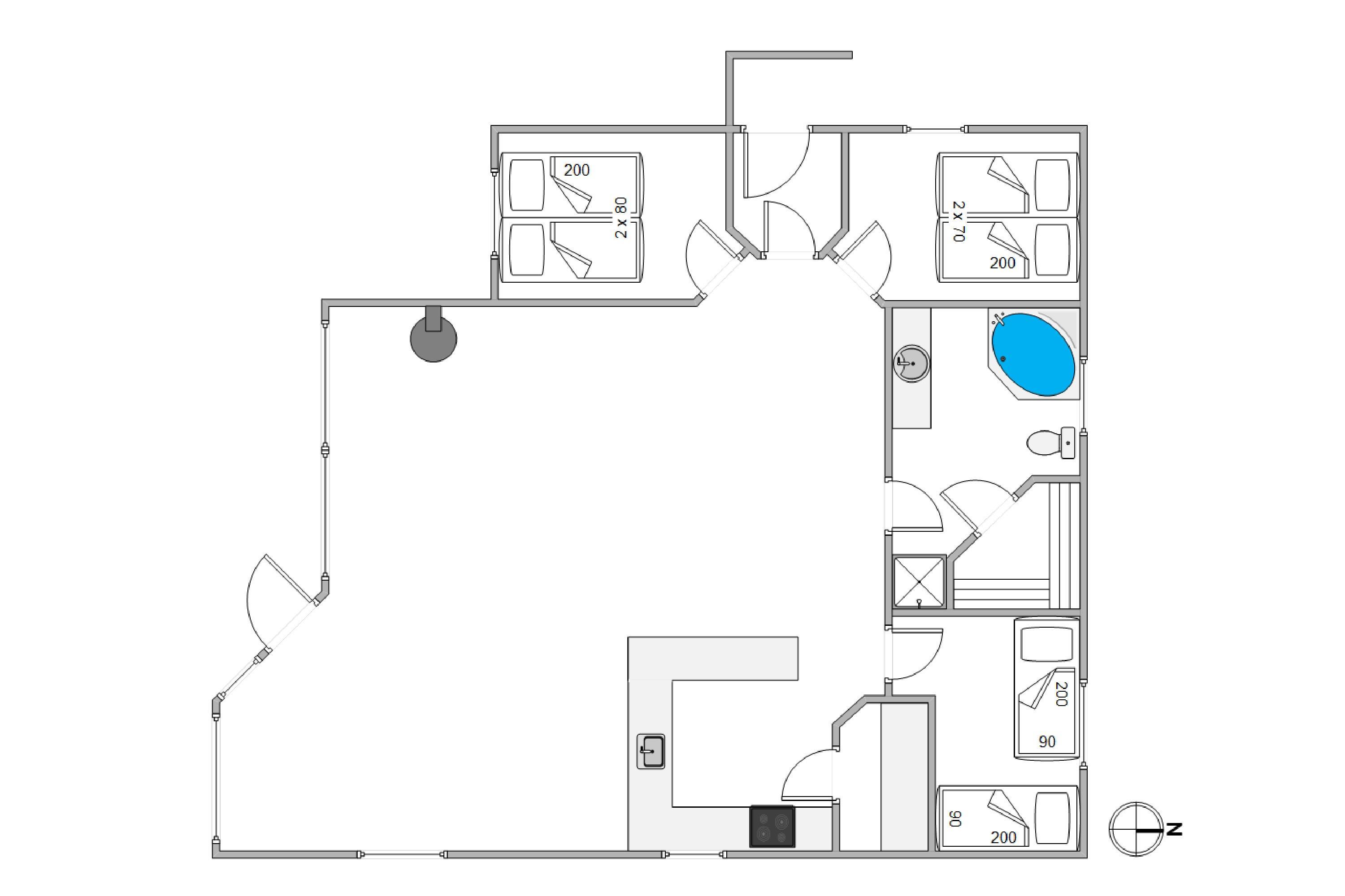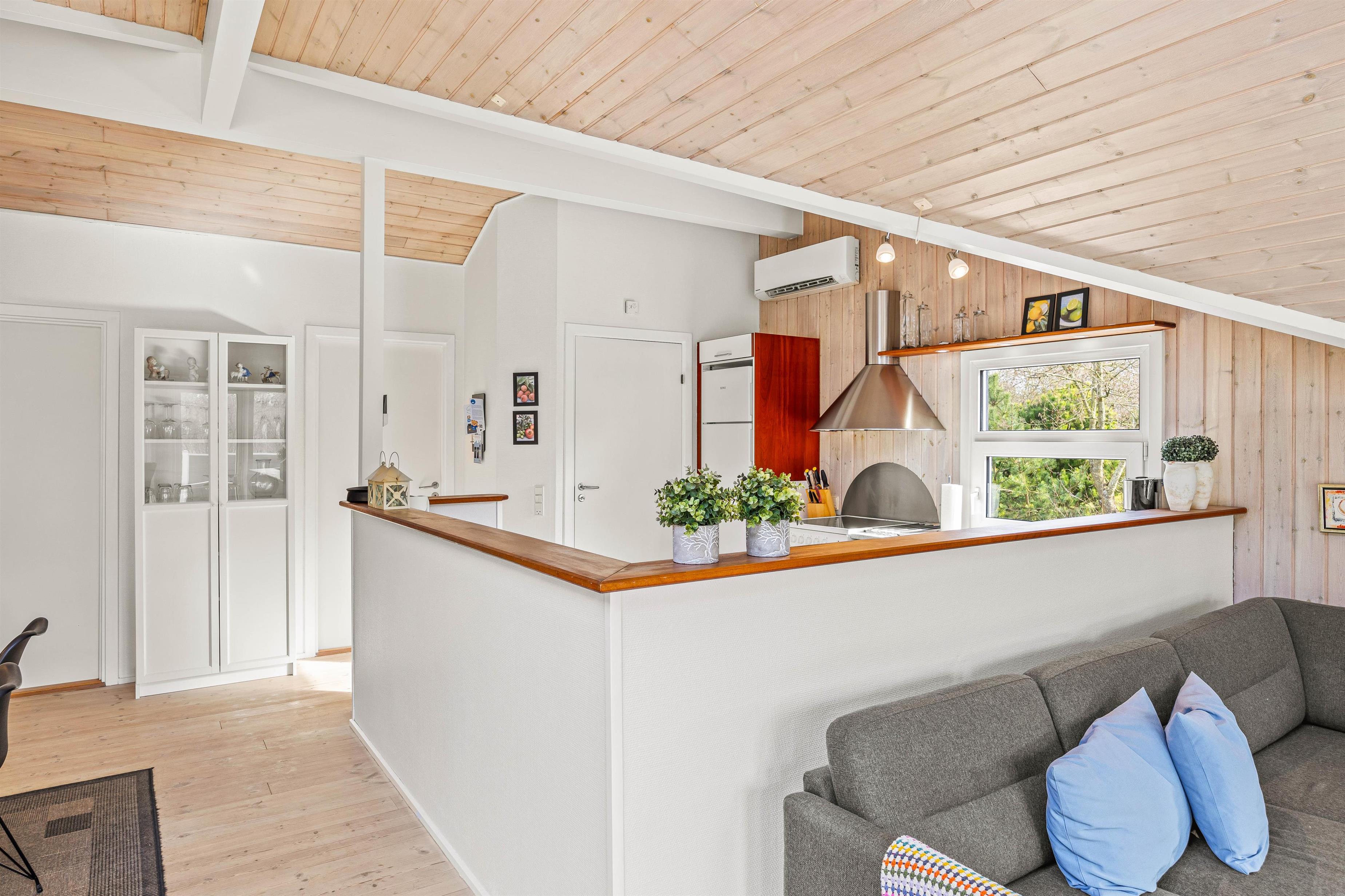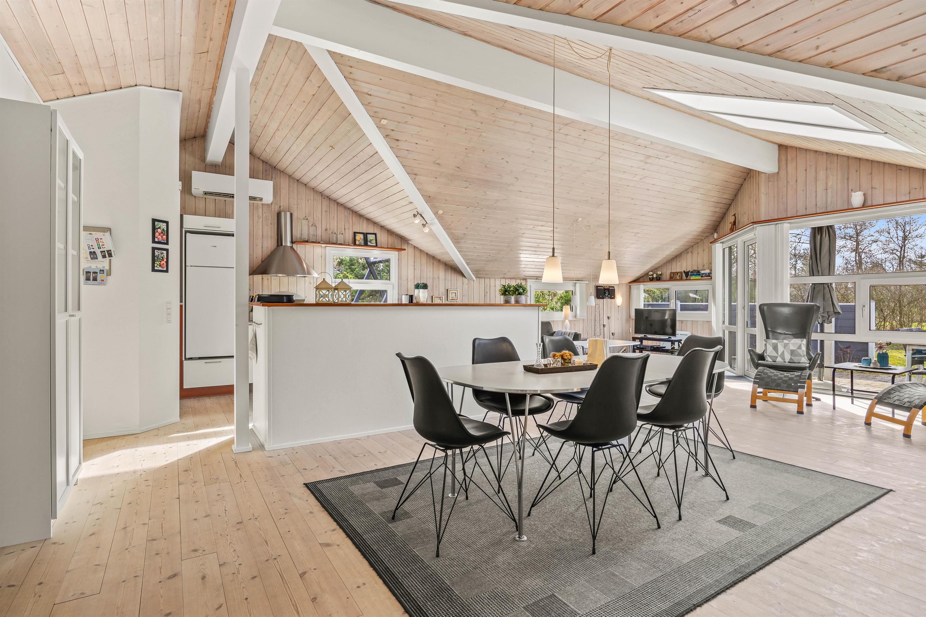 Der er plads til 6 personer i dette skønne sommerhus, og der kan oven i købet medbringes helt op til 2 hunde. Ikke kun de store vinduesfronter i stuen, men også tagvinduerne slipper der masser af lys ind, som får rummet til at virke både større, lysere og endnu venligere.