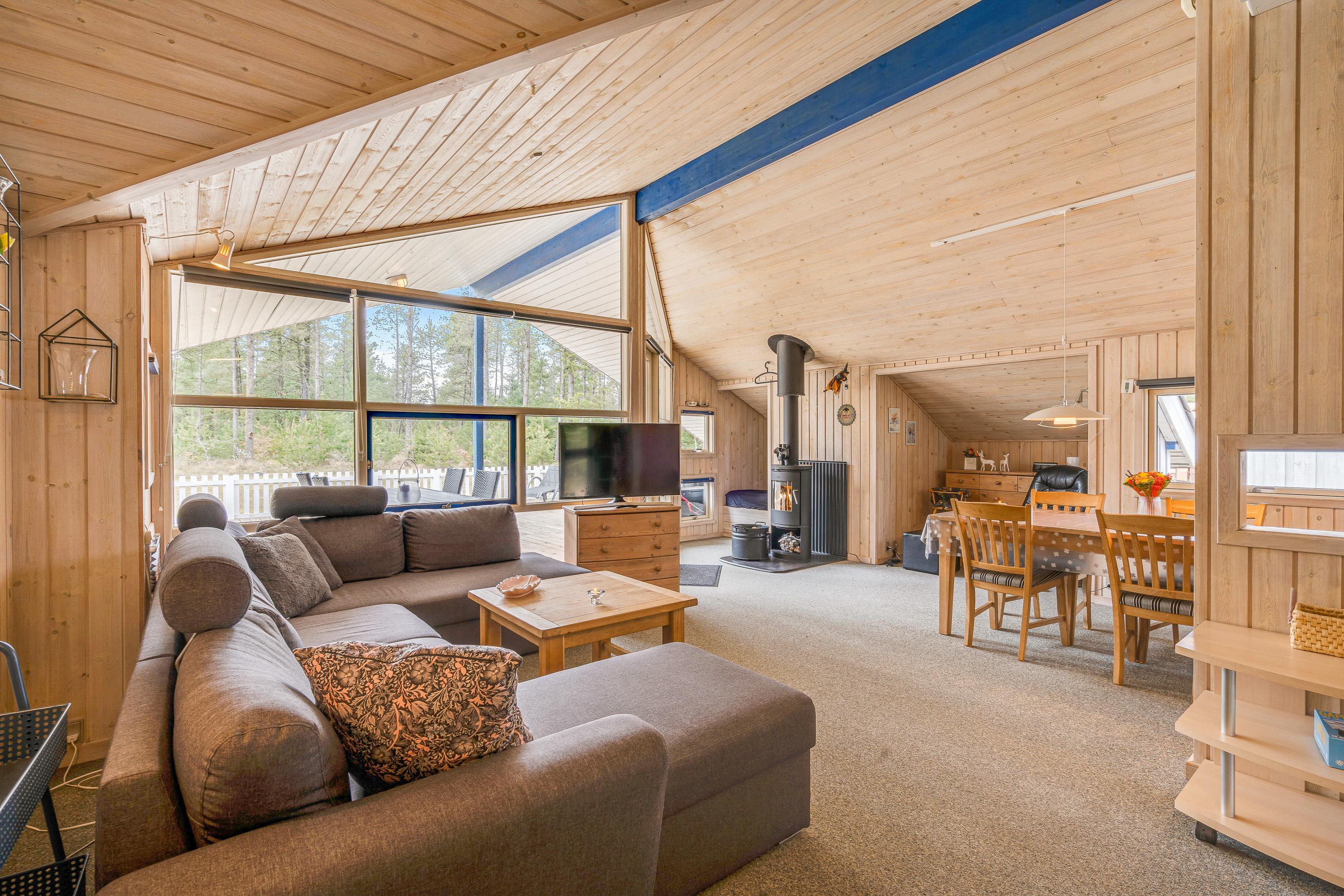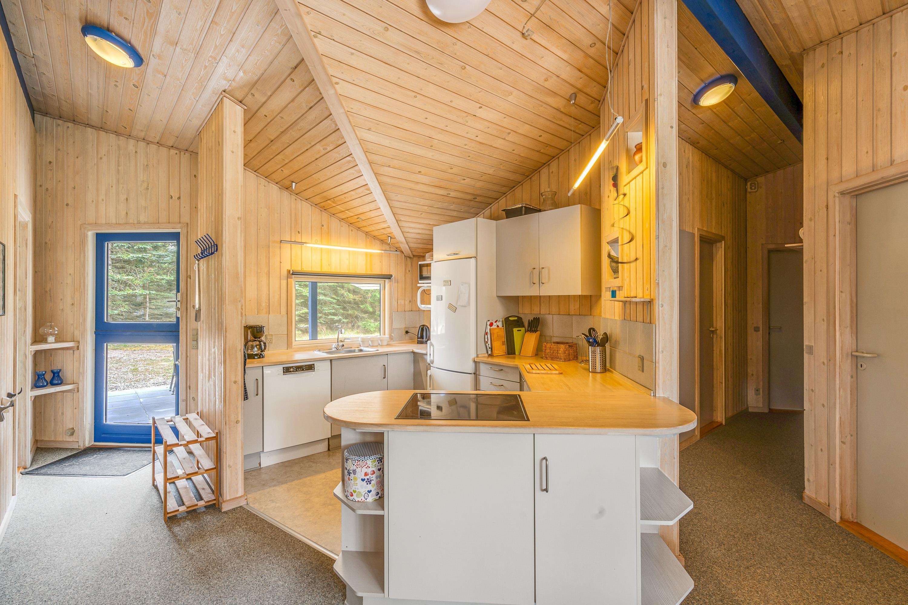 Samlingspunktet og hjertet i feriehuset er alrummet, hvor køkken, stue og spiseplads ligger i åben forbindelse, og hvor I kan samle hele ferieflokken til hyggelige feriestunder med lækker mad, sjove spil og gode film. Alt imens I hygger jer i alrummet, fuldender brændeovnen feriestemningen med sin knitren.