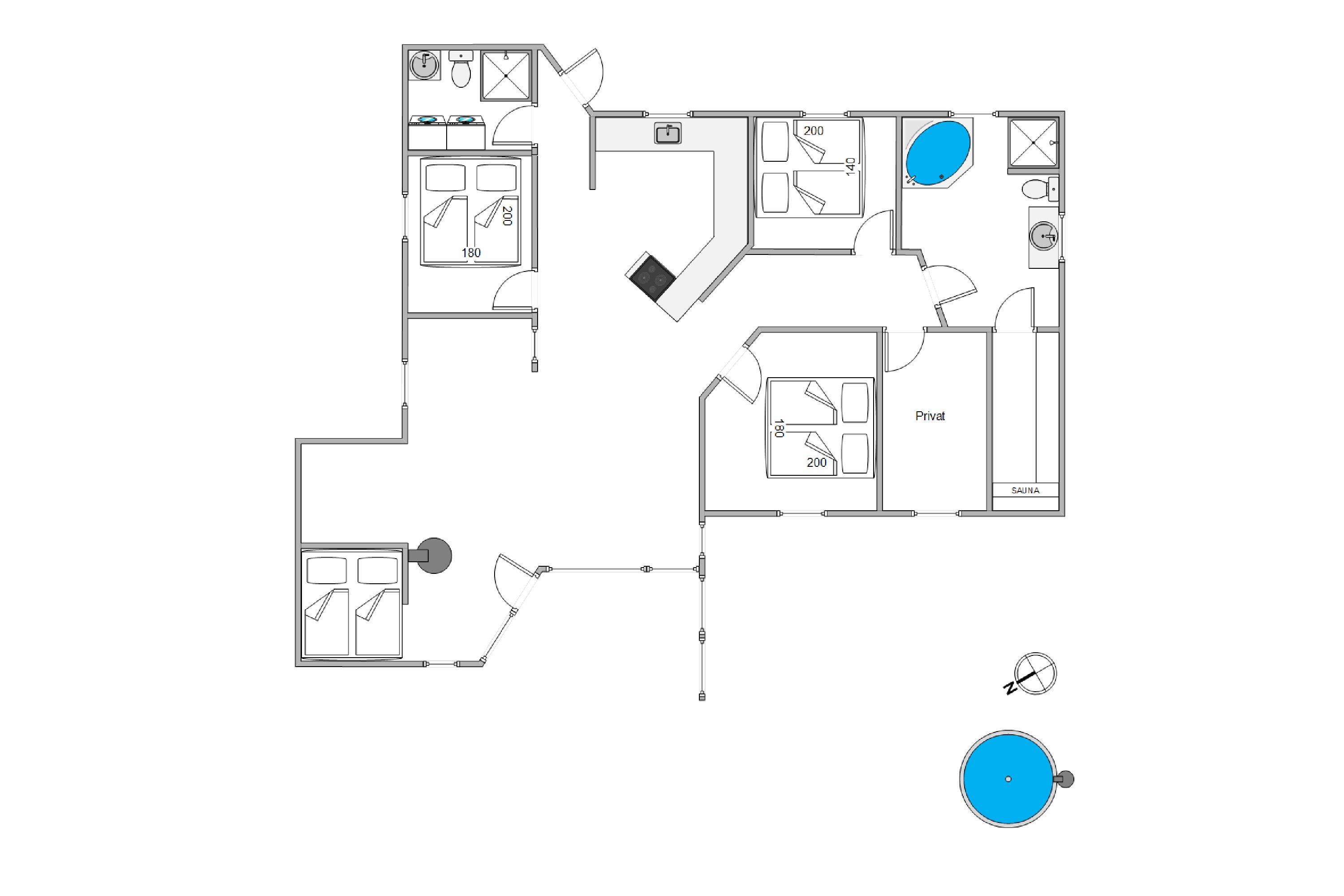 I sommerhuset har I 3 gode soveværelser, der er indrettet med en dobbeltseng hver, som I kan få jeres skønhedssøvn i på ferien, så I kan få samlet ny energi til de kommende feriedage. Med hele 2 badeværelser med gulvvarme slipper I for kø og kolde tæer fra morgenstunden.