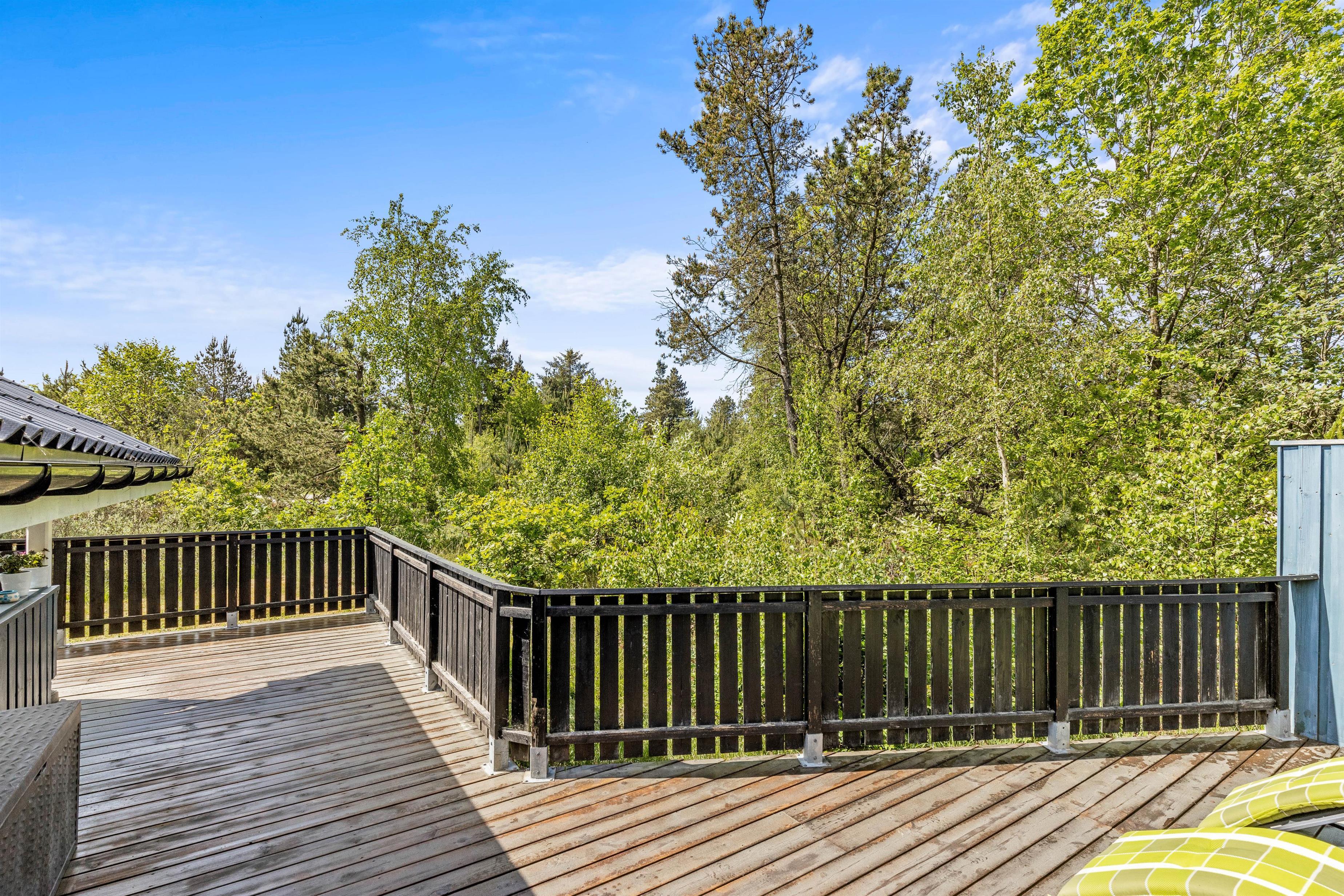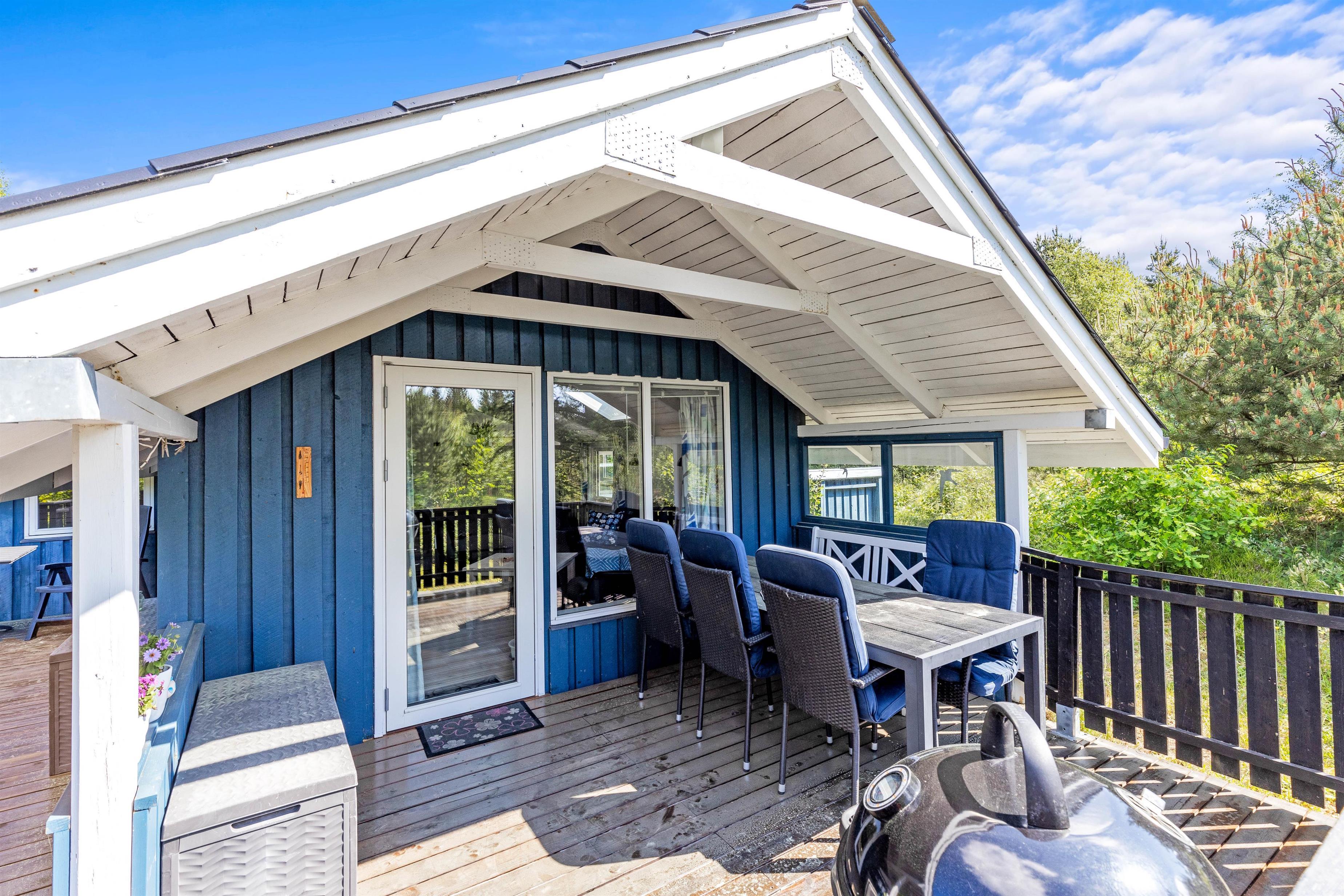 Sommerhuset ligger på en 1836 kvadratmeter stor naturgrund, hvilket jeres hunde formentlig vil elske. Den store terrasse er lukket, så hverken børn eller hunde stikker af og går på eventyr på egen hånd. Her er der både mulighed for at sidde under den åbne himmel, eller under den afskærmede og overdækkede del af terrassen, så I kan nyde havemøblerne og holde grillaften, selvom det skulle dryppe lidt.