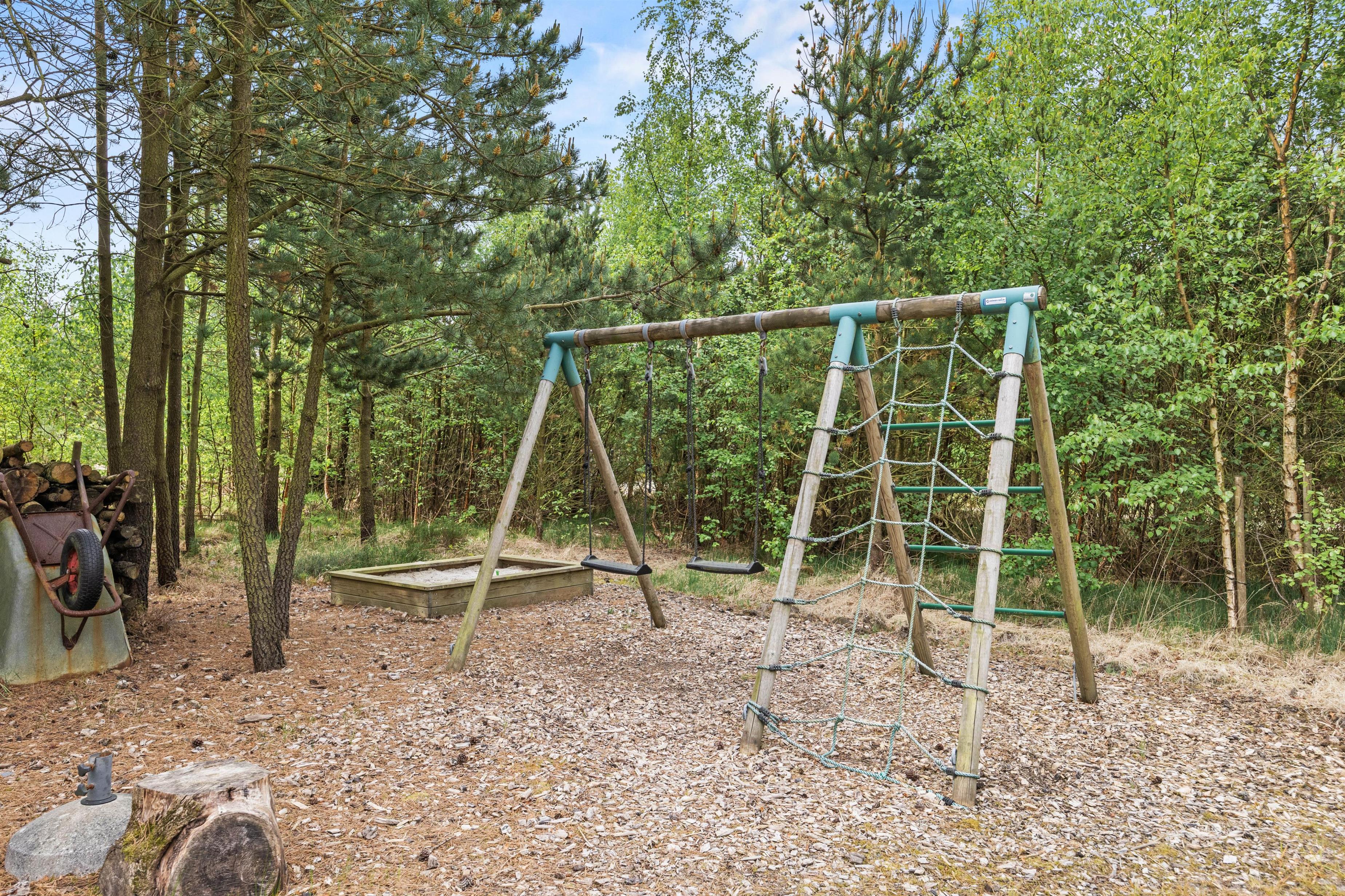 Udemiljøet ved sommerhuset er skabt til både leg og afslapning for alle aldre. På det rummelige grundareal på 1266 m² er der masser af plads til udendørs aktiviteter og hygge. For de mindste er der en sandkasse, fodboldmål og en gynge, hvor de kan lade fantasien få frit løb.
