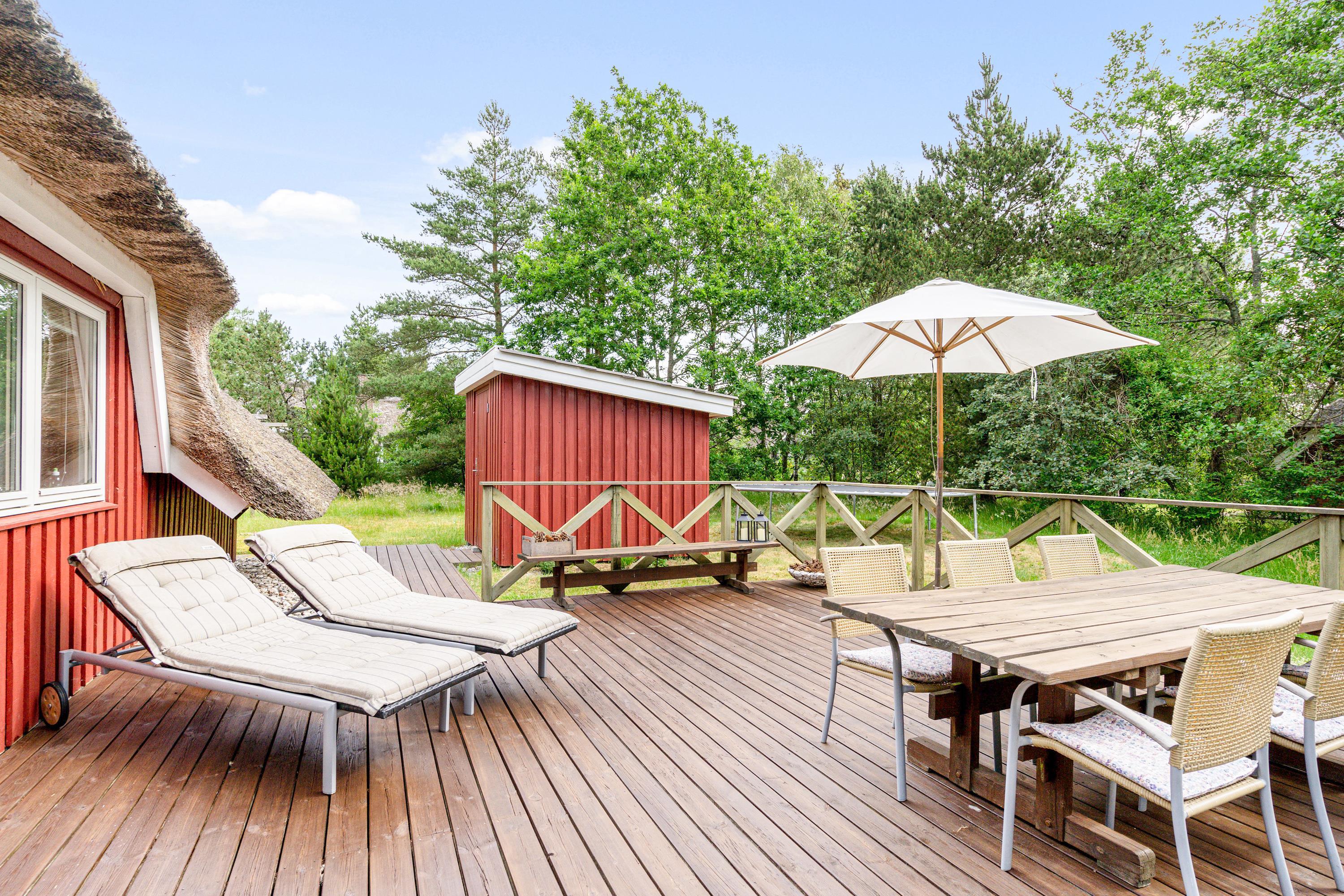 Hyggeligt hus med fantastiske terrasser, vildmarksbad og udendørs bruser