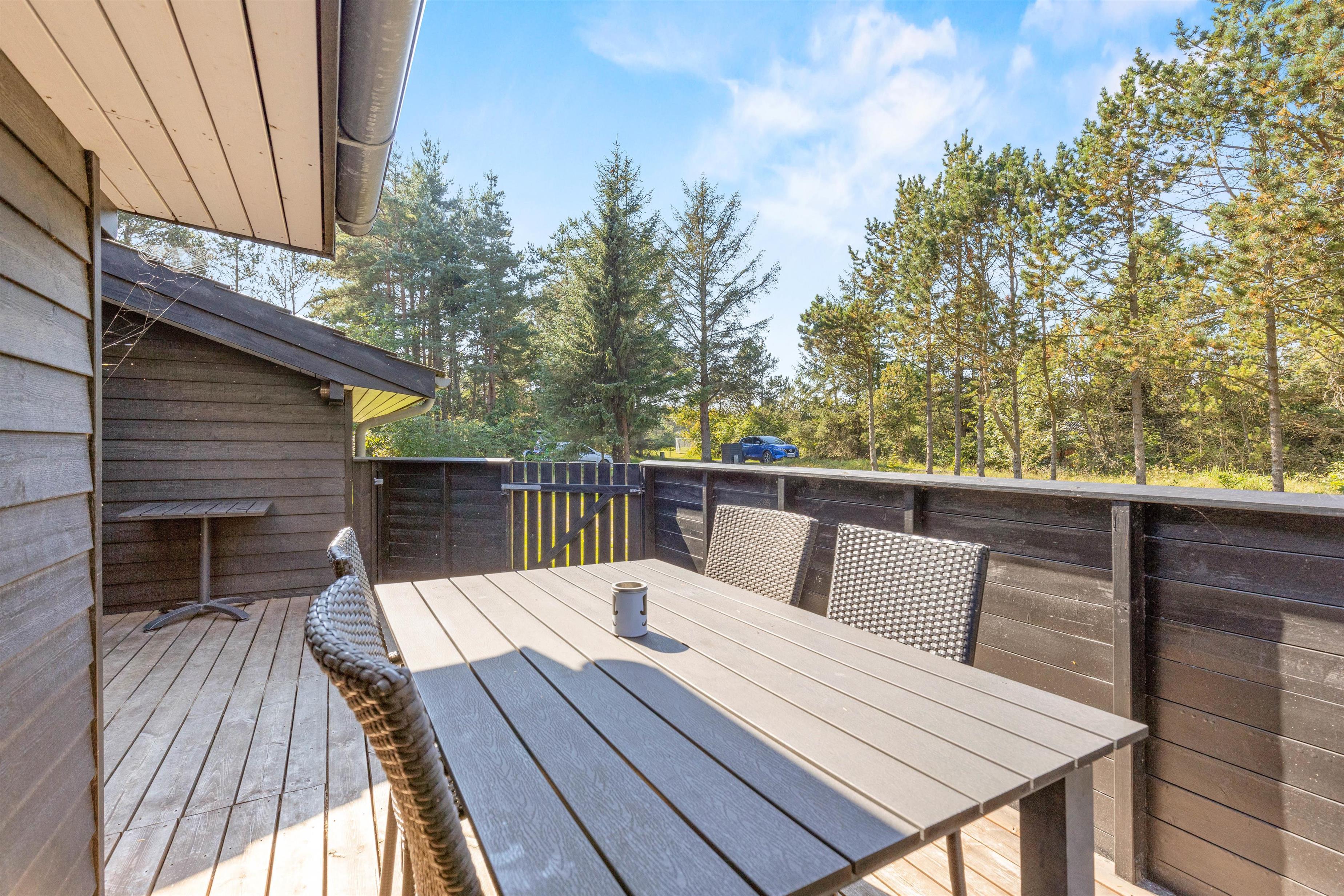 Med tanke på virkeligt at alle skal kunne slappe af er terrassen på V. Hennebysvej 15 lukket. Det giver småbørnsforældre og hundeejeren en ekstra frihed til, helt uden bekymringer, at kunne lægge sig til rette på terrassens liggestole, de små løber ingen steder imens. Den store grund indbyder til masser af leg og spil, så ingen behøver kede sig. Når dagen så går på hæld, kan I tænde op i grillen og nyde solens sidste stråler lade dagen gå revy og lægge planer for morgendagens ferieoplevelser.