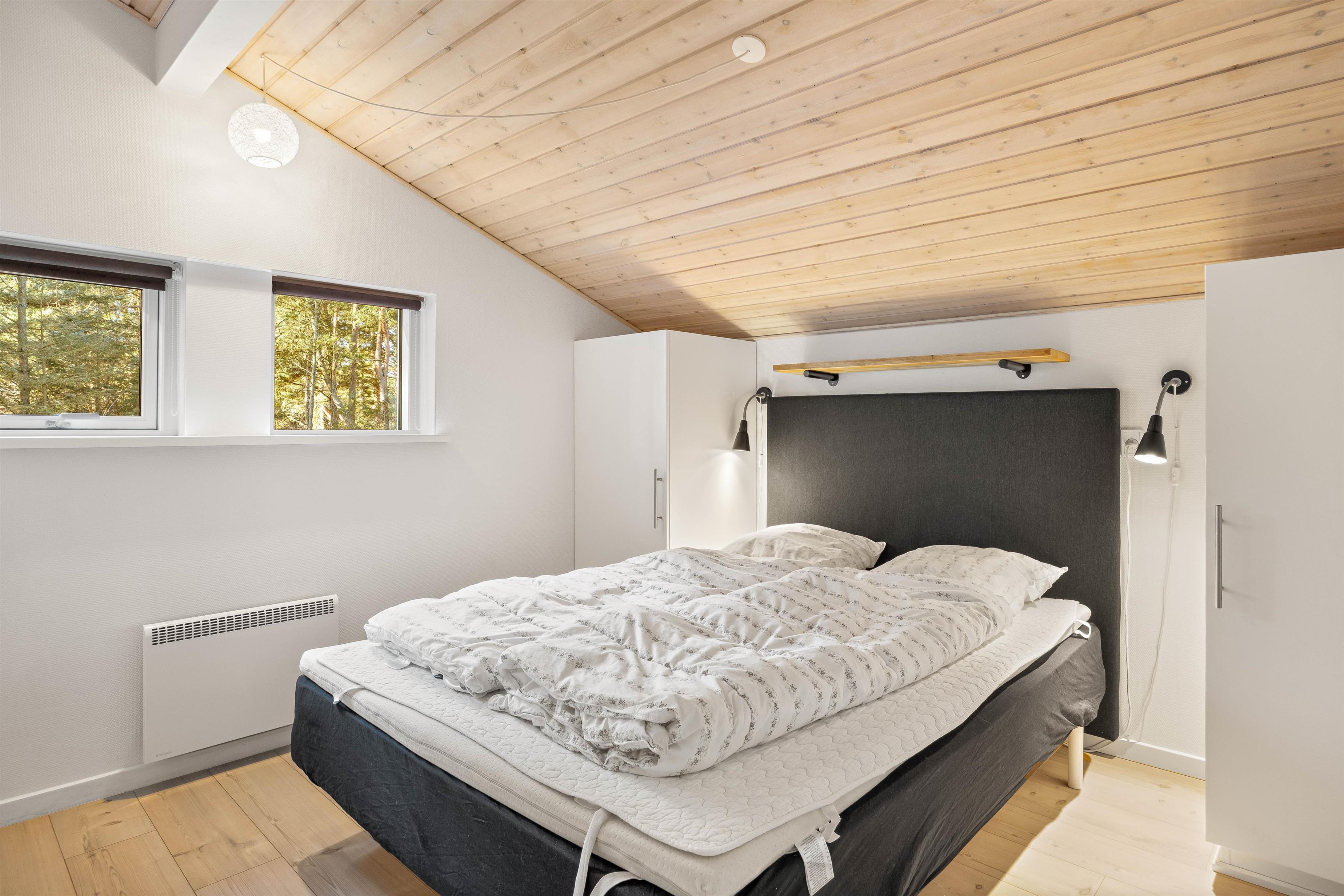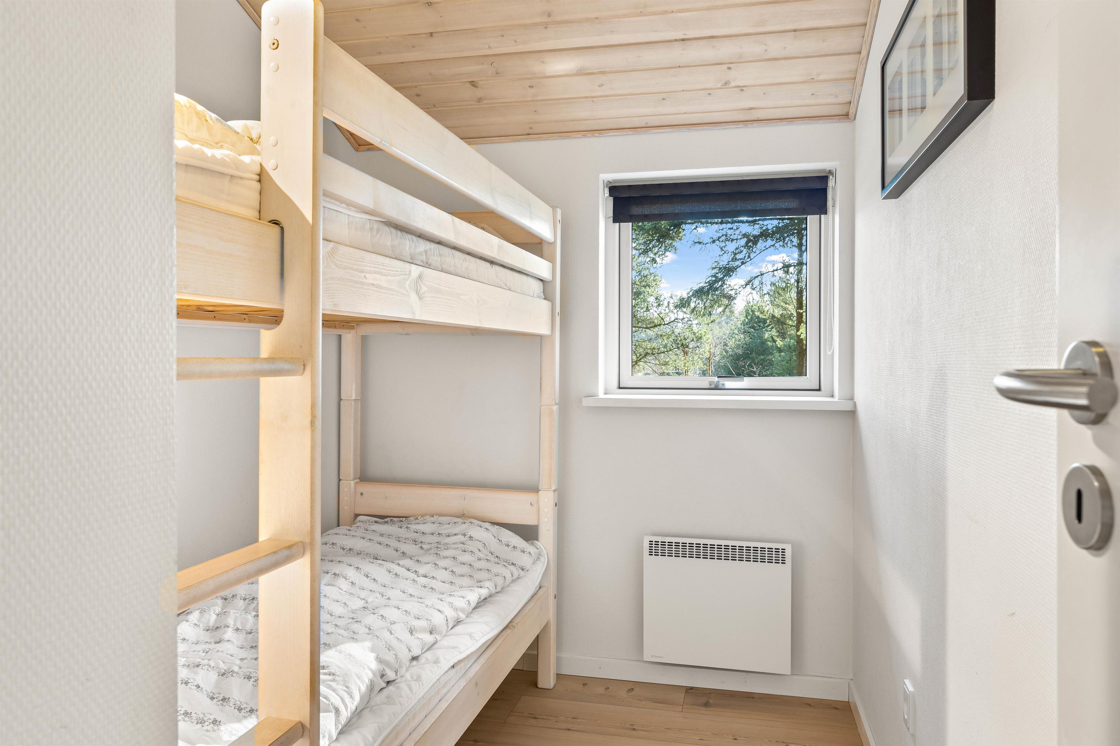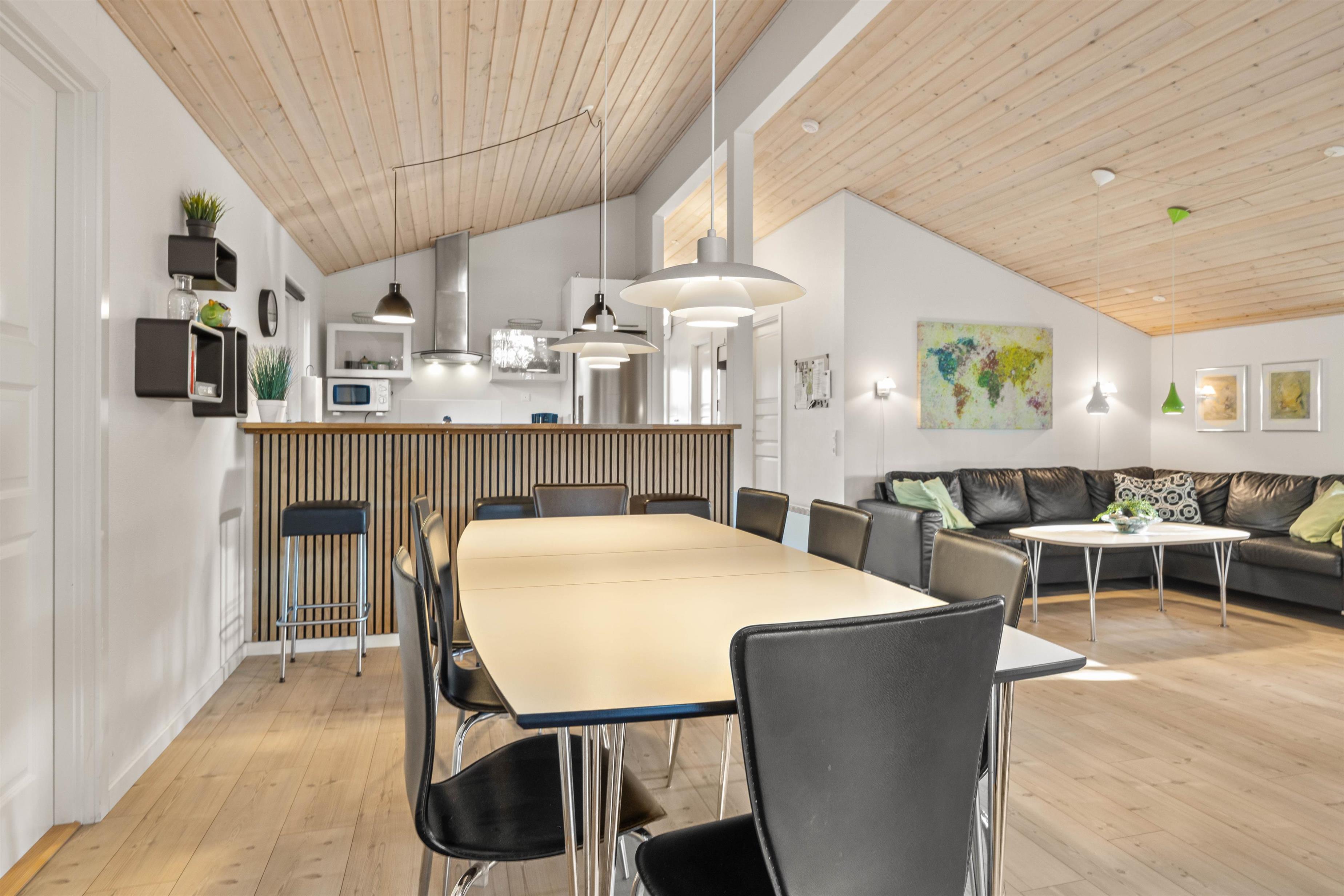 Her er det dømt rigtig ferie til 8 personer og op til 2 hunde. I 2 af soverummene er der gode dobbeltsenge, 1 soverum har enkeltsenge og det sidste er et rigtigt feriehygge-børneværelse med køjeseng. Huset er lyst, moderne og lækkert indrettet. I det veludstyrede køkken kan I sammen tilberede lækre måltider. Det er naturligvis åbent ud til stuealrummet så alle kan være sammen og hjælpe hinanden med borddækning osv.. En brændeovn afrunder billedet af ægte feriehushygge.