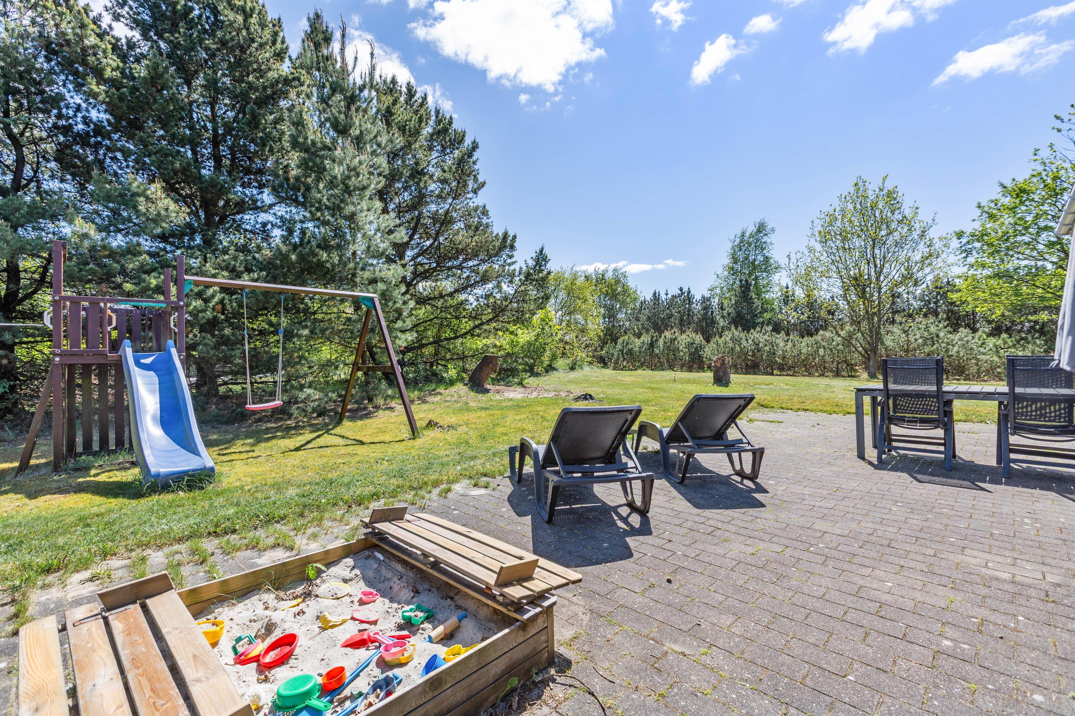 Den store græsplæne er god til leg, og her kan de aktive samles om et spil fodbold, mens resten ser på fra terrassen. Til de mindste feriegæster er der sørget for ekstra underholdning i form af en sandkasse i haven.