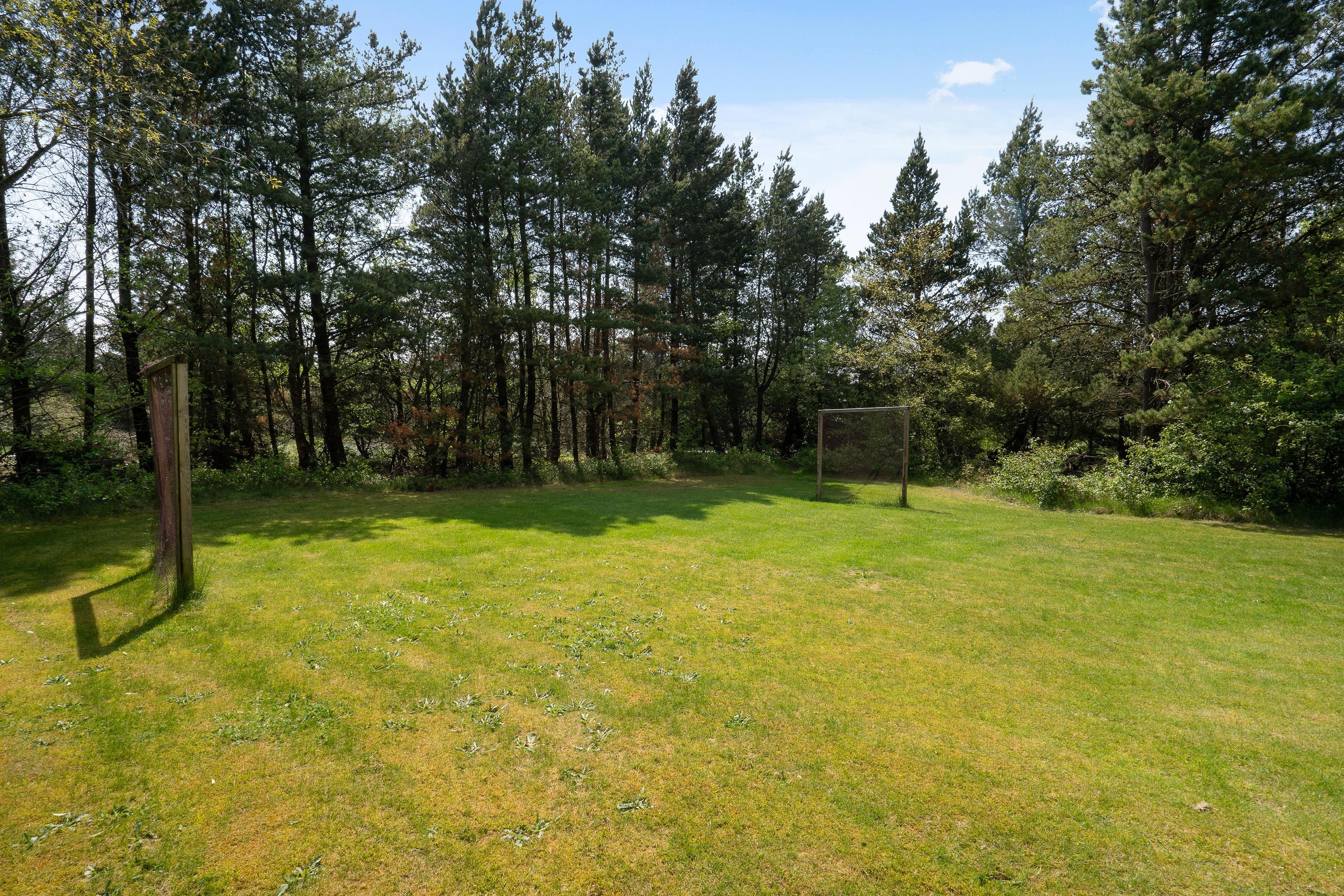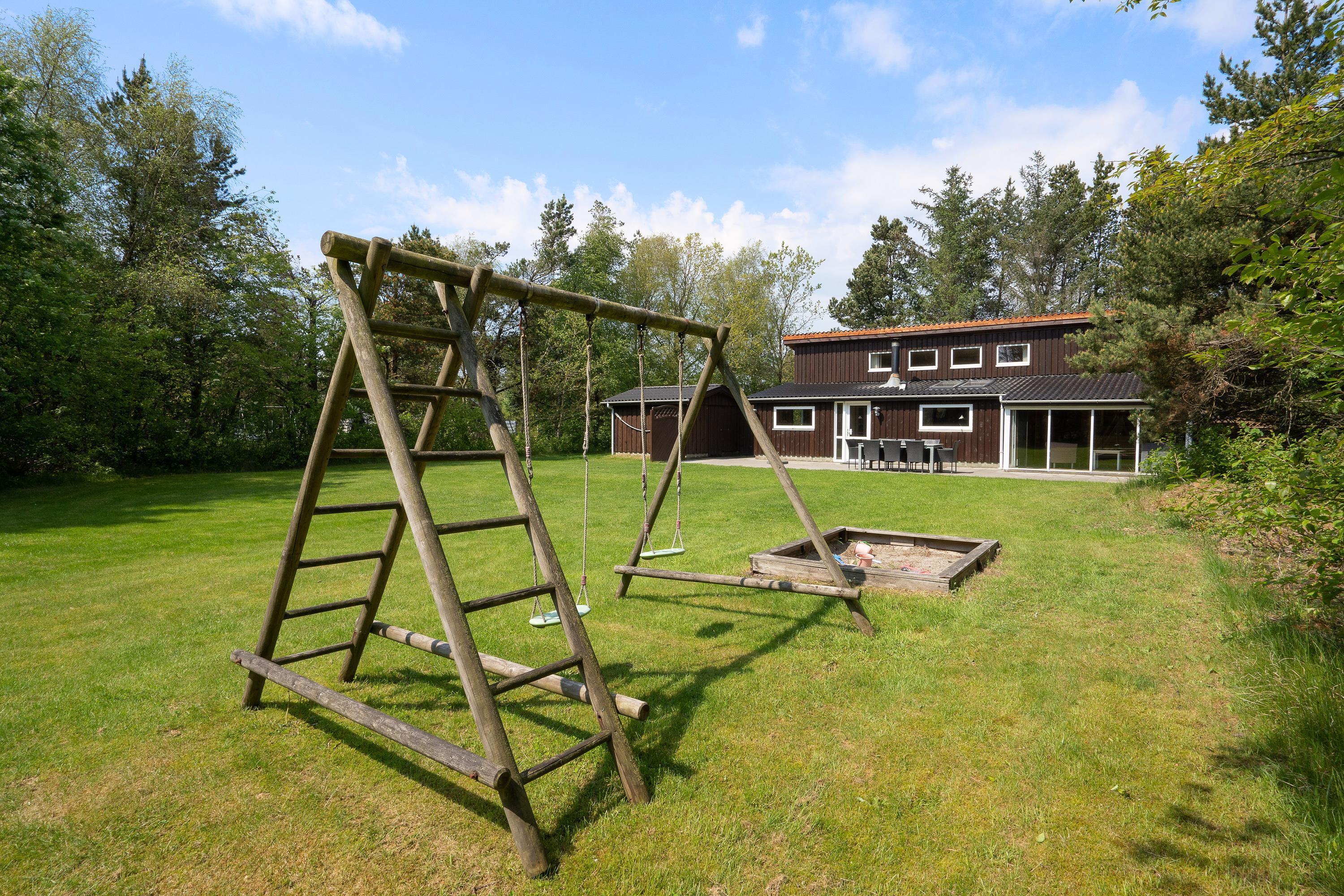 Der er masser af plads til børnenes leg. En stor græsplæne med fodboldmål til boldspil, en sandkasse, gynger og et klatrestativ giver variation til masser af sjov og leg.
