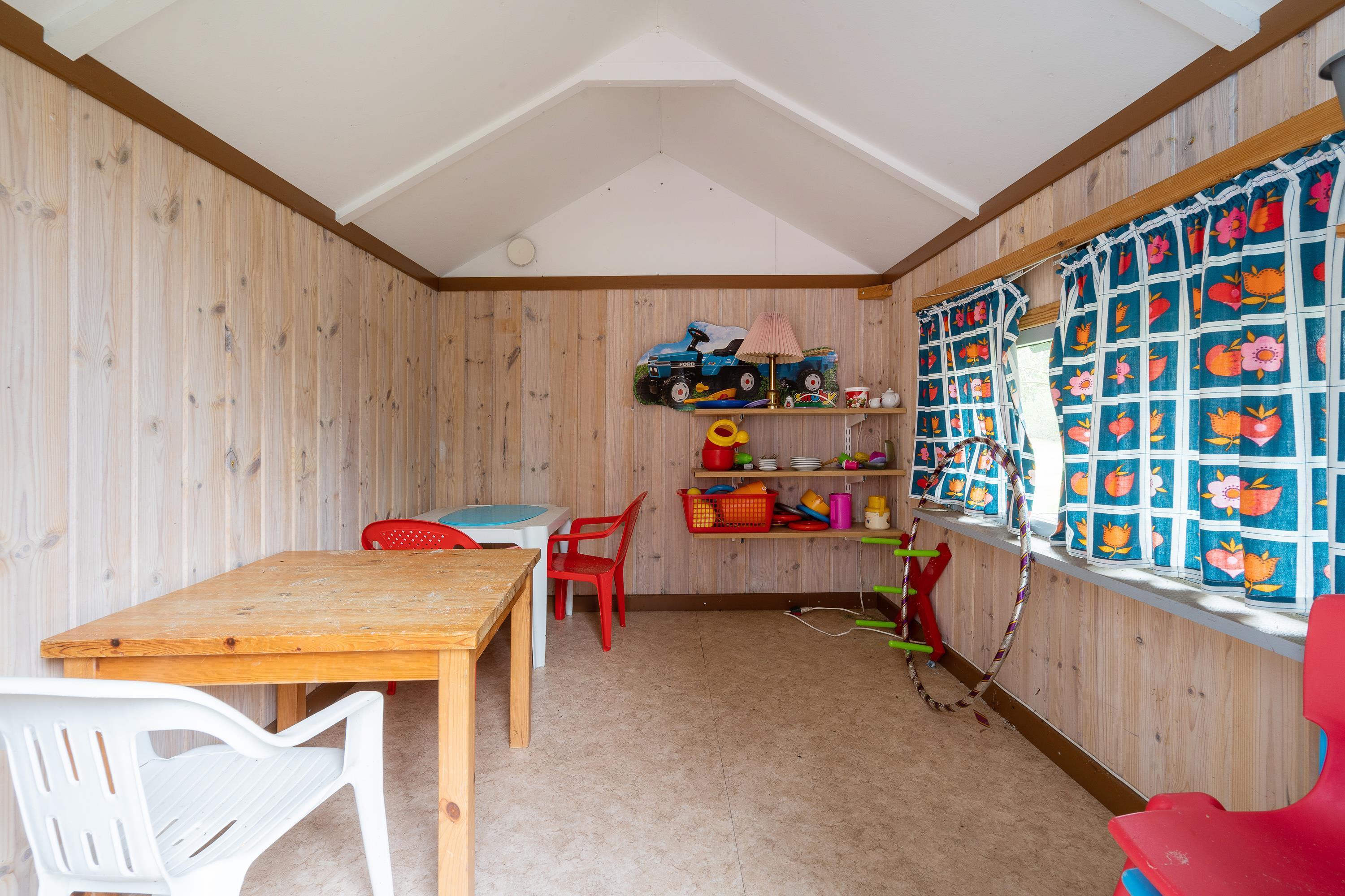 Sommerhuset ligger på en stor og velholdt plænegrund, der er godt afskærmet af høje træer og buskads. Her er der masser af plads til leg og boldspil, og børnene såvel som hunden vil elske at tumle rundt i haven, mens I læser en god bog på terrassen – og hvem ved, måske kan de få lokket jer med til et spil fodbold eller en omgang kongespil i det gode vejr?