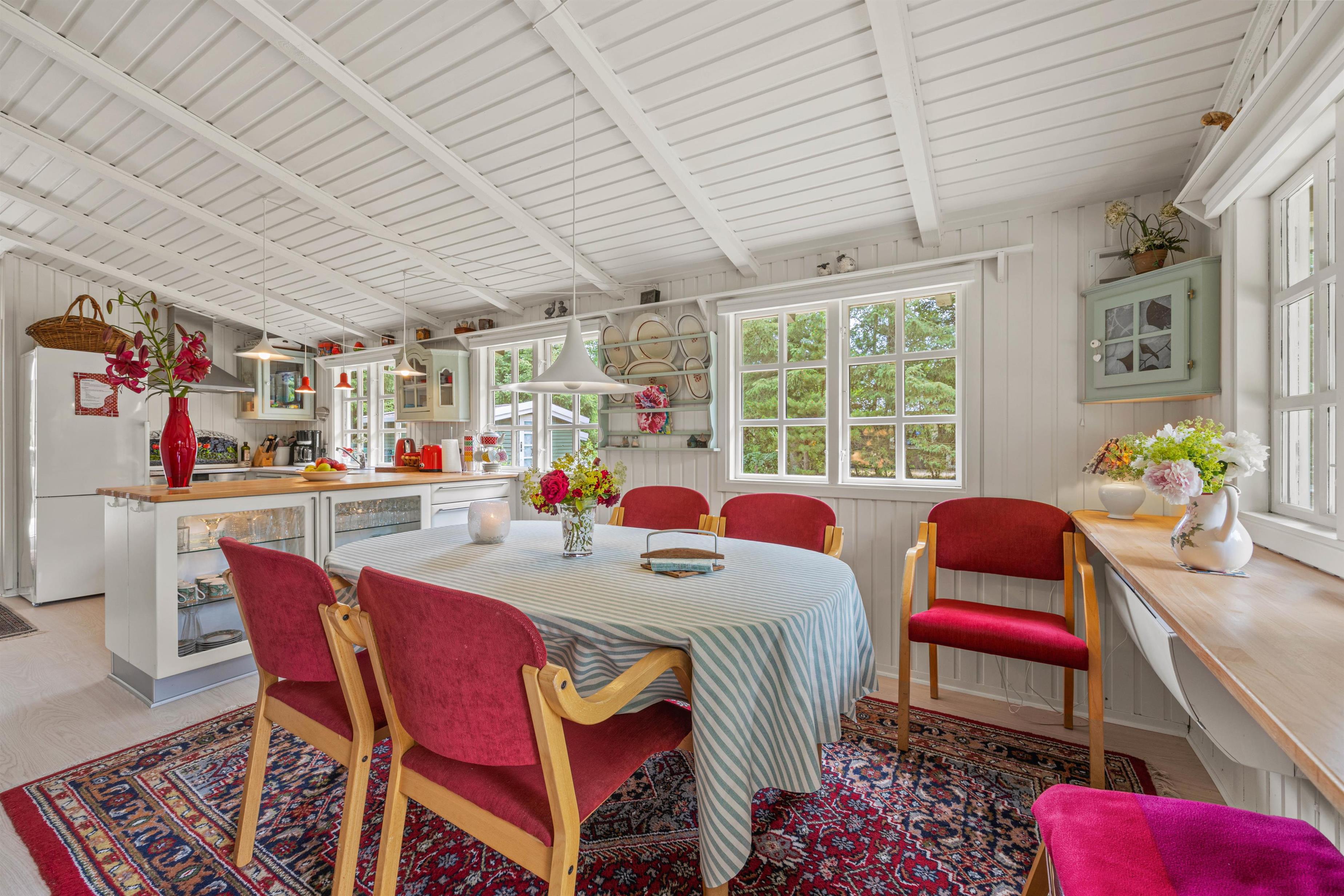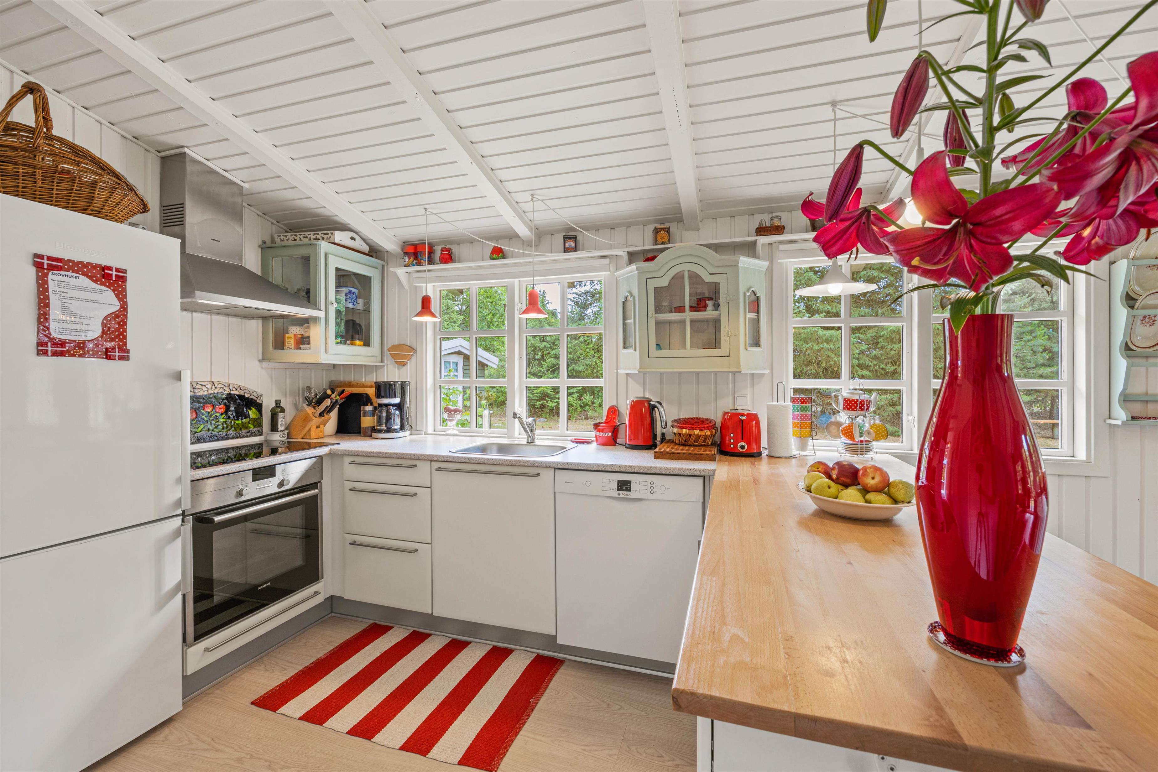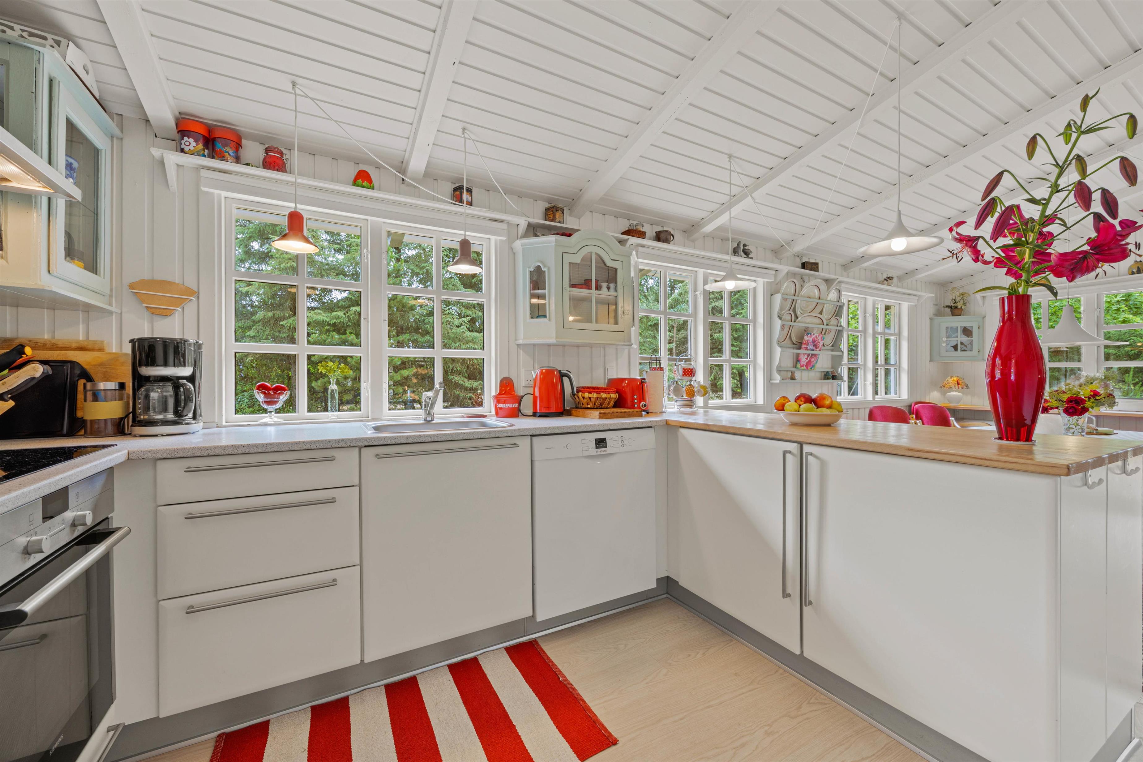 Straks når I træder indenfor i sommerhuset, vil I bemærke den røde tråd, der går igennem entre, køkken, spisestue og stuen. Ferieboligen har utrolig meget sjæl og er flot dekoreret. I 2021 gennemgik sommerhuset en stor renovering, hvilket I bestemt også vil bemærke.