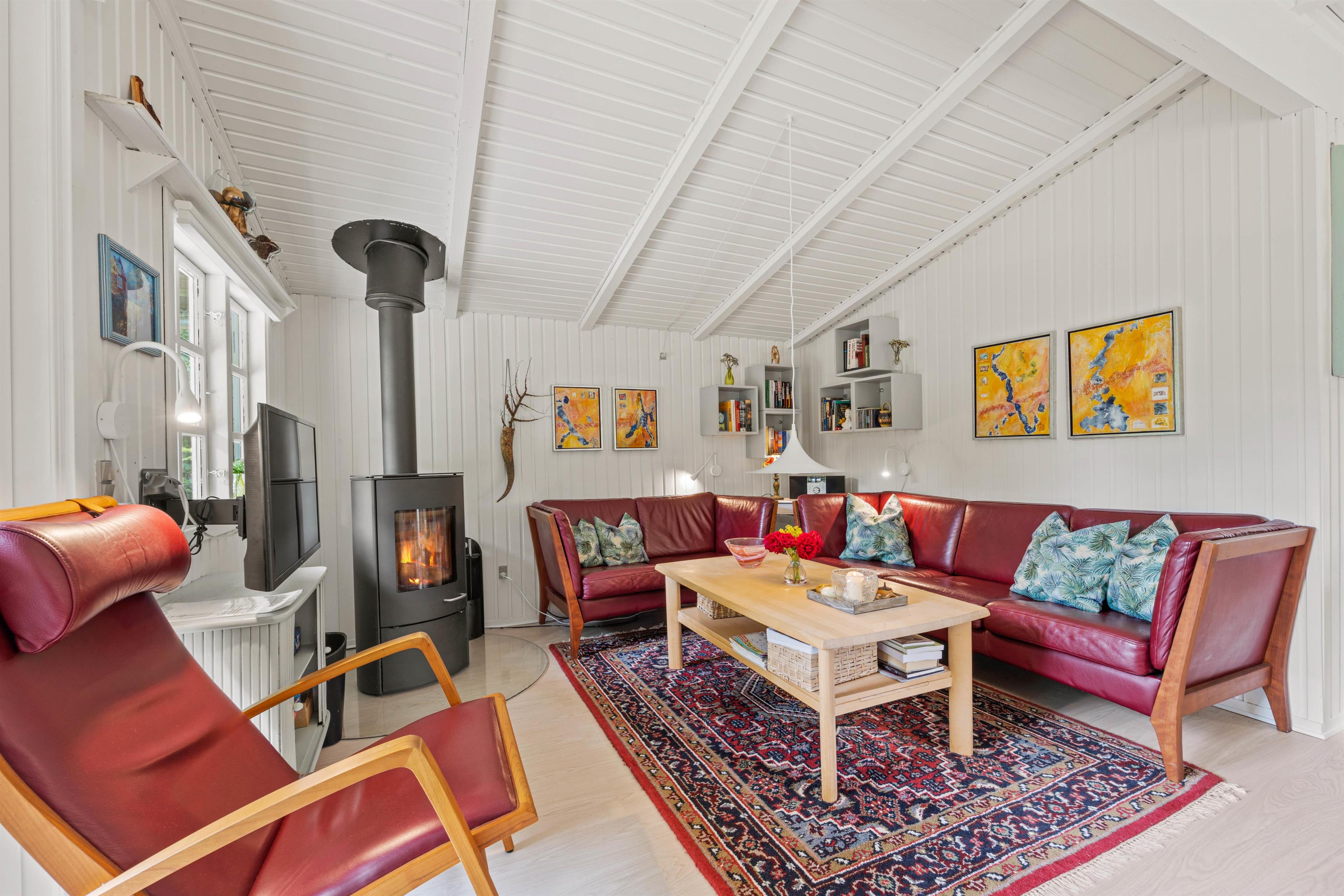 Sommerhuset opvarmes med den energibesparende varmepumpe, der hurtigt og effektivt varmer huset op. Når hyggen lige skal have et ekstra gear, kan I tænde op i brændeovnen og nyde varmen sprede sig, mens I lader jer fortrylle af de dansende flammer.