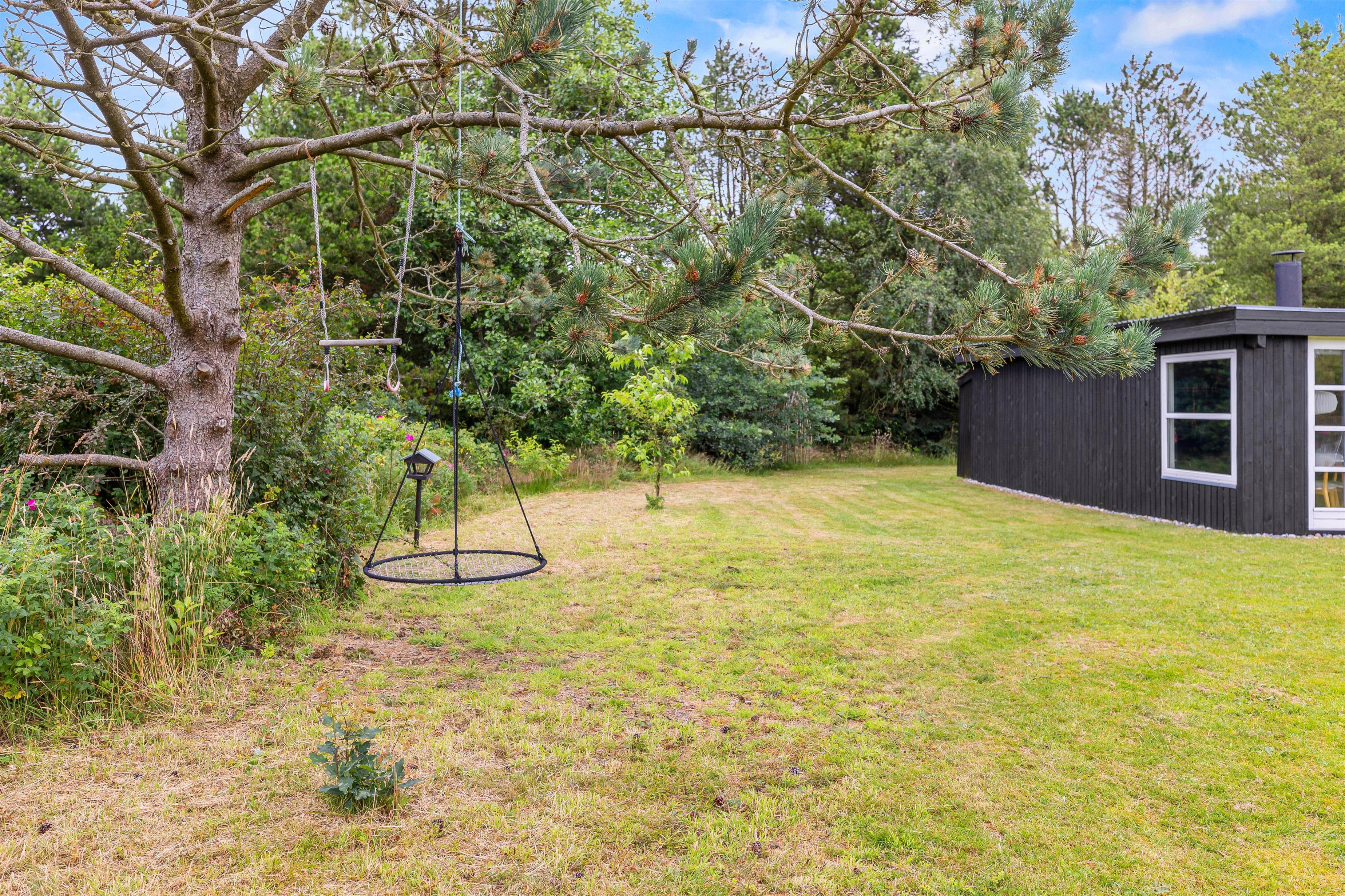 Fra stuen har I direkte udgang til en fin lukket terrasse, ideelt hvis I har mindre børn eller husdyr med. Terrassen er desuden udstyret med liggestole, grill og andre havemøbler. Sommerhuset er omgivet af den 1720 kvadratmeter store plænegrund, der indbyder til leg og aktiviteter under solens stråler. Her kan større børn løbe frit omkring, mens hunden logrer og jagter bolden. I kan også udnytte bålpladsen og riste skumfiduser mens mørket falder på. Og hvis haven ikke er nok, har sommerhuset den perfekte nabo – en stor legeplads!
