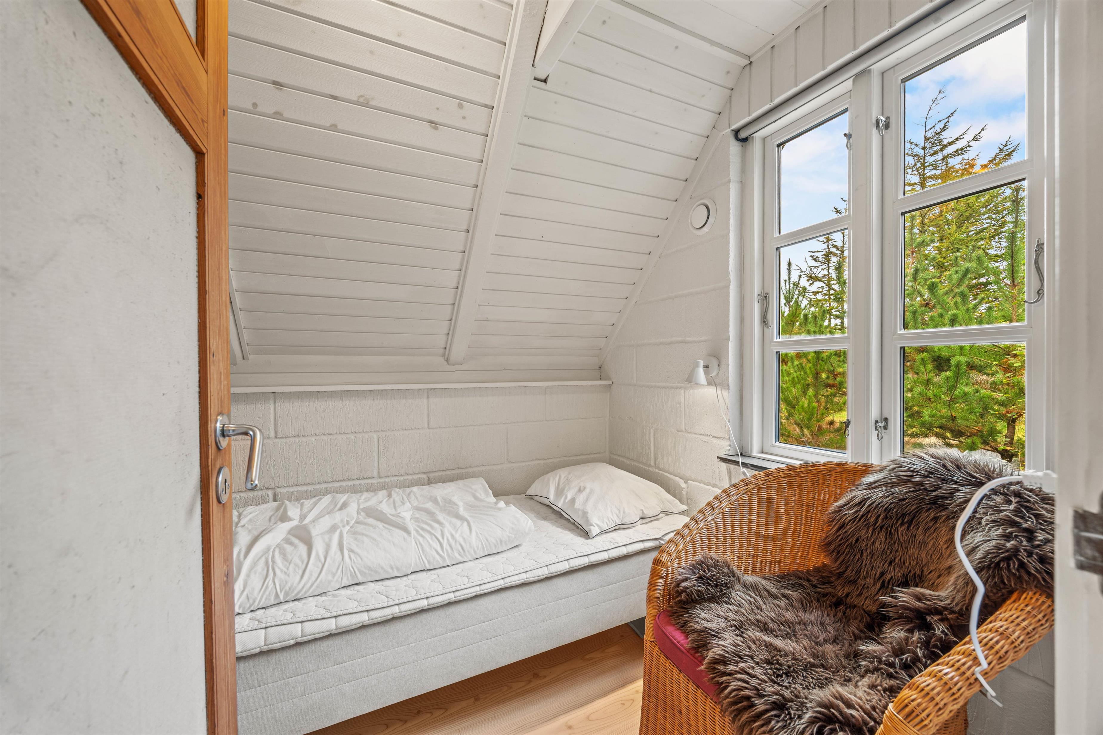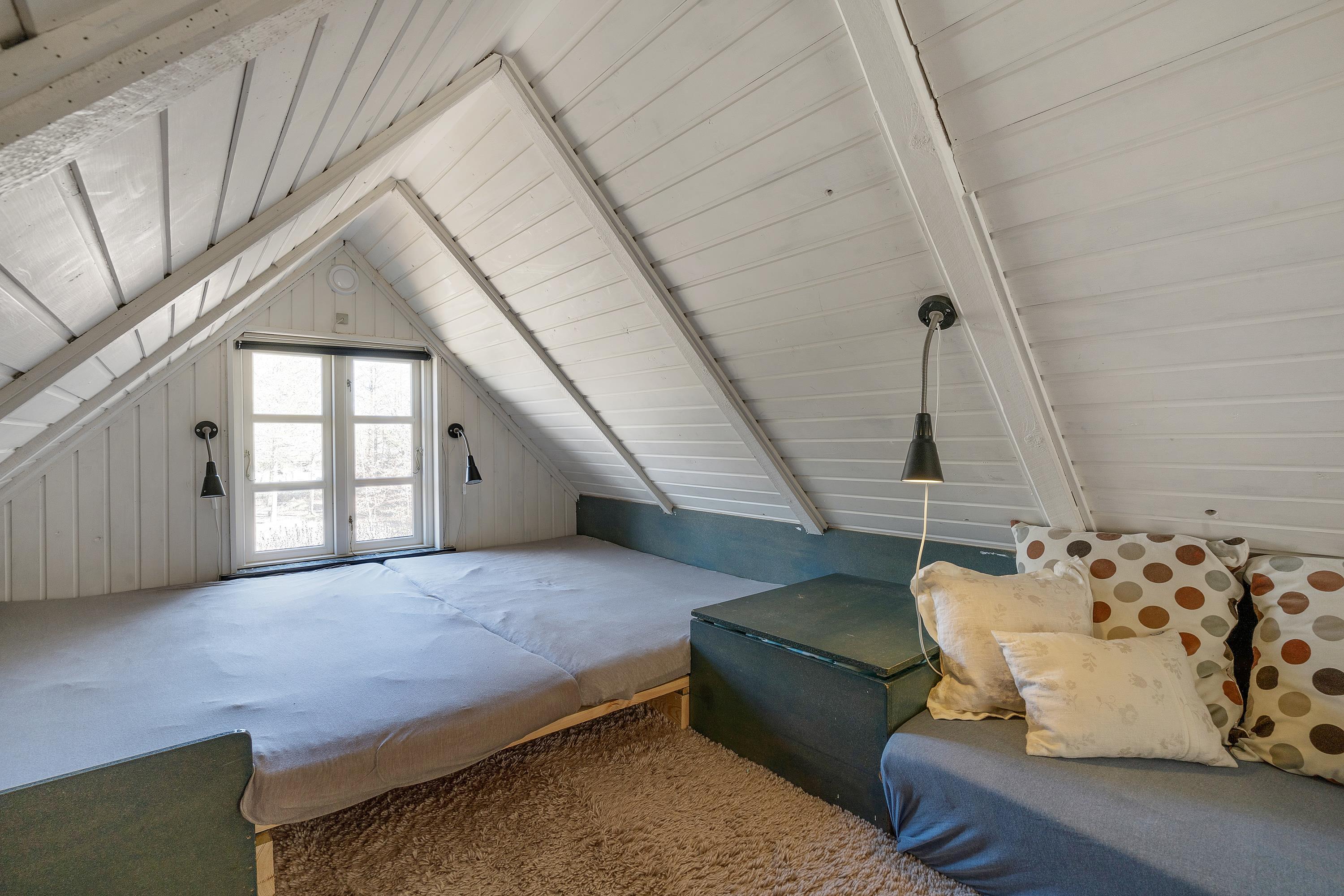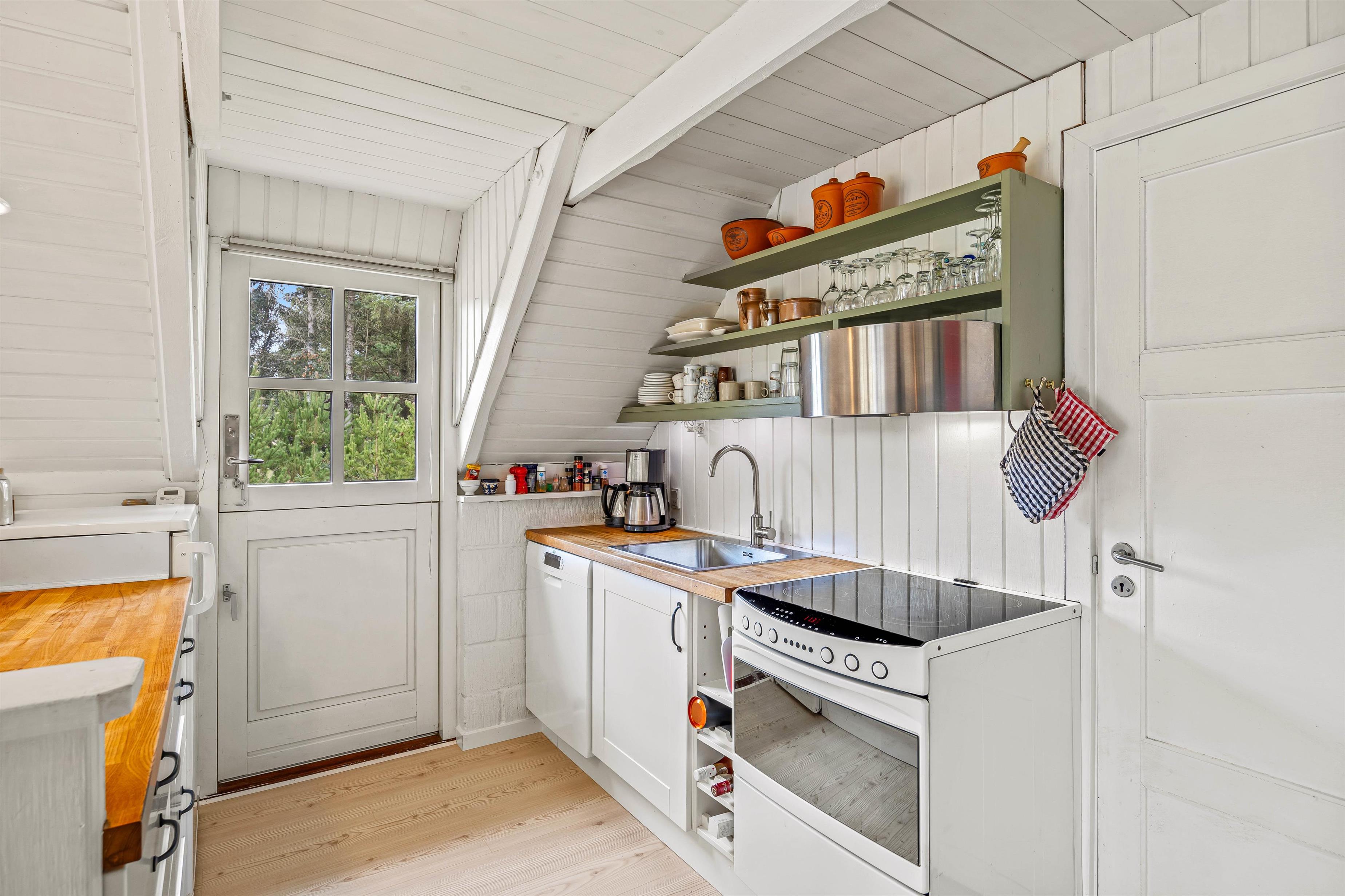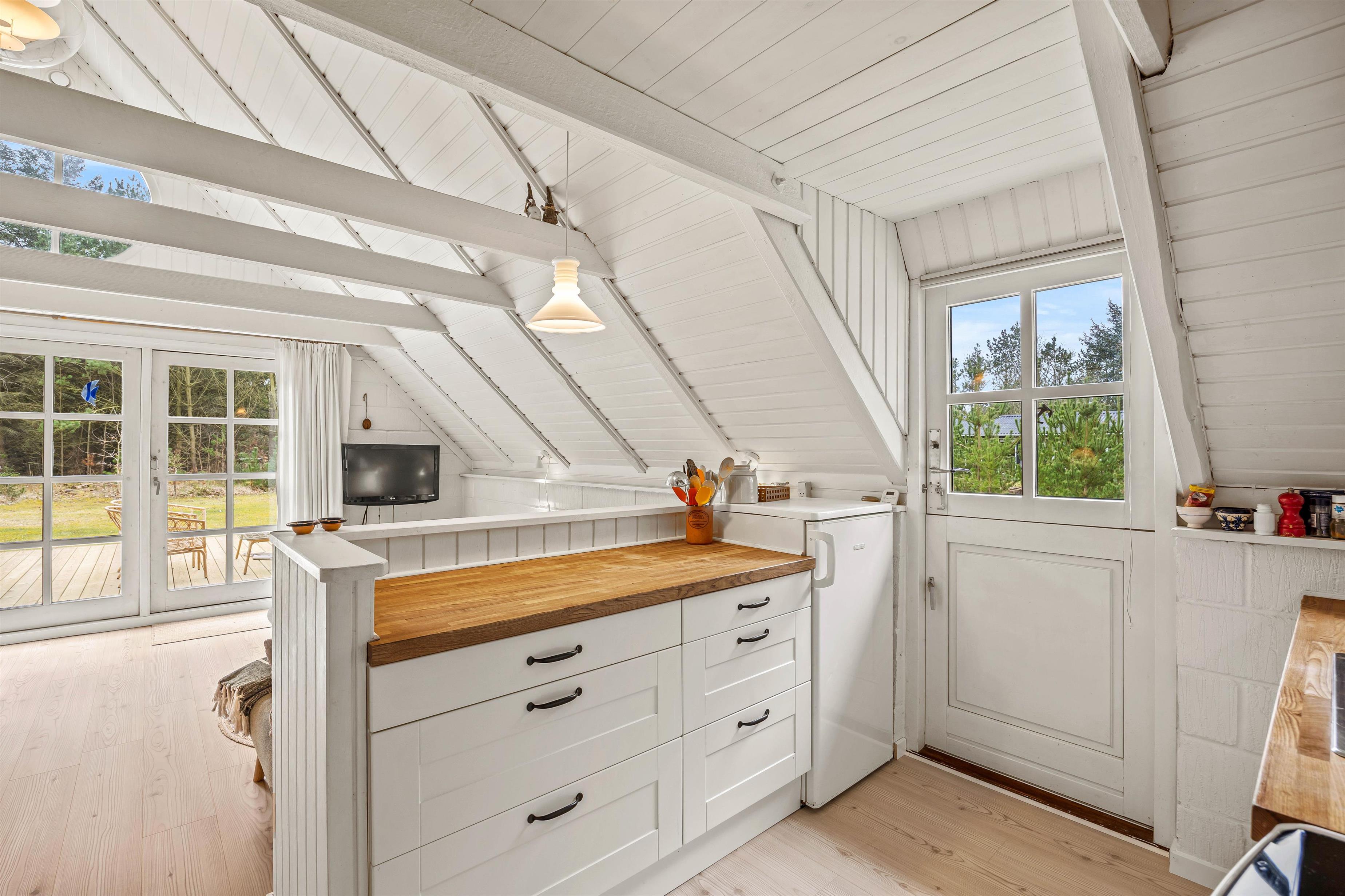 Sommerhuset er hyggeligt indrettet, og det er oplagt til hygge og socialt samvær med familien. Feriehuset har kombineret stue, køkken og spisestue, så hele familien kan være med, når der laves mad, ses film eller spilles brætspil foran brændeovnen. Når børnene skal have fred til at lege, kan de kravle op på sommerhusets hyggelige hems, hvor der er god plads til dem at lege på.