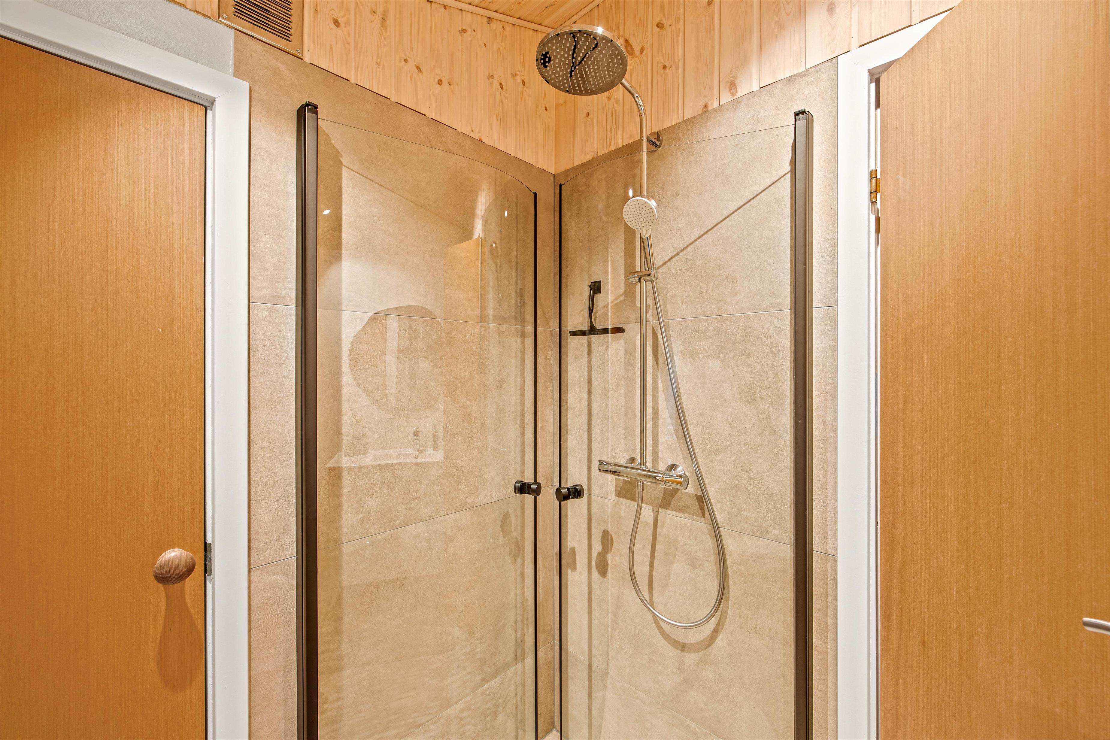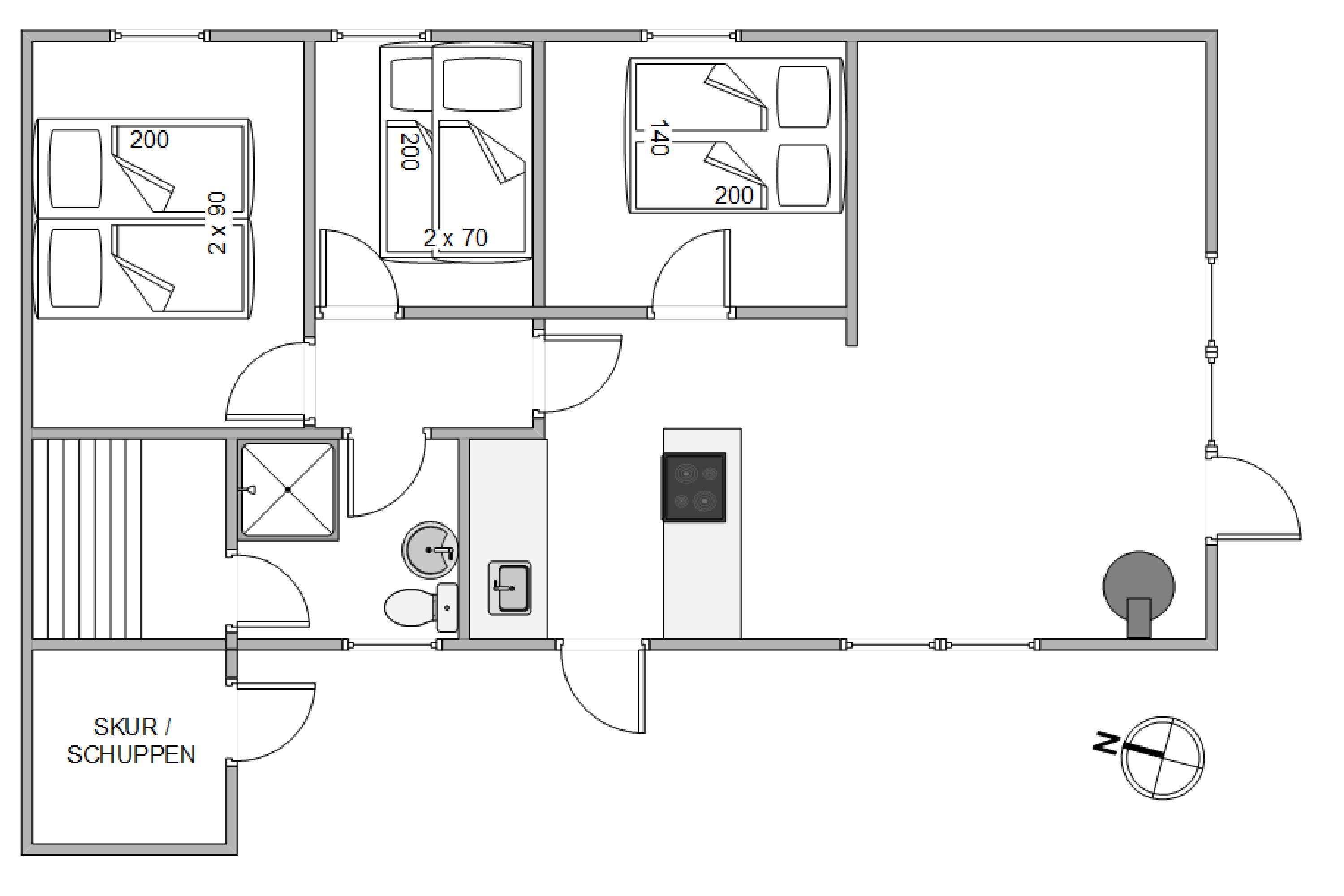 Fra husets hjerte kommer I også ind i de 3 gode soveværelser, hvor I vil få god nattero i de to dobbeltsenge og køjesengen. Man sover ekstra godt efter en afslappende aftentur i saunaen. I det store badeværelse er der desuden også gulvvarme, så I ikke kommer til at fryse fødderne om morgenen.
