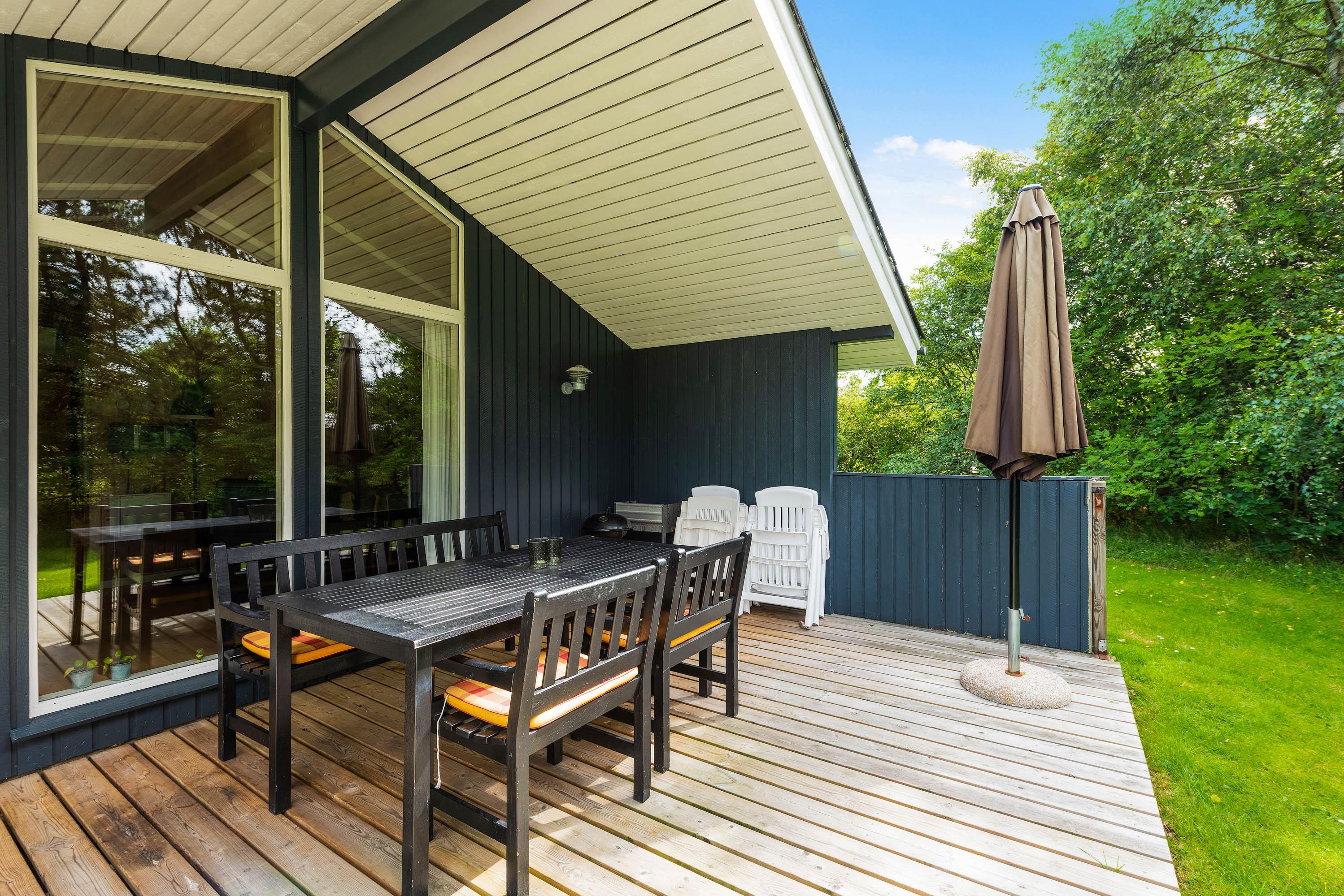 På den private træterrasse kan I slappe af, solbade, læse, lege... På Hedevang 77 har I alle muligheder for udendørsaktiviteter af forskellige kalibre, både for de dovne og aktive feriegæster.