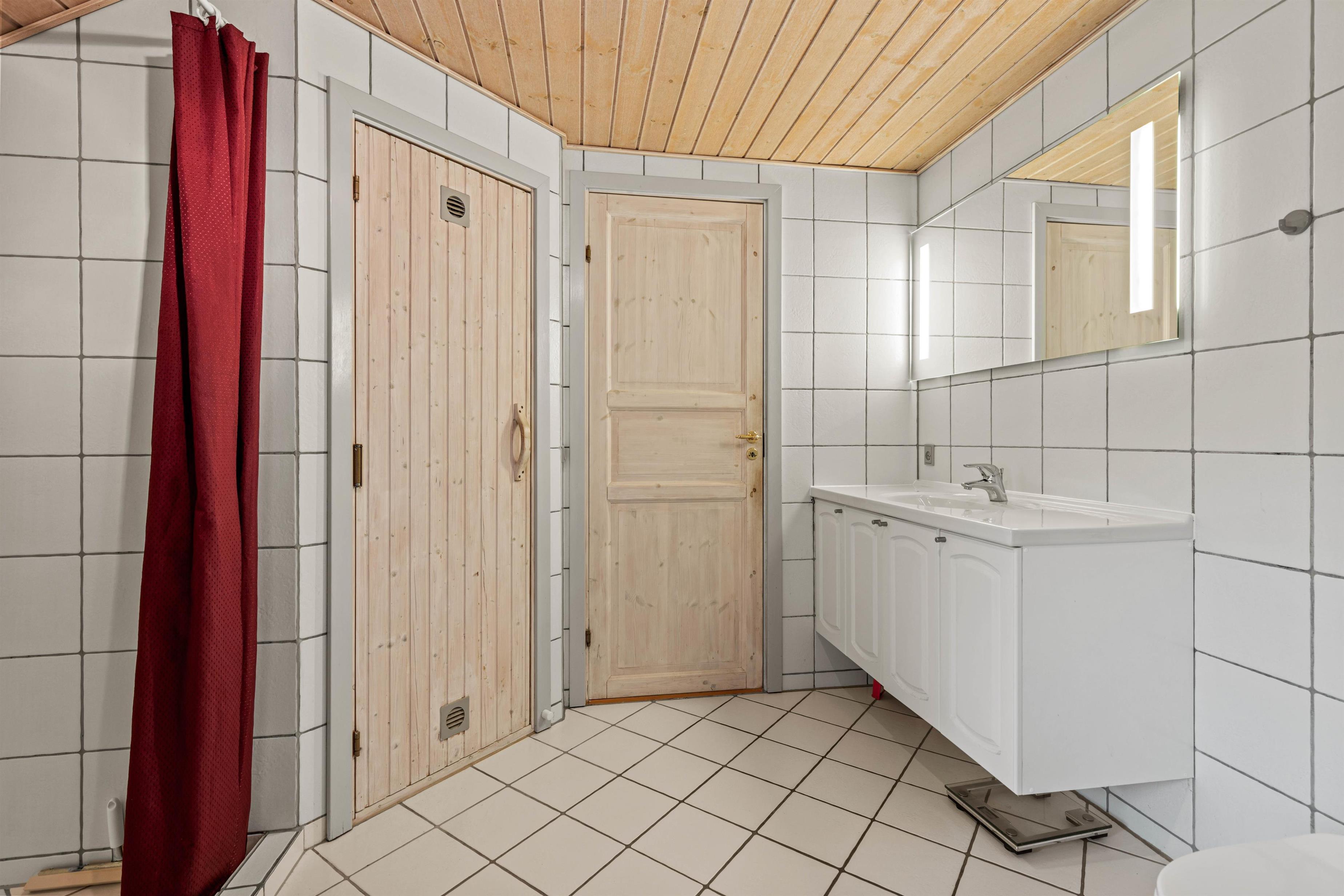 Huset er udstyret med to badeværelser, så I aldrig behøver stå i lange toiletkøer om morgenen. På det største finder I endda et spabad og en sauna, som helt sikkert vil blive et hit blandt alle feriegæsterne efter en lang dag med masser af frisk luft.