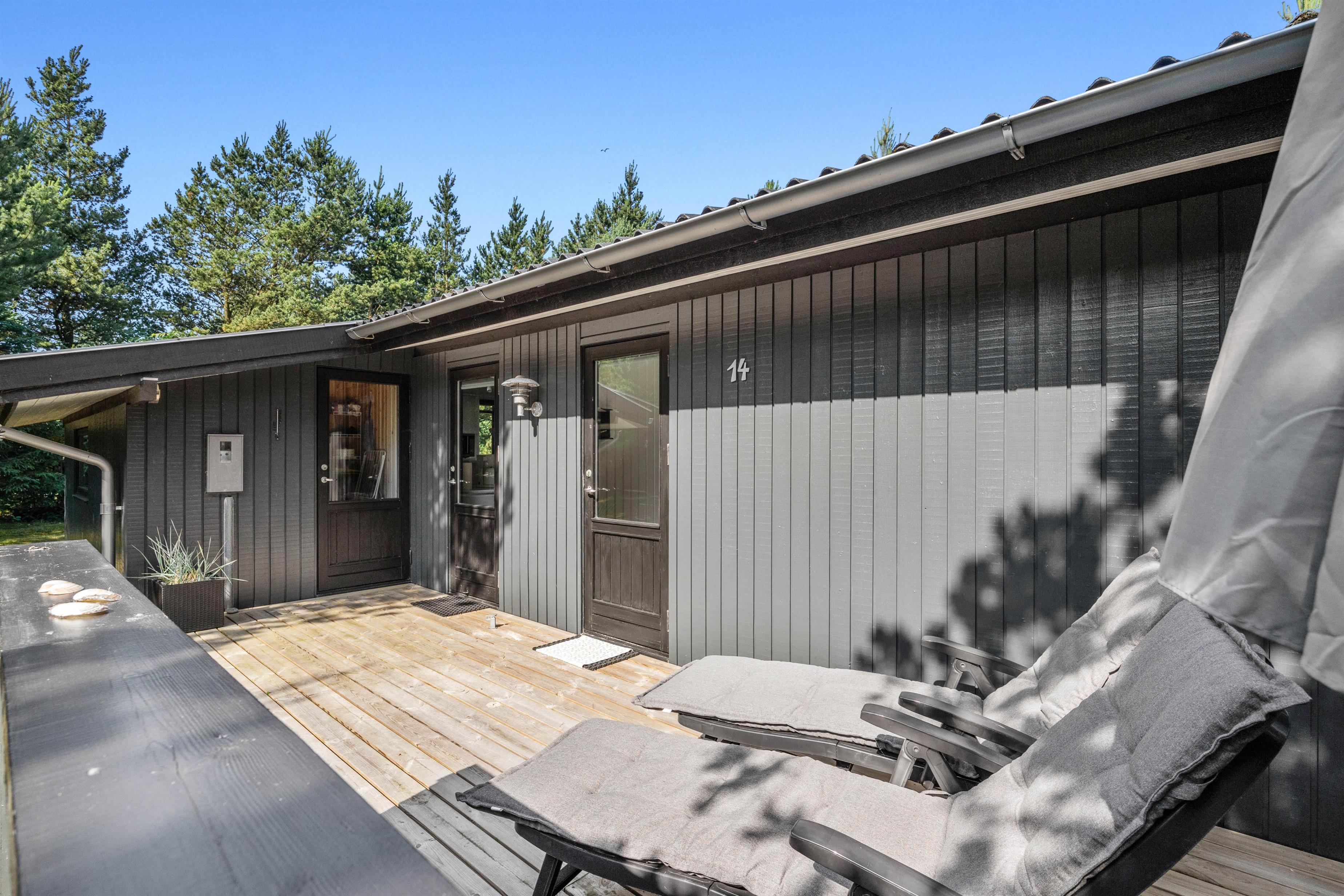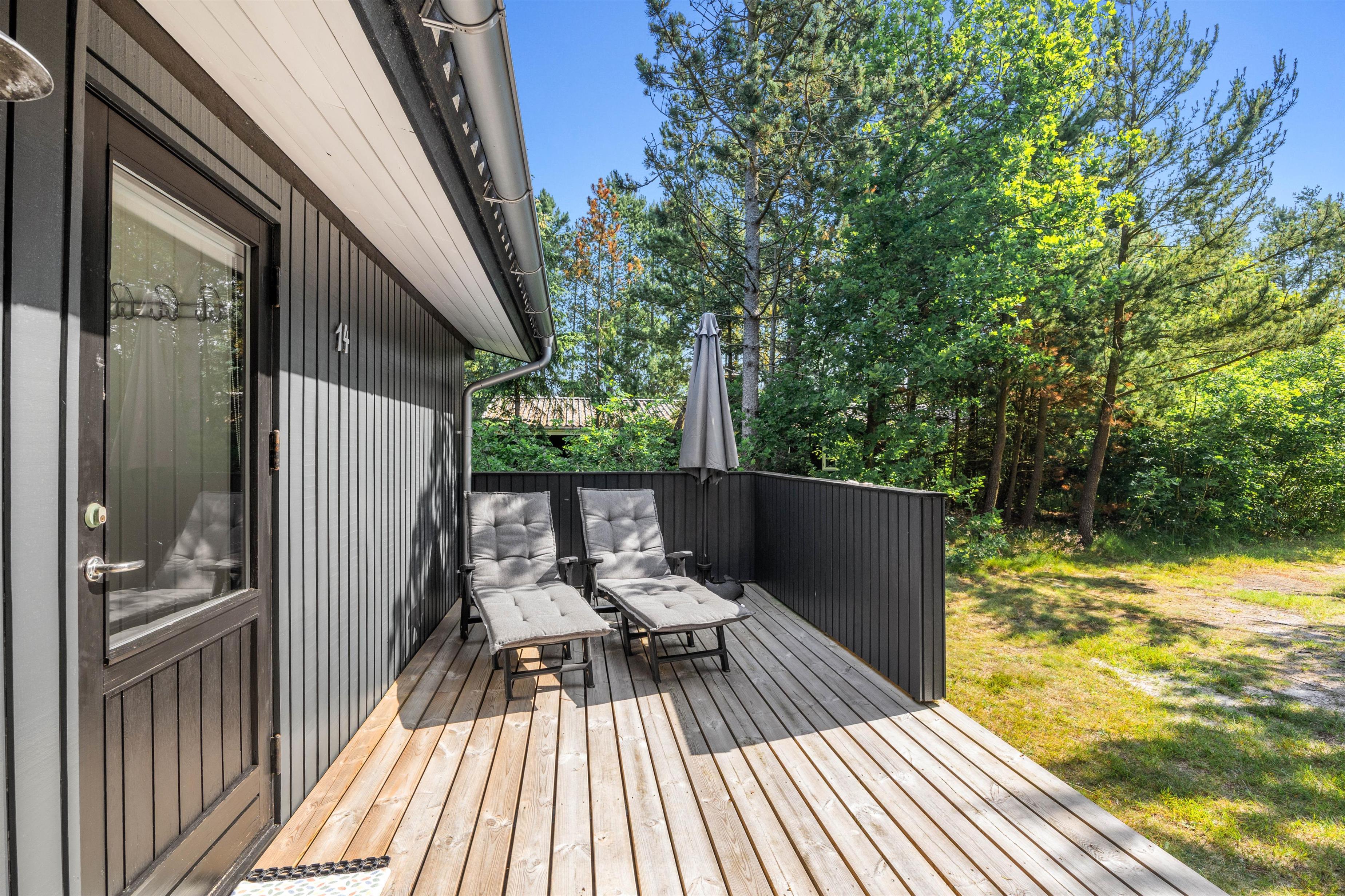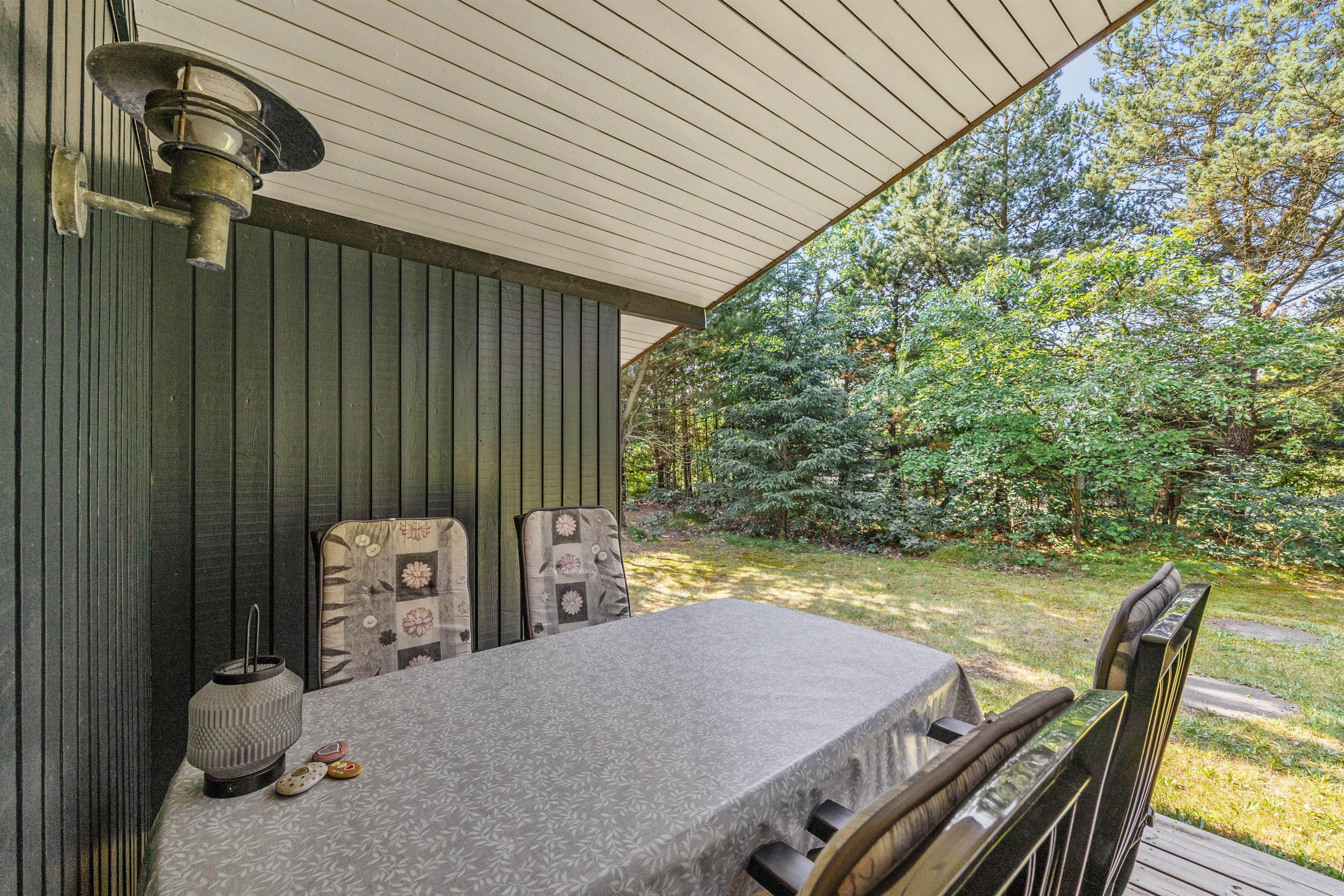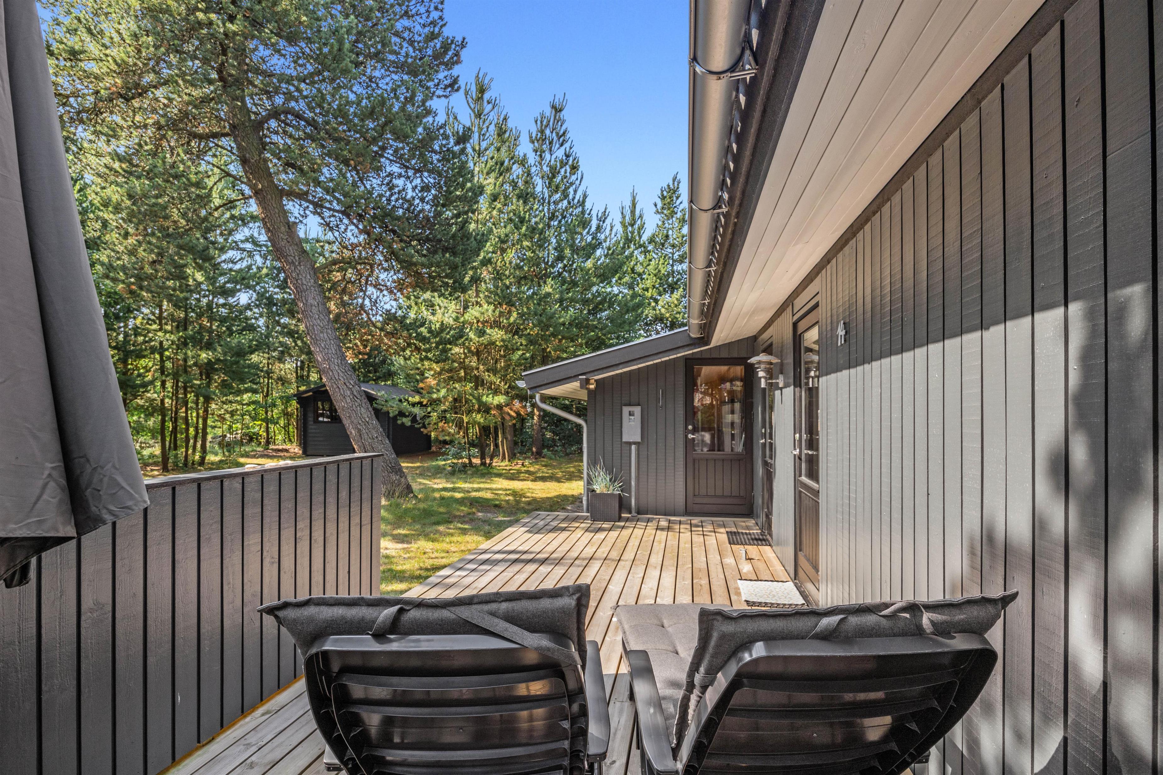 Ved dette hus i Houstrup har I 2 dejlige terrasser, den større er overdækket og har funktion som en åben udestue, med masser af dejligt lysindfald og samtidigt læ. Her kan du virkeligt forlænge sæsonen – og allerede i det tidlige forår sidde udenfor og nyde duften af lyng, hav og nåletræer.