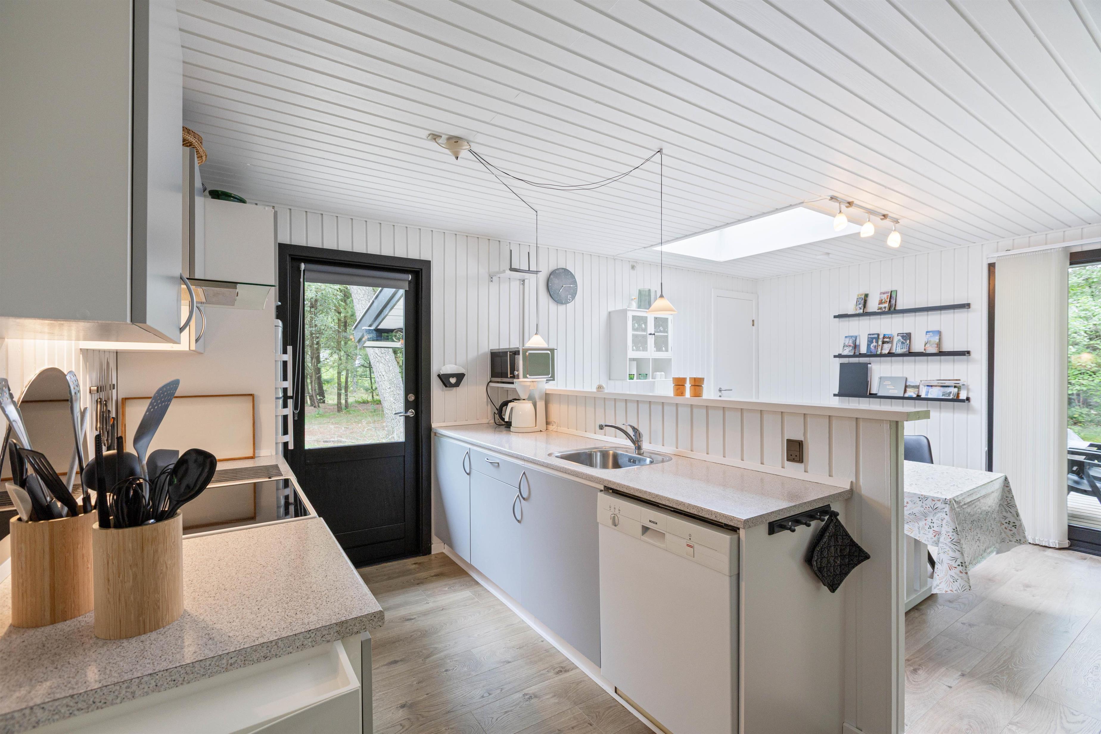 Dette hus er indrettet sådan, at der rigtigt kan hygges, med super bekvemme møbler og åbent køkken og moderne faciliteter. I det store lyse badeværelse med gulvvarme kan der efter en dejlig dag, med lange gåture i den smukke omkringliggende natur, tændes op i spaen for ægte afslapning. Håndklæderne er hurtigt friske og klare igen, da huset råder over både vaskemaskine og tørretumbler.