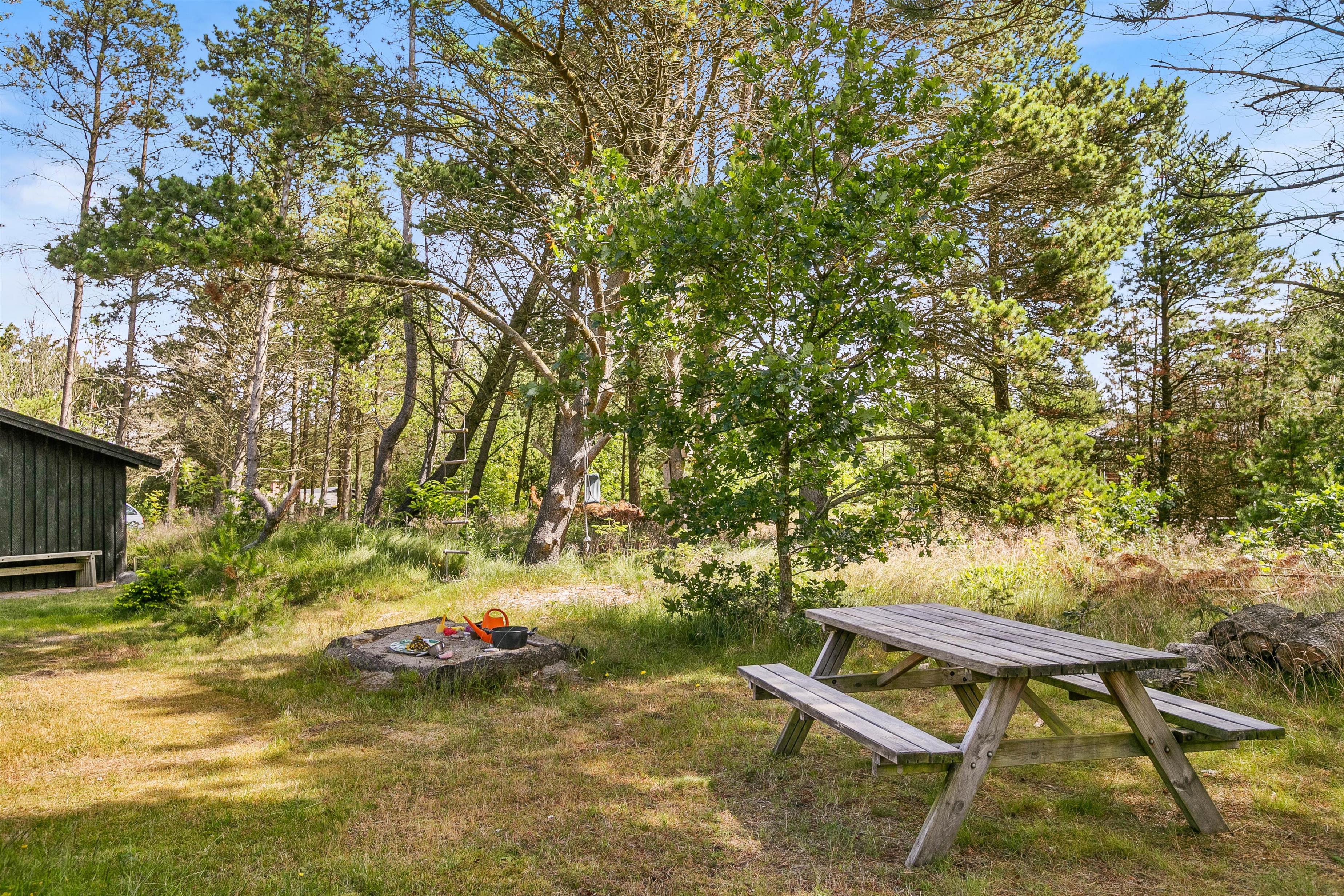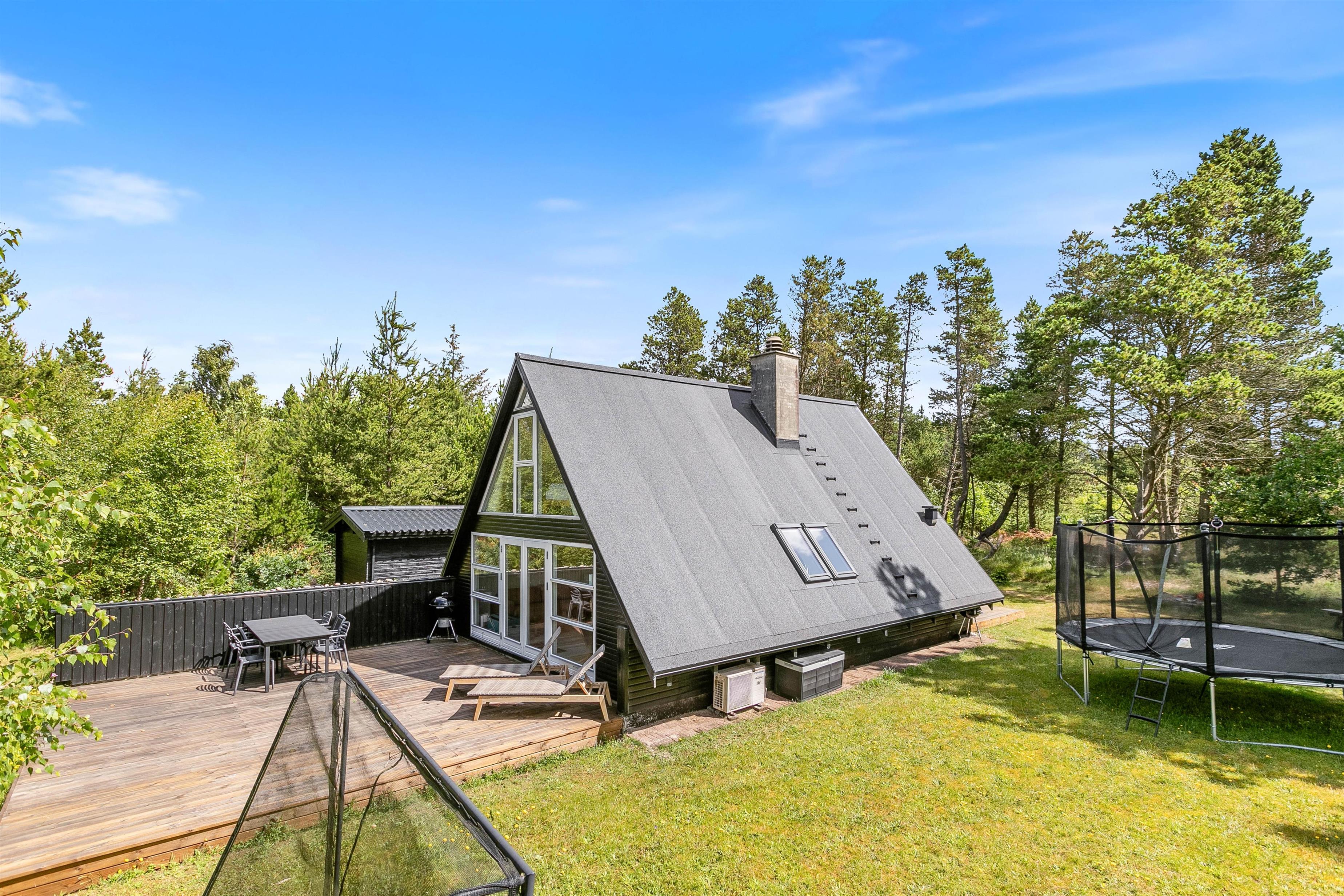 På en naturgrund i Houstrup står dette hyggelige sommerhus klar til jeres næste ferie. Her på Jens Thomsensvej 13 kan I samle op til 7 personer til en dejlig ferie i dette hyggelige sommerhus, der er indrettet i 2 plan. Derudover venter jer et hyggeligt anneks med sovepladser. Sommerhuset byder desuden på flere terrasser og aktiviteter for børnene i haven.
