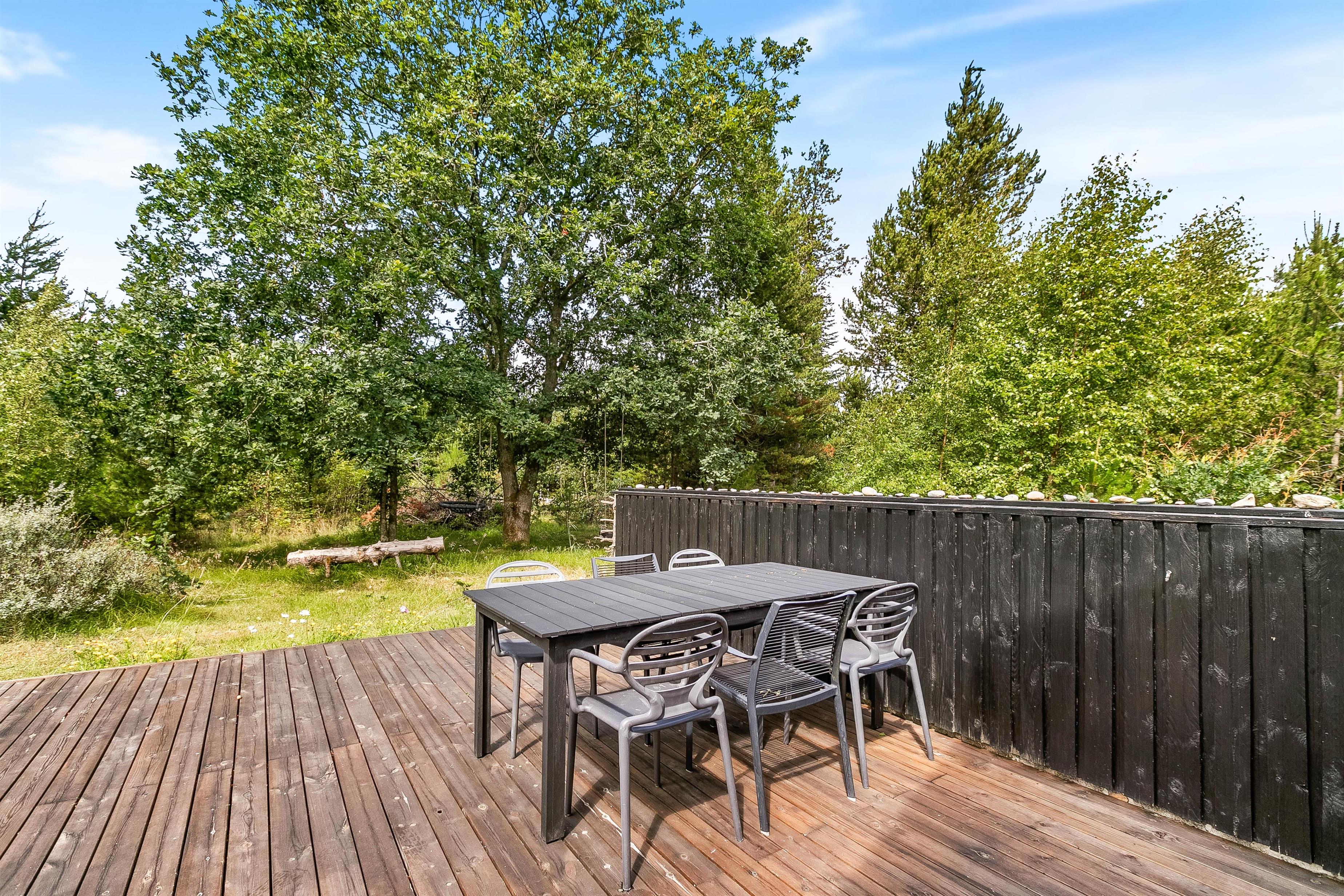 Sommerhuset byder på flere terrasser, som I kan tilbringe feriens solrige dage på. Den ene terrasse vender mod nordvest, og den anden terrasse vender mod øst. På terrassen kan I finde jer en god plads i solen, hvor I kan sætte jer til rette i havemøblerne og liggestolene.